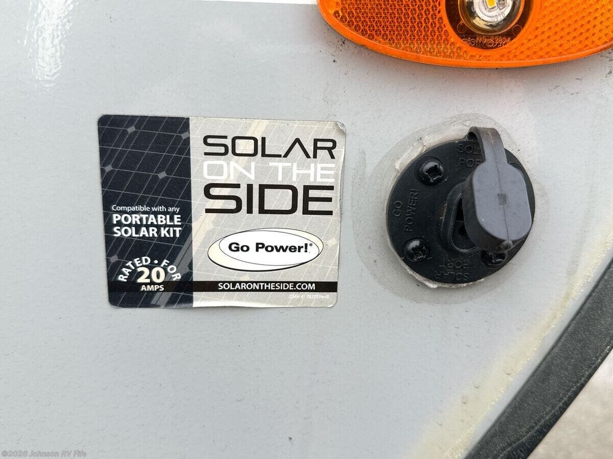 Features Include: Entry Steps, Tinted Windows, Pleated Shades, Lock Box, Dinette Booth, Pantry, Seamless Countertops, Stainless Steel Sink, High Rise Faucet, Refrigerator, Cooktop Glass Cover, Range Hood Light, Queen Bed 60x80, Murphy Bed 60x80, Overbed Storage, Reading Lights, Nightstands, Bunk Ladder, Vanity Sink, Linen Storage, Shower, Toilet Mechanicals, Solar Panel, 1000w Inverter, 15K AC, Aluminum Wheels, All Terrain Tires, Enclosed Underbelly, Cold Weather Package, Seamless PVC Roofing, Roof Ladder, Roof-Rack System, Pass Through Storage