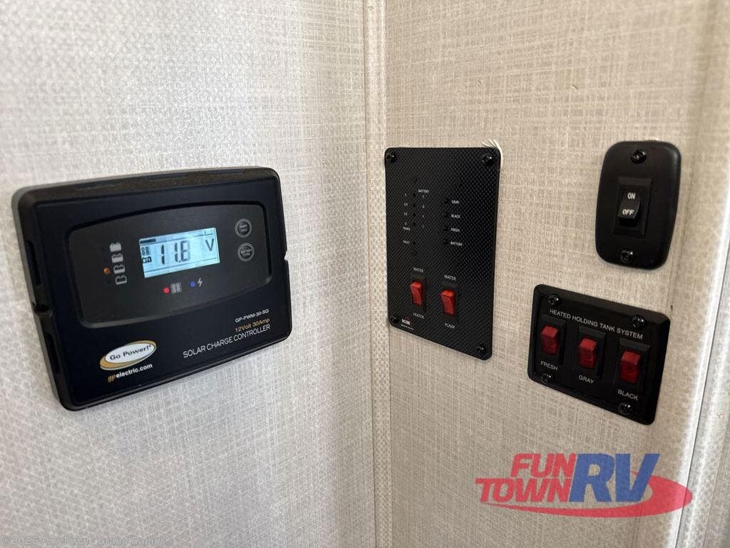 You'll be all set for your next adventure with this No Boundaries toy hauler! Not only do you have plenty of space to store your four-wheelers and dirt bikes in the 10' 7" garage, but you also have space to sleep on a queen-size bed, space to clean up with the full bathroom, space to create meals with the kitchen amenities, and space to relax with the flip-up sofa. If you want more space to spread out while you relax, just head outside to your camp chairs and pull out the 16' awning. There is also storage space on this trailer with the pantry, refrigerator, overhead cabinets, and exterior pass-through storage. Add the optional Un-Plugged package to take your camping experience to a whole new level. Some features included in this package are 600 watts of solar, premium Lithium-ion batteries, a 3,000 watt inverter charger, a high-efficiency A/C, and more.