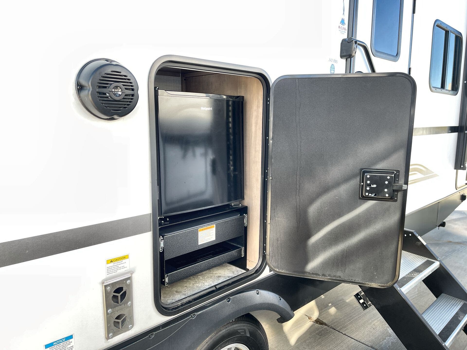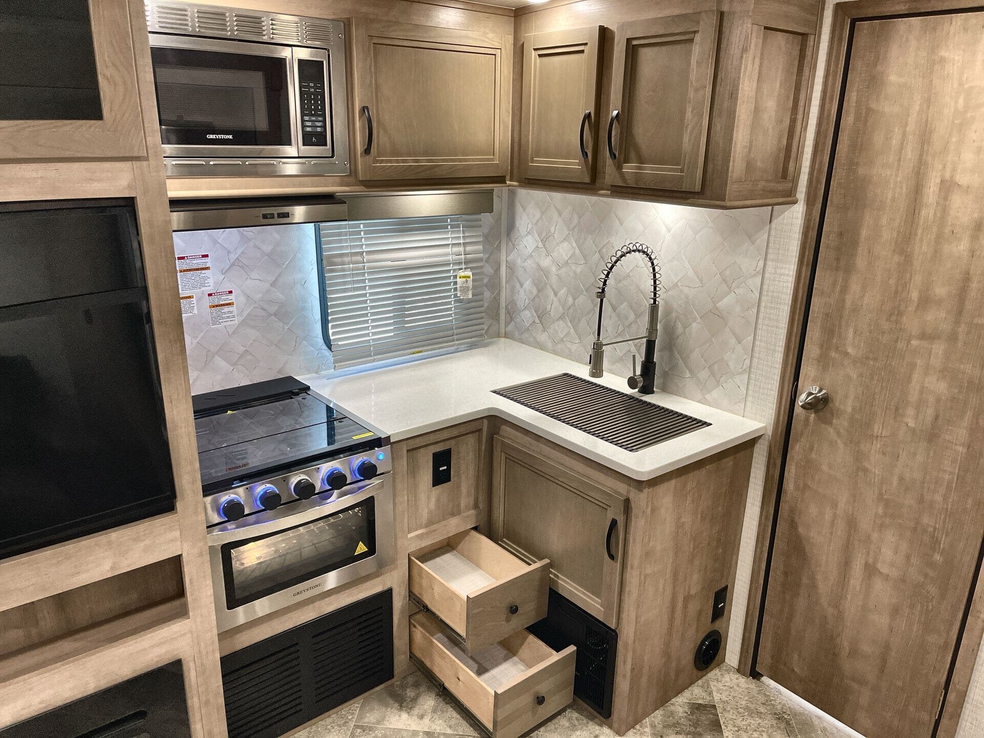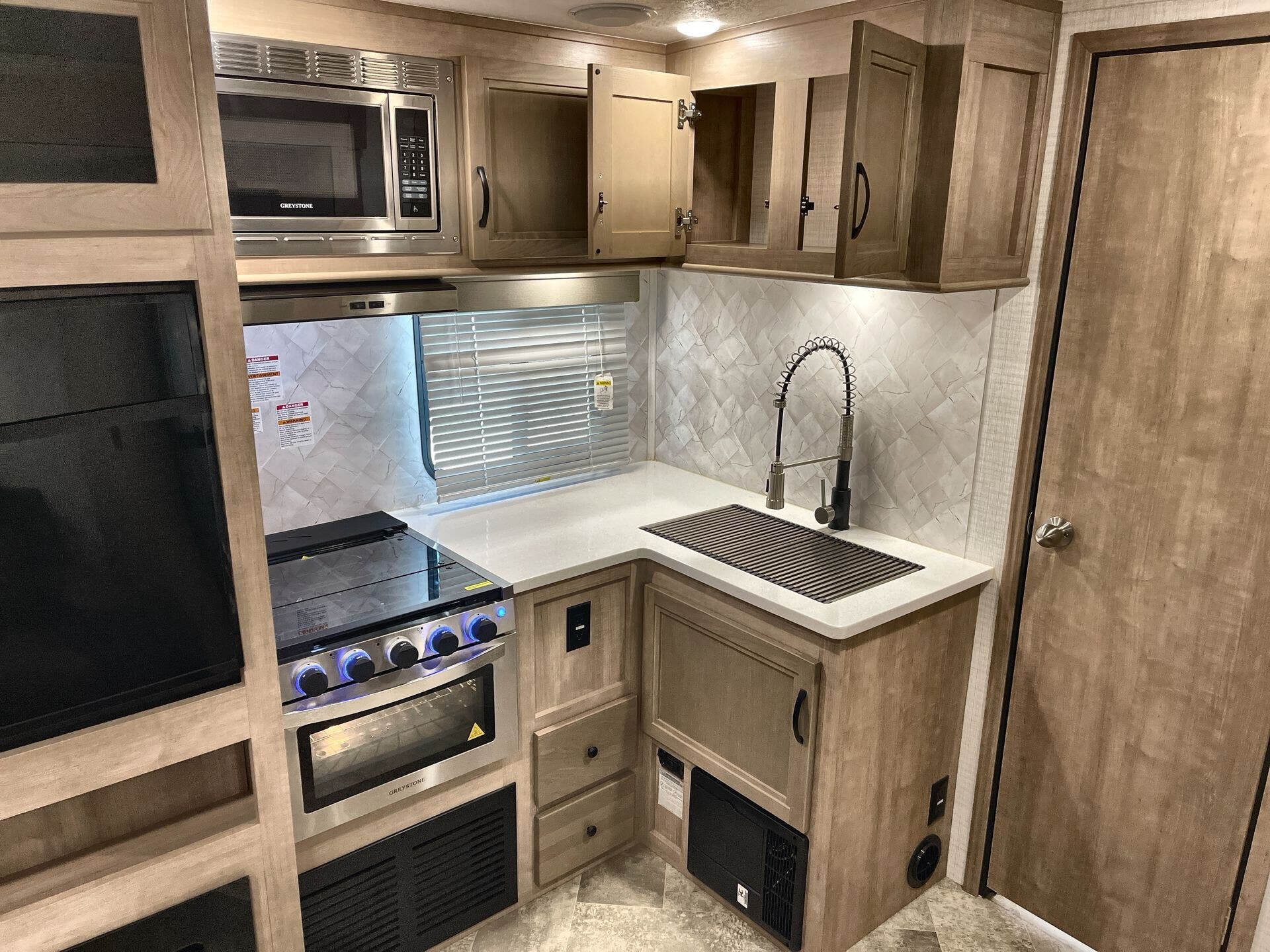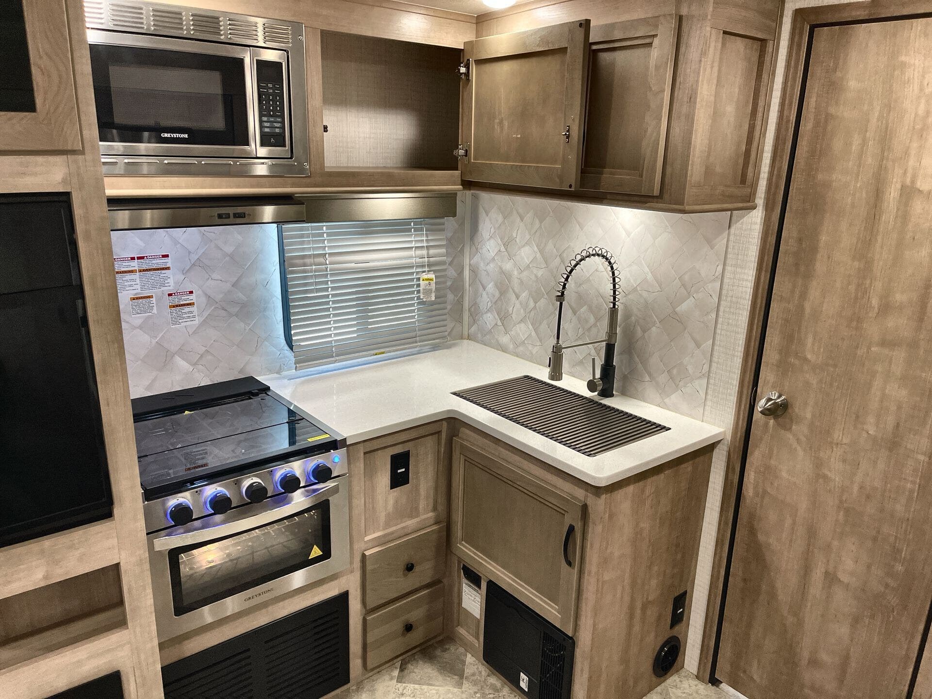 Ideal for families and travelers seeking a reliable, family-friendly travel trailer, this Forest River model blends practical cooking and cleaning features with a comfortable, well-laid-out living space. The inclusion of a kitchen island, versatile slide-out, and a dedicated rear bath enhances privacy and convenience, while the front bedroom ensures a quiet retreat after a day on the road. With ample storage, essential safety detectors, and a TV for entertainment, the Palomino 242RBS delivers a balanced, enjoyable camping experience.