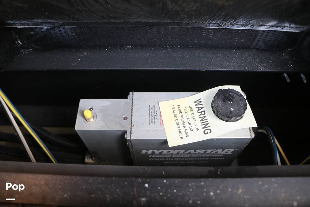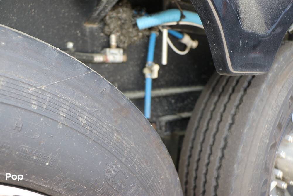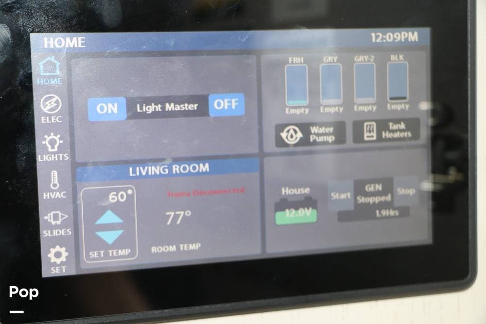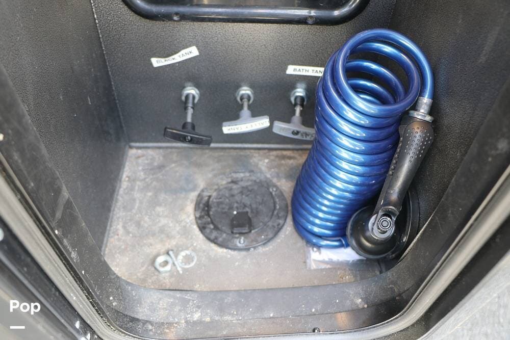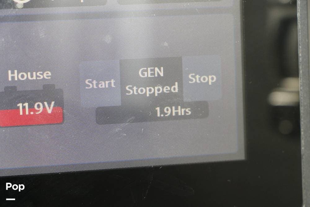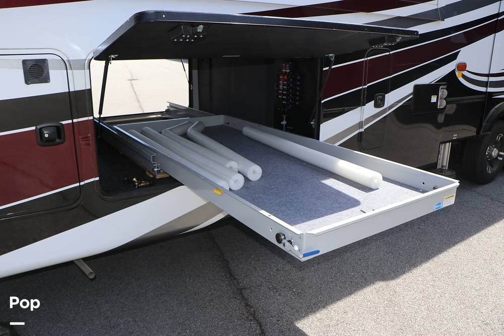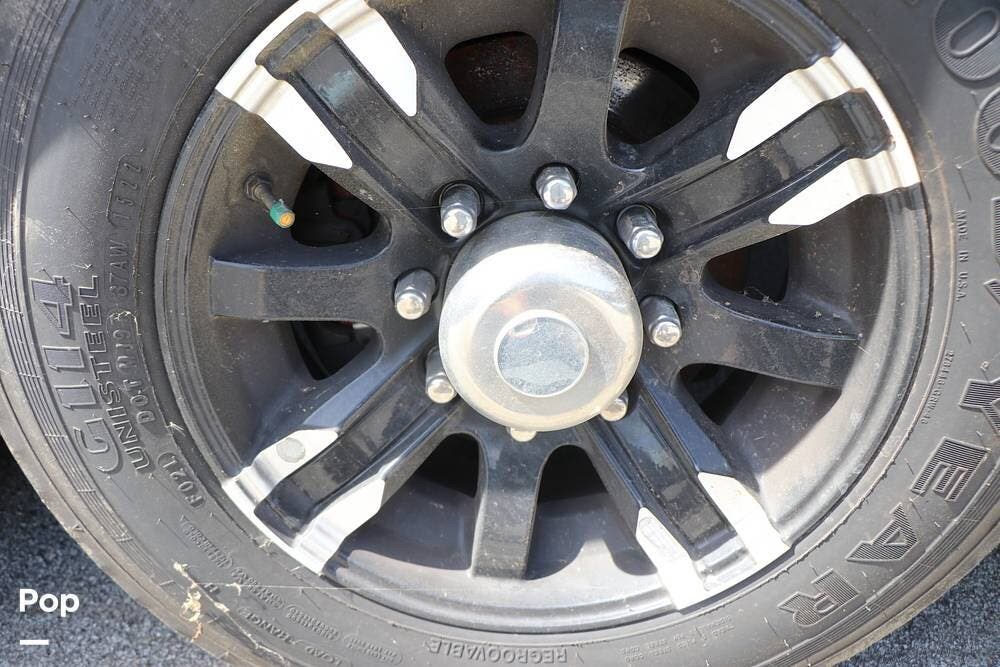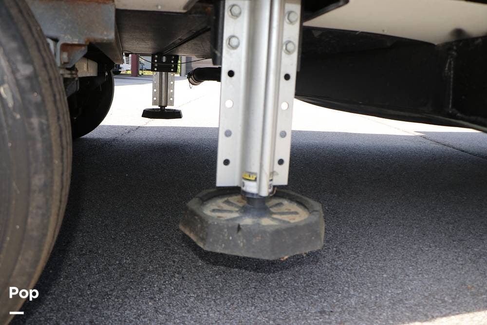 Outside, the Full-Body Paint is gorgeous, and the unit is equipped with a 5,500 Onan LP generator that is like new and fires right up using the propane system. There is a large, full-width storage bay with a slide-out storage tray. The power cord features a power take-up reel, in addition to a six-point auto leveling system, making setup and breakdown quick and easy. All systems are clearly marked and easily accessible throughout the unit.