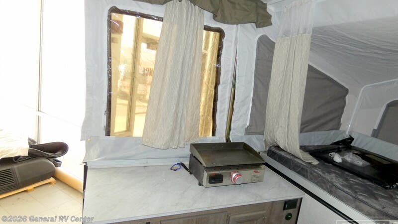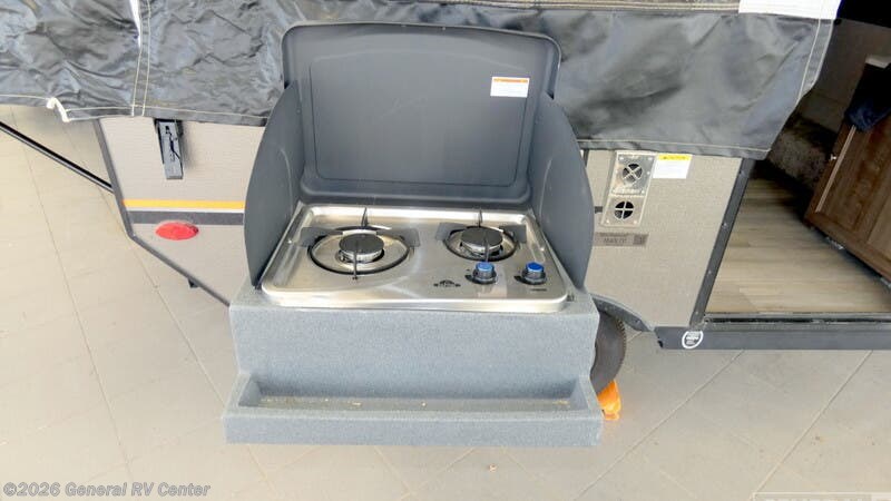 **Forest River Rockwood LTD Series folding pop-up camper 1640LTD highlights:** - Carry-Out Range - 7' Awning - Two Tent Beds - Booth Dinette You are going to love getting together with the family of four at the campsite with this folding pop-up camper! You can use the two tent beds for sleeping at night, and the two-burner free-standing range will allow you to make a fresh batch of pancakes in the morning. There is even a 1.7 cu. ft. 12V refrigerator for your perishables. Once you fold the booth dinette back into a dining area after someone sleeps here, you can sit down and enjoy your breakfast, or you can head outside to the campsite picnic table or sit underneath the 7' awning while you enjoy the sunrise. With any Forest River Rockwood Limited (LTD) Series you will enjoy an entry-level tent camper for all your outdoor adventures. You'll love the gray exterior and Autumn Wood interior with wood look flooring and wood drawers. The privacy curtains will come in handy when you're at the campground and there is a one-piece screen door to let fresh air in and bugs out! The bunk end mattresses are heated for your comfort and each model includes interior LED lights, an inside/outside two burner stove, an exterior awning, and many more camping conveniences.