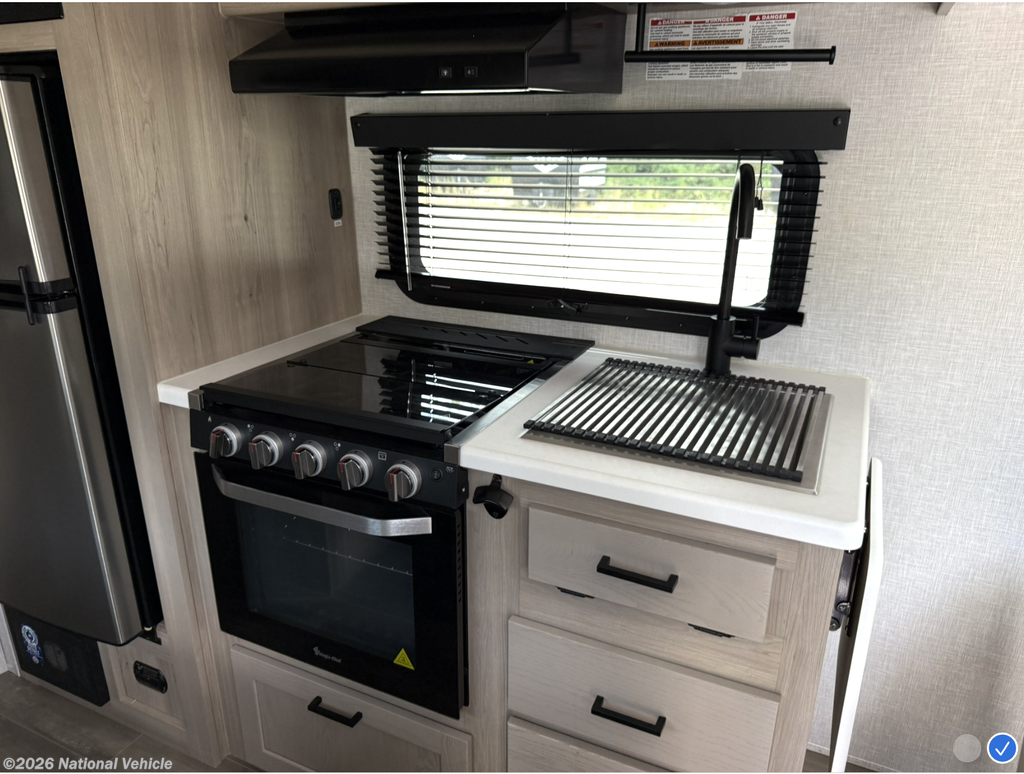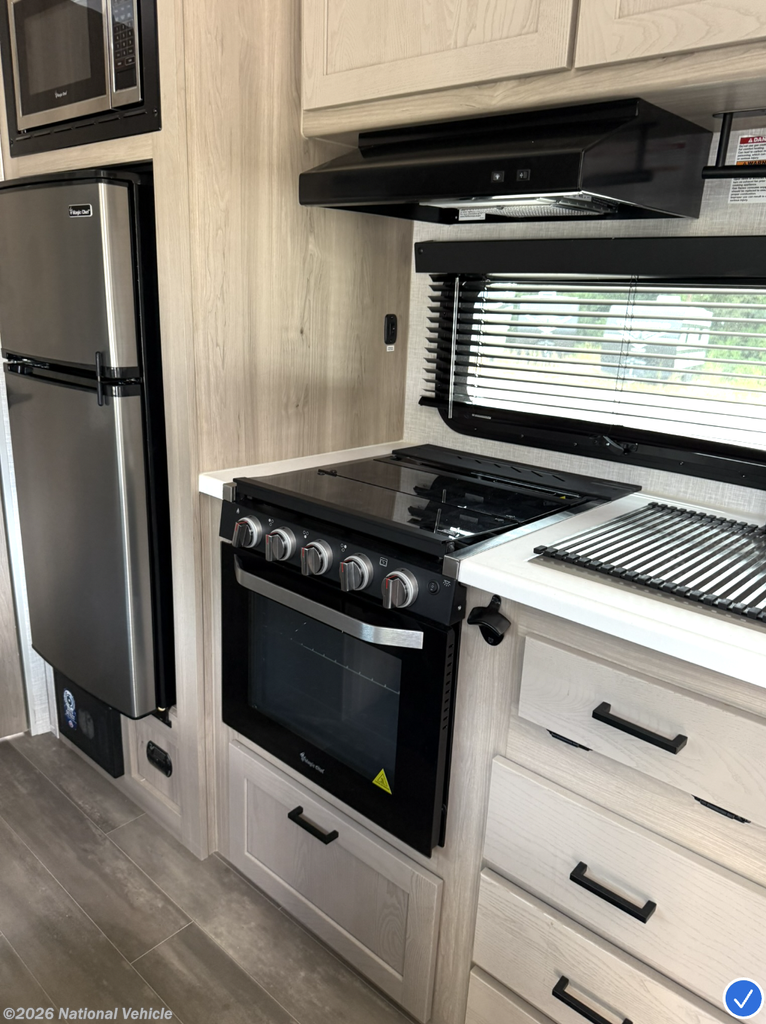 Well-Equipped Kitchen ? Includes a three-burner cooktop, microwave oven, and a 12V refrigerator, providing everything you need to prepare meals on the road.