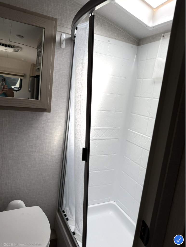 Rear Full Bath ? Features a large linen closet, Maxxair vent fan, and Showermiser Water Saver system, making it both practical and efficient.