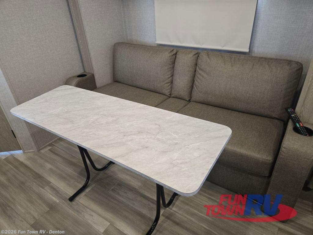 Wherever you decide to camp, you will love every minute in this cute couple's trailer. The sofa slide with a table will provide a place to relax, eat, and even sleep an extra guest if you have one, and the front RV queen bed includes a privacy curtain to enjoy your own space. There are dual bedroom wardrobes to keep your clothes tidy, and you'll find two pass-through storage compartments for your larger gear. An outside griddle with an LP hookup will allow you to make breakfast outdoors, and there is a three burner cooktop indoors if the weather isn't cooperating. Since there is a full bath on board you won't have to use the camp's facilities, and you can make it a movie night with the LED TV in the main living area!