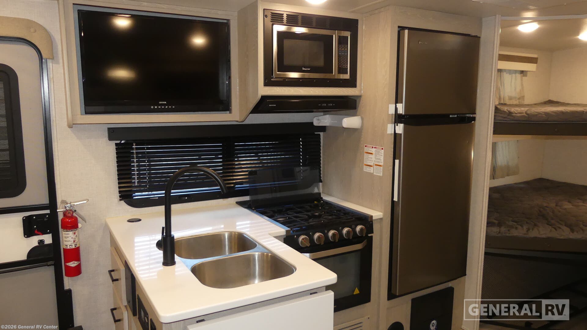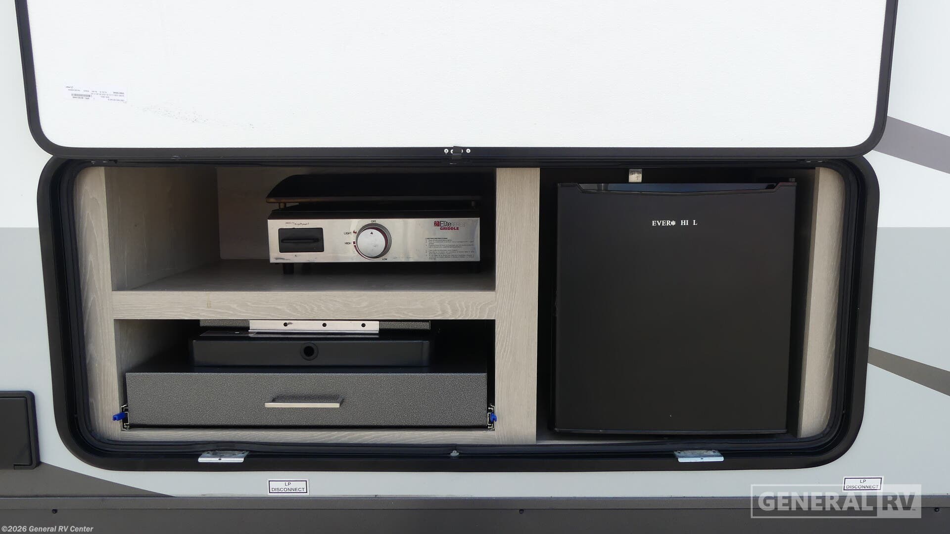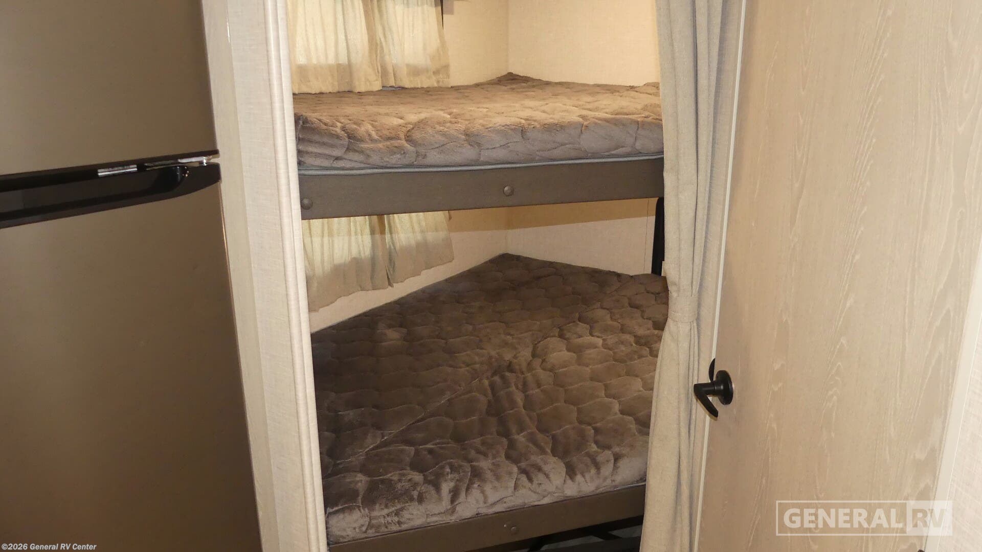 Forest River Rockwood Mini Lite 2509S Travel Trailer highlights: • Double-Size Rear Bunks • Murphy Bed with 72" Sofa • U-Shaped Dinette Slide • Exterior Kitchen • Pass-Through Storage The 2023 Rockwood Mini Lite 2509S is designed to maximize space and versatility in a compact, easy-to-tow travel trailer. Up front, the Murphy bed provides the perfect blend of comfort and function, folding away during the day to reveal a 72" sofa for relaxing or entertaining. Across from the kitchen, the large U-shaped dinette sits within the slide-out, creating an open living area and doubling as additional sleeping space when needed. In the rear, you’ll find double-size bunks that are ideal for kids or guests, positioned conveniently next to the full bathroom for quick and easy access. The kitchen is fully equipped with a refrigerator, microwave, pantry, and ample counter space, making meal prep simple whether you’re on a weekend getaway or an extended trip. Outside, the camper continues to impress with an exterior kitchen—perfect for cooking in the open air. Pass-through storage compartments provide plenty of room for your gear, while the power awning extends your living space outdoors for relaxing evenings at the campsite. Built with Rockwood’s quality construction and thoughtful design, the 2509S delivers a family-friendly layout, modern conveniences, and excellent use of space in a lightweight travel trailer package.