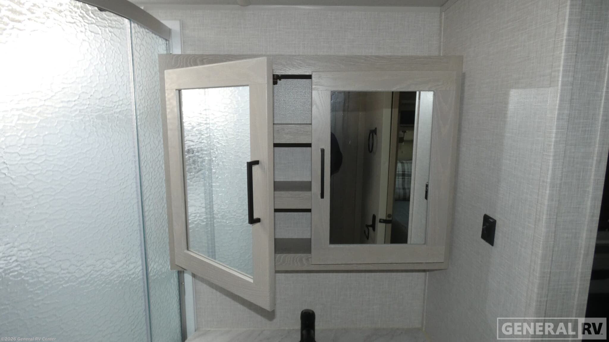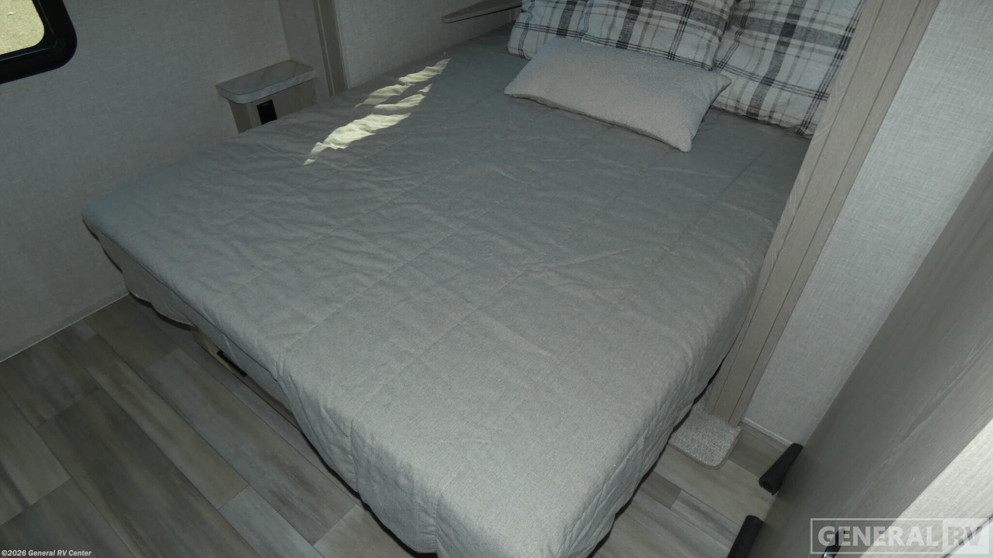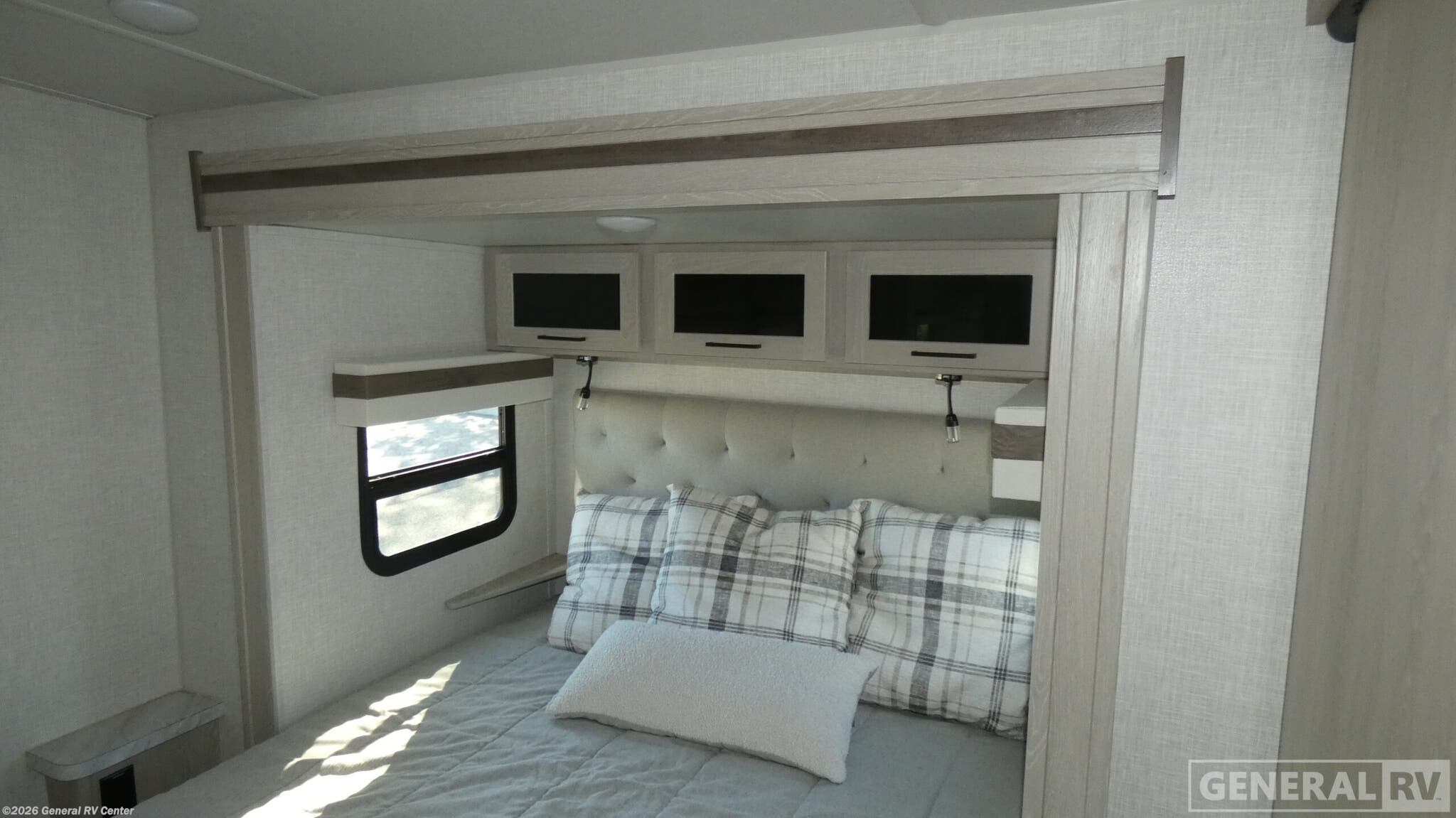 Escape the city life for weekend trips in this cozy couple's trailer. The dual entry doors will allow you to enter in through the rear private bedroom, or the front kitchen/main living area for convenience. You will enjoy relaxing on the theater seating across from the LED TV and fireplace in the evenings, or you can visit outdoors under the 19' power awning. You'll also find an exterior griddle here for quick meals and exterior storage for the fishing poles or hiking gear. This model also includes a walk-through bath with a shower skylight, a linen closet, plus a Showermiser Water Saving System. And don't worry about storage space inside since this model includes an entryway pantry/closet, a second pantry in the front kitchen, plus a large bedroom wardrobe to keep your clothes wrinkle-free! Each Rockwood Mini Lite travel trailer by Forest River is constructed with a fully laminated one-piece walkable roof, sleek frameless windows, and a six-sided full aluminum frame for strength and durability. The 12V thermostatically controlled heated tanks, plus radiant foil in the underbelly, front caps, and slide out floors will allow you to camp well into the colder months, and the 200W roof solar panel will be perfect for a little off-gridding. Each model includes solid surface kitchen countertops, solid wood cabinet doors, night roller shades, plus many more interior features. Having a Teton all in one Wi-Fi booster/LTE prep and antenna on board will allow you to get some work done if it's needed, and the power tongue jack provides hassle-free set up, so you can enjoy more time relaxing!