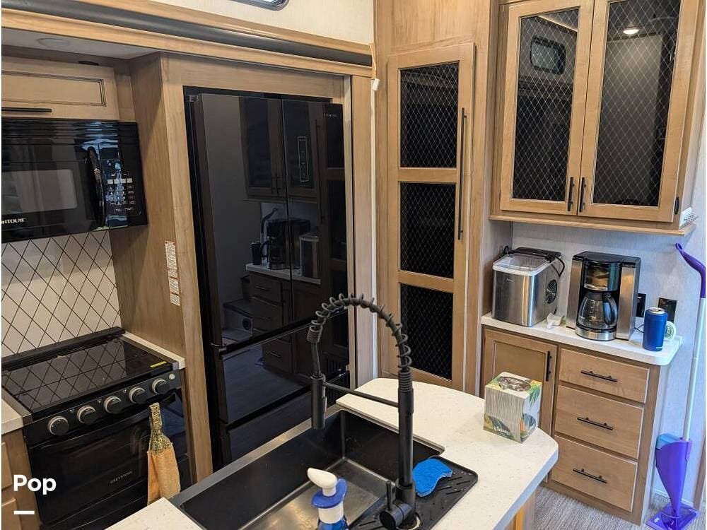 This 2023 Forest River Sabre 350BH fifth wheel blends spacious design with high-end comfort, making it a perfect fit for families or full-time travelers.
