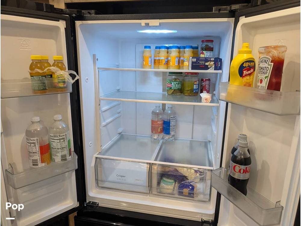In the front master bedroom, you'll find a custom-made upgraded king-size hybrid mattress, wardrobe storage, overhead cabinets, and washer/dryer prep. Dual A/C units keep the space cool year-round.