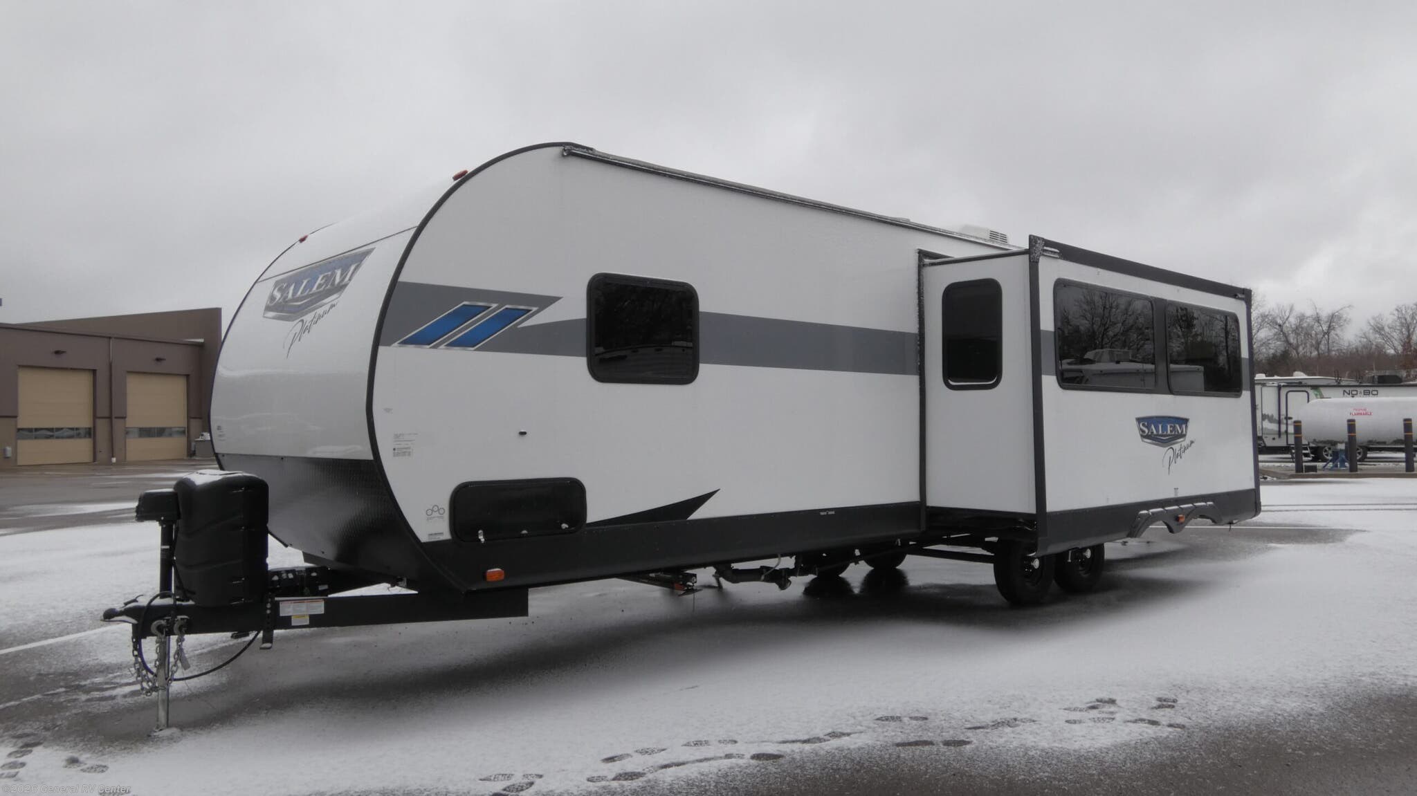 **Forest River Salem travel trailer 29VBUD highlights:** - Private Bunkhouse - Fireplace - Panoramic Windows - Exterior Camp Kitchen - Fireplace It won't be long before your family asks you to plan another trip with this Salem travel trailer! The 18' awning lets you have fun playing games outside while you stay protected from the sun or rain, and the interior will certainly provide loads of excitement with great features. You will appreciate finding an 11 cu. ft. frost free refrigerator and walk-in pantry in the kitchen, a front private bedroom with a custom king bed, and a fireplace across from the Versa Lounge which happens to be the ultimate in furniture versatility. Your guests or the kids are sure to love their own space in the private bunkhouse with ample sleeping space! Enjoy years and years of memories with any one of these Forest River Salem travel trailers! They are built with a one piece, SuperFlex roof, a powder coated I-beam frame, and an aerodynamic front radius profile for an easier tow. The triple seal slide out system prevents water from seeping inside and keeps it outside where it belongs. The Salem Best In Class Value Package includes upgraded designer furniture, seamless countertops with no T-mold, and two zone residential soundbars with FM, Bluetooth, HDMI and USB. You will also appreciate the heated and enclosed Accessi-Belly with removable underbelly panels, the power tongue jack with an LED light, the designated CPAP storage. Some new upgraded features include: kitchen backsplash, fireplaces with mirror fronts, bedroom bedding, 12V refrigerator, now with glass doors, and so much more!