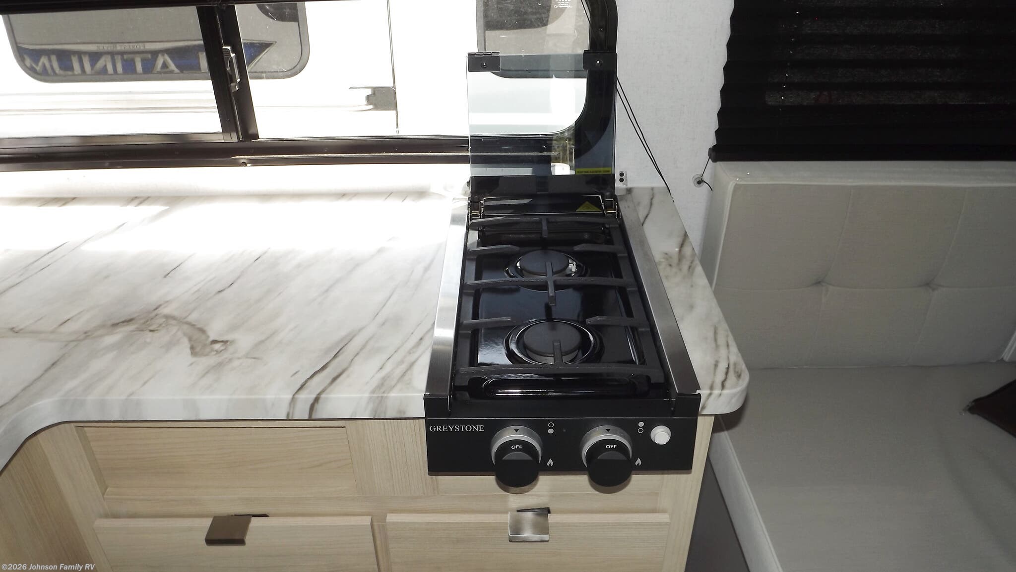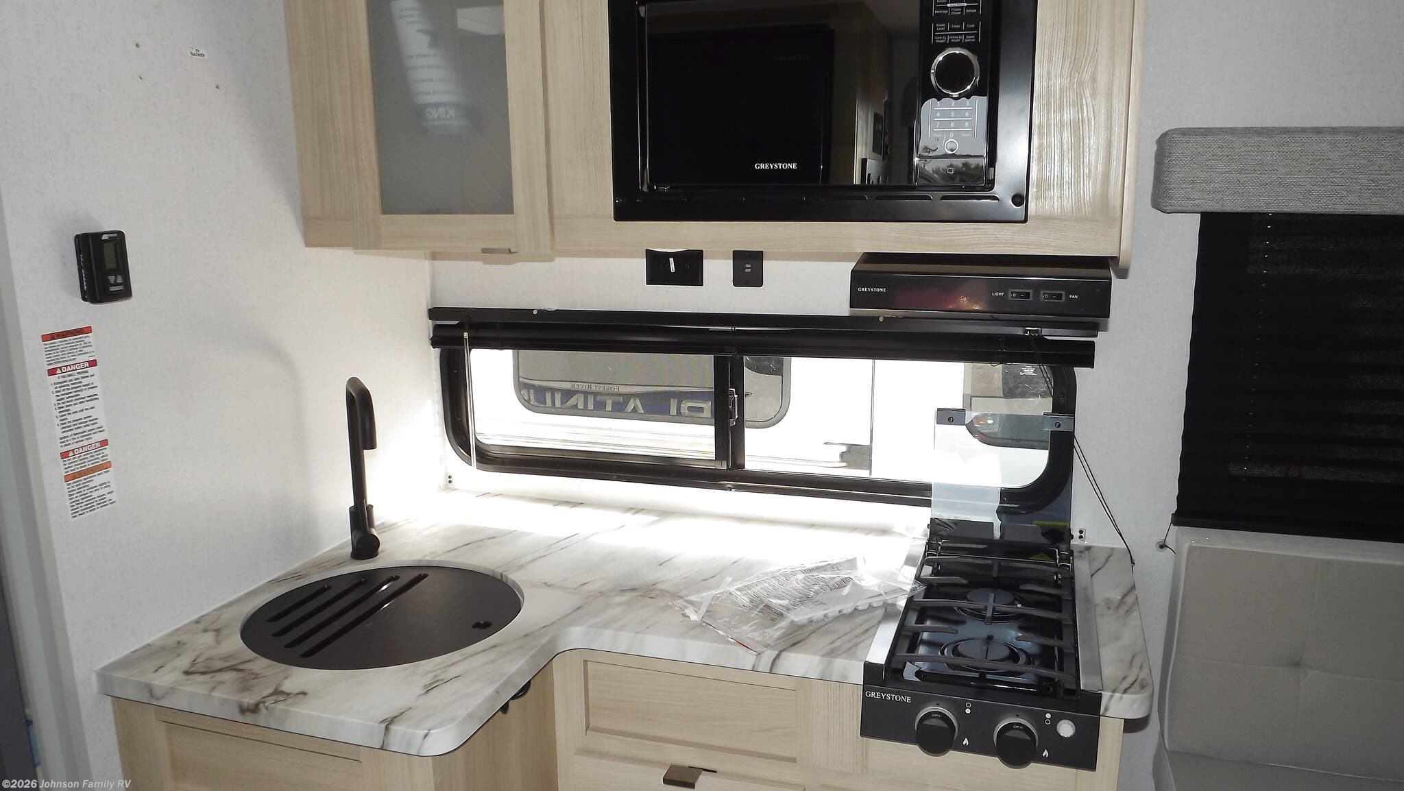 This travel trailer comfortably sleeps up to 4 people and features a remarkable fresh water capacity of 39 gallons and both black and gray water capacities of 40 gallons. Enjoy the comfort of a 13500 BTU air conditioning unit, ensuring a pleasant atmosphere no matter where your adventures take you.