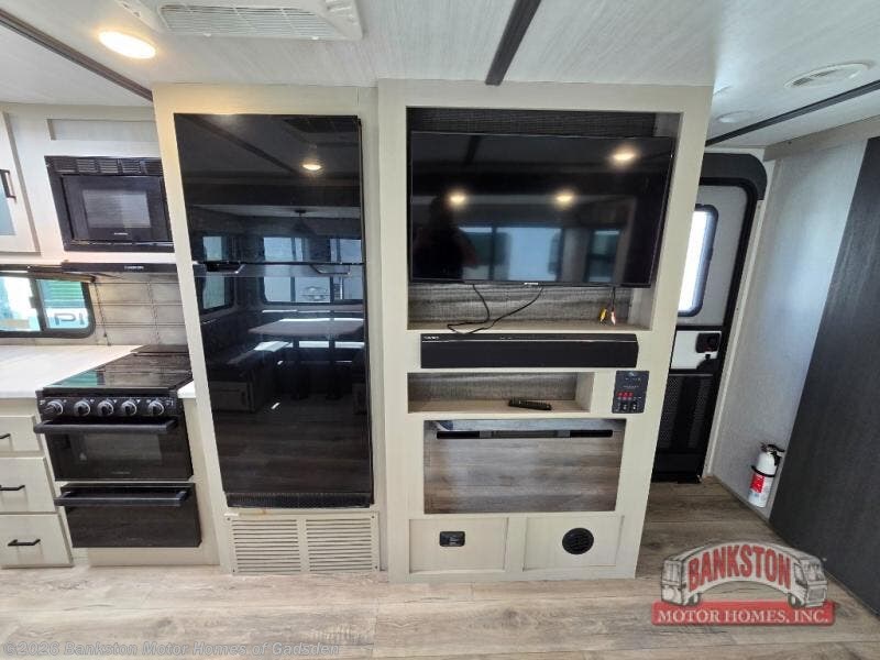 When you have this Salem Hemisphere Hyper-Lyte travel trailer, you will have everything you need for adventurous and accommodating getaways! Spend some time on the tri-fold sofa or the U-shaped dinette in front of the 40" LED TV and fireplace. If you need a little snack while you watch a movie, you can heat it up in the microwave or prepare it on the three-burner range. Grab some cold drinks from the 12V 10 cu. ft. refrigerator, and pull out the countertop extension if you need a little extra space to get your snacks ready. The rear bunkhouse is super sweet with its flip-up bunks and Versa convertible RV queen bed, and the front private bedroom will also be comfortable for you to spend your nights relaxing in.