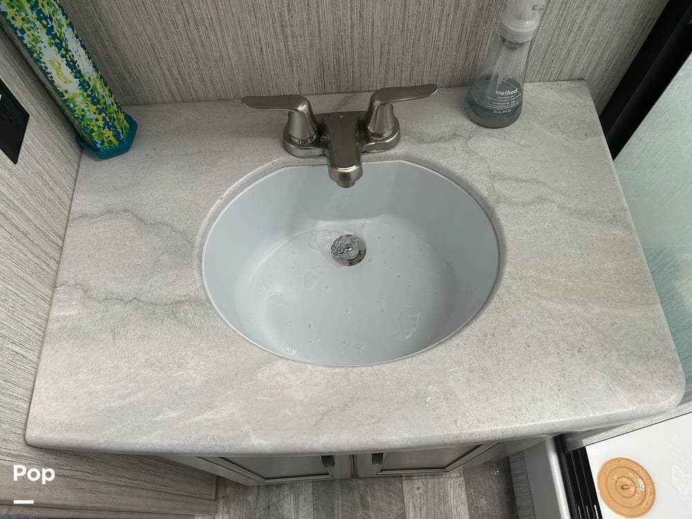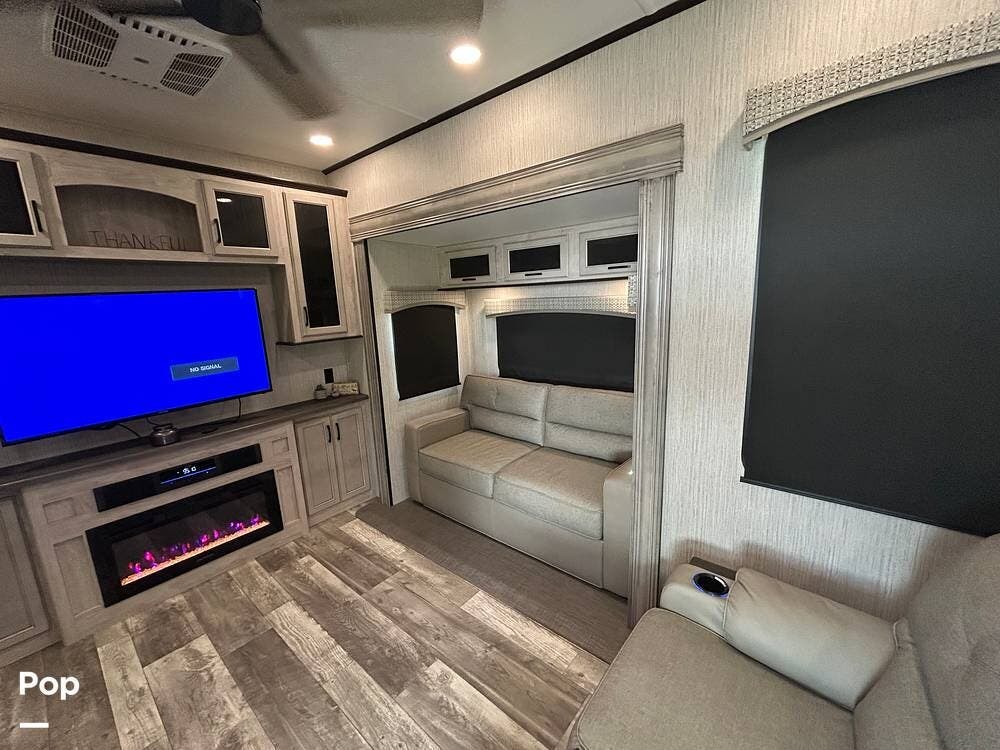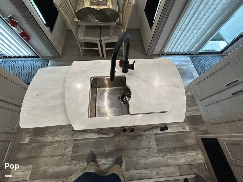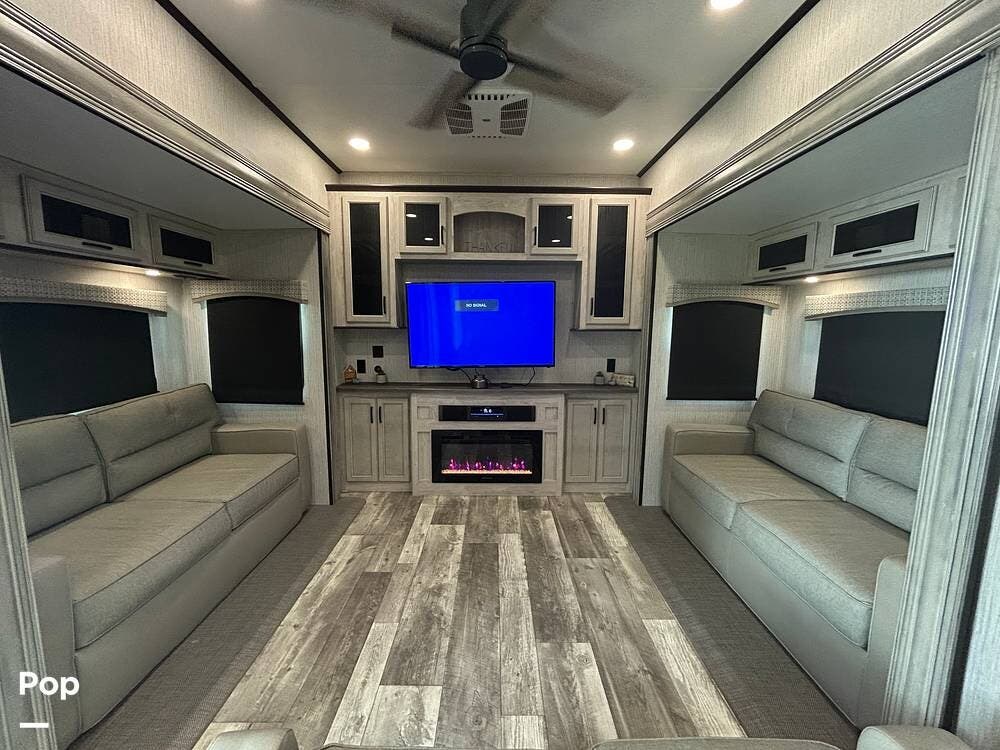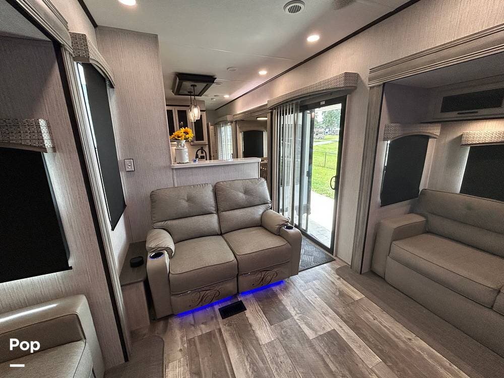 This gorgeous 2023 Sandpiper has a spacious living area.