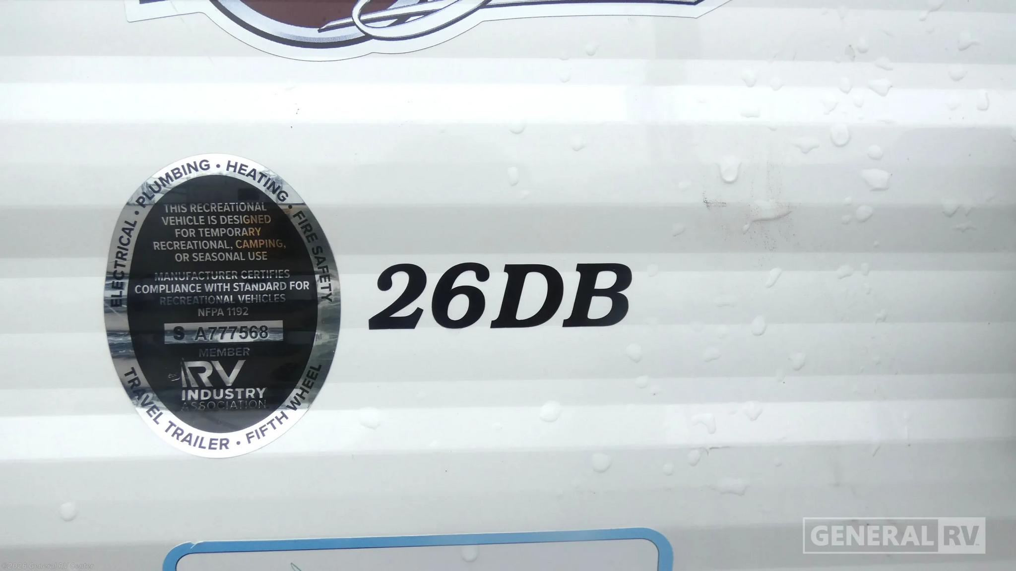 Shasta RVs Shasta travel trailer 26DB highlights: Large Slide Out Double-Size Bunks Dual Entry Doors Booth Dinette Outside Shower This trailer allows you to camp in comfort with conveniences such as dual exterior entry doors allowing you access to the main area or the rear corner bathroom. The bathroom also has an interior entry that is next to the double-size bunks which is super convenient at night for the kiddos. You will also find floor storage under the bunks. The large slide out offers extra floor space inside to move about, and includes the booth dinette and sofa for inside relaxation and dining. The galley kitchen provides full amenities including a pantry and a 10 cu. ft. refrigerator for lots of food storage. And you can sleep like a queen in the front dual entry bedroom that offers plenty of clothing storage and an overhead shelf for more items. With each Shasta travel trailer by Shasta RVs, premium construction products are used such as radius wood rafters, wall studs on 16” centers, cambered steel i-beam frame, Congoleum flooring, and seamless countertops. Also included is an aerodynamic radius front profile, a front colored rock guard to protect against road debris, a straight axle with electric brakes, molded rain gutter with extra long spouts, and a power tongue jack for easy setup. The interior offers decorative cabinet pulls, USB charging stations, an under-mount kitchen sink with sink cover, and more providing value and convenience. Rest easy when you purchase a lightweight Shasta that is built to last!