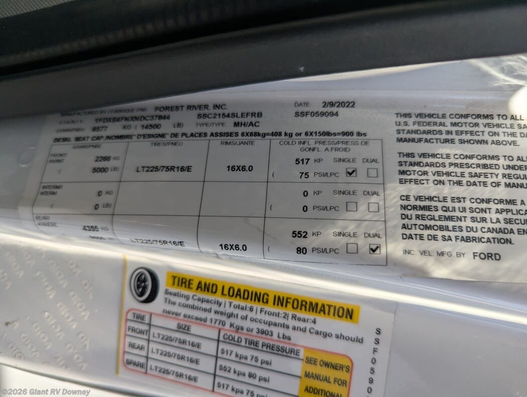 • Ford V8 Power & Travel Capability with 325 horsepower, 5,000 lb towing capacity, and a 55-gallon fuel tank — built for dependable long-distance travel