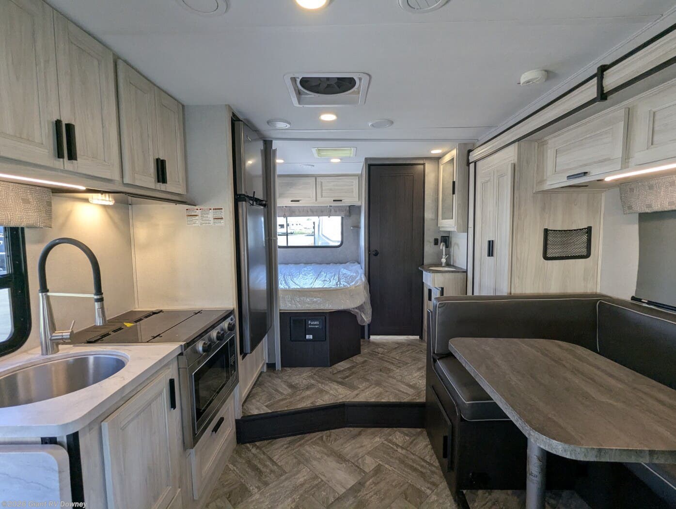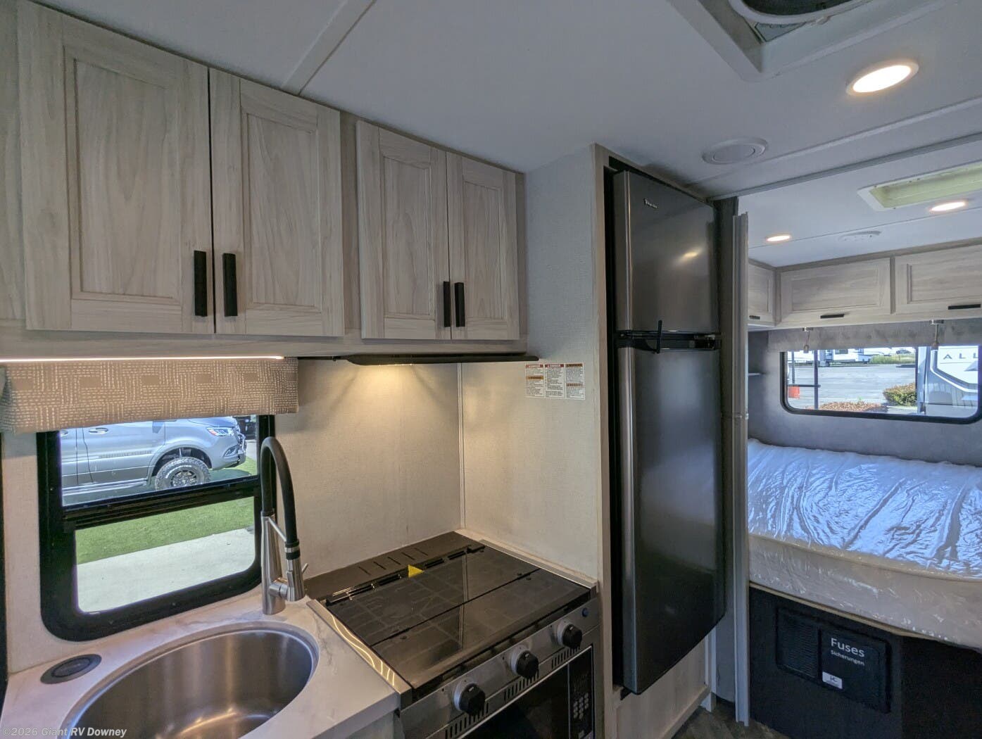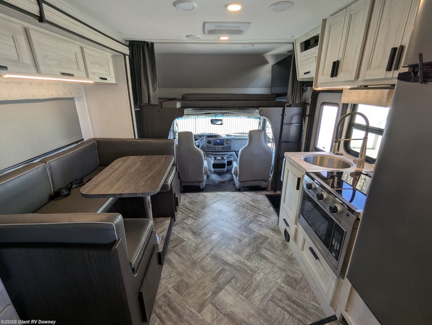 • Compact 24’ Class C with Slide-Out providing an open living space with a U-shaped dinette, cab-over bunk, and rear sleeping area — easy to drive while still spacious