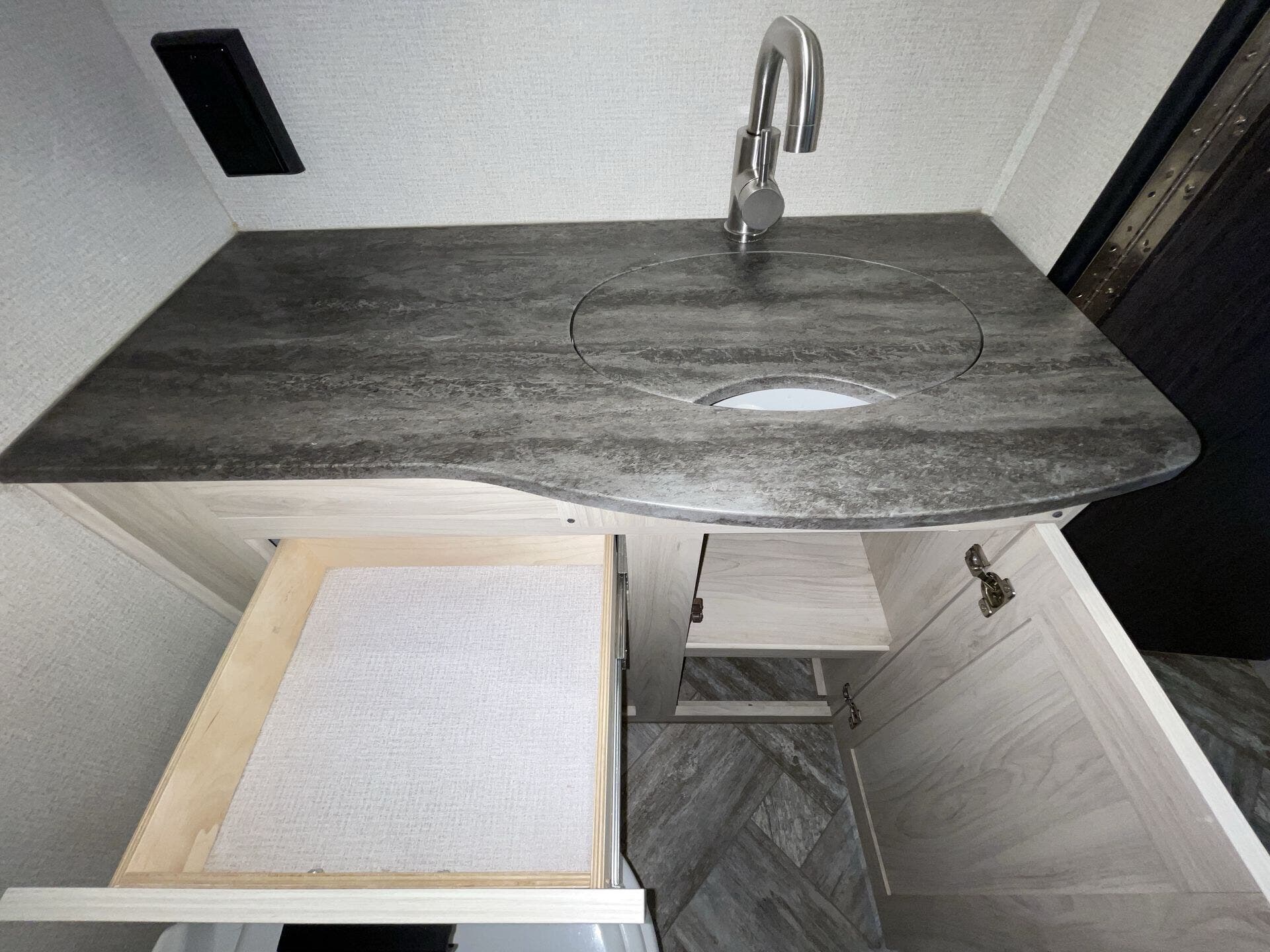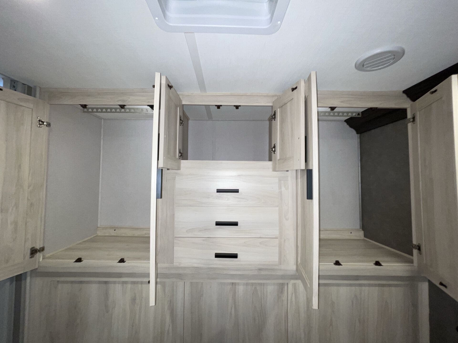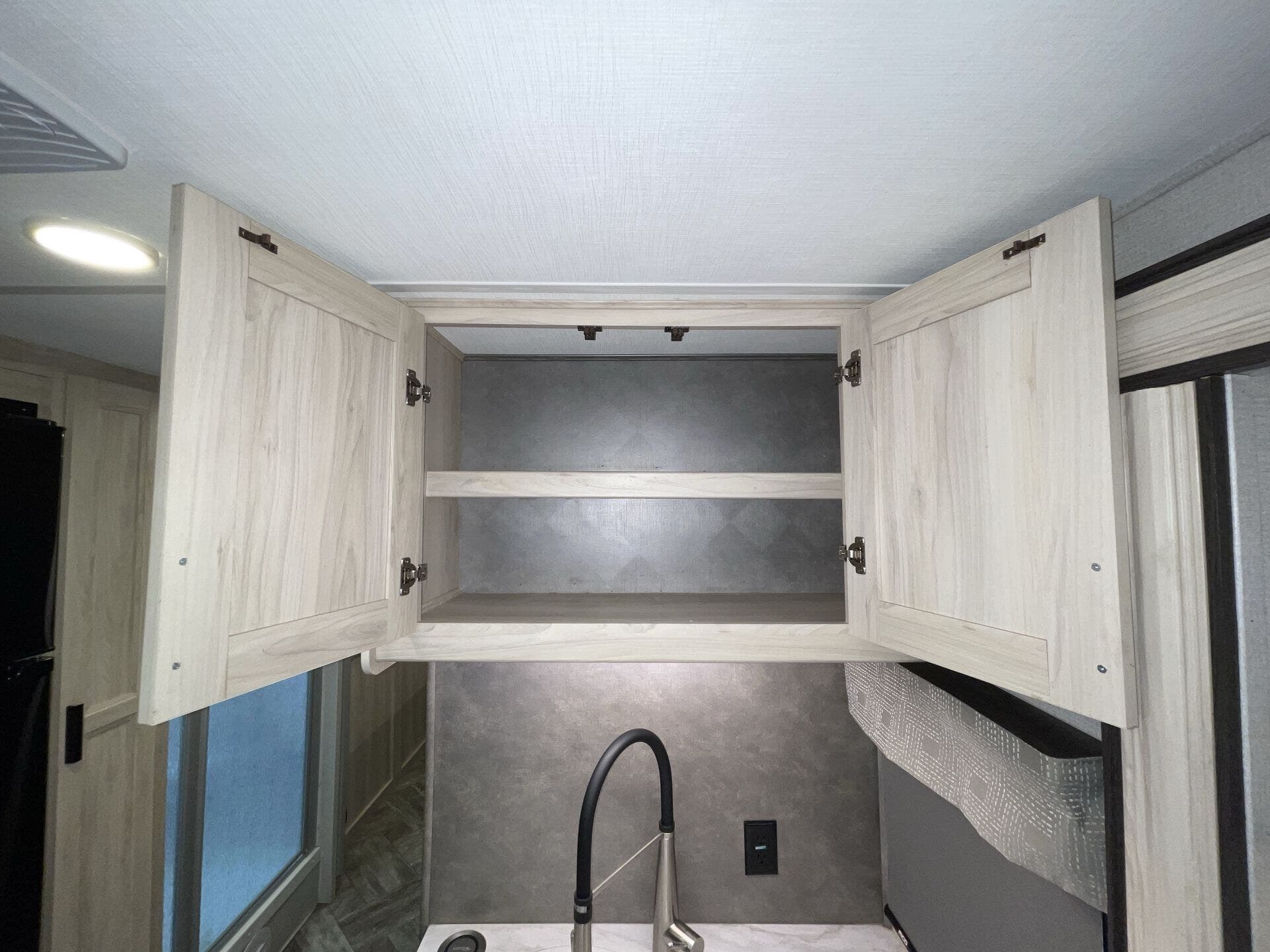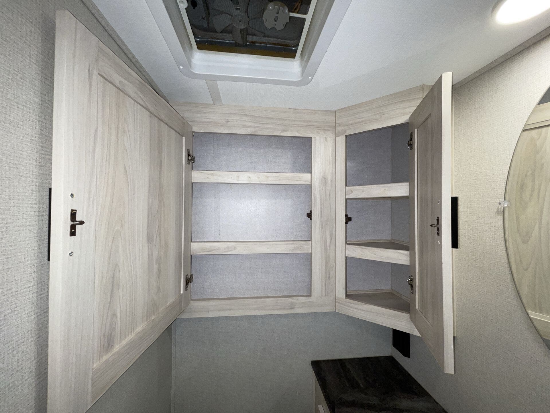 Day/Night Shades, Kitchen Sink, Medicine Cabinet, Overhead Cabinetry, Pantry, Queen Bed, Roof Vents, Shower, Sofa Bed