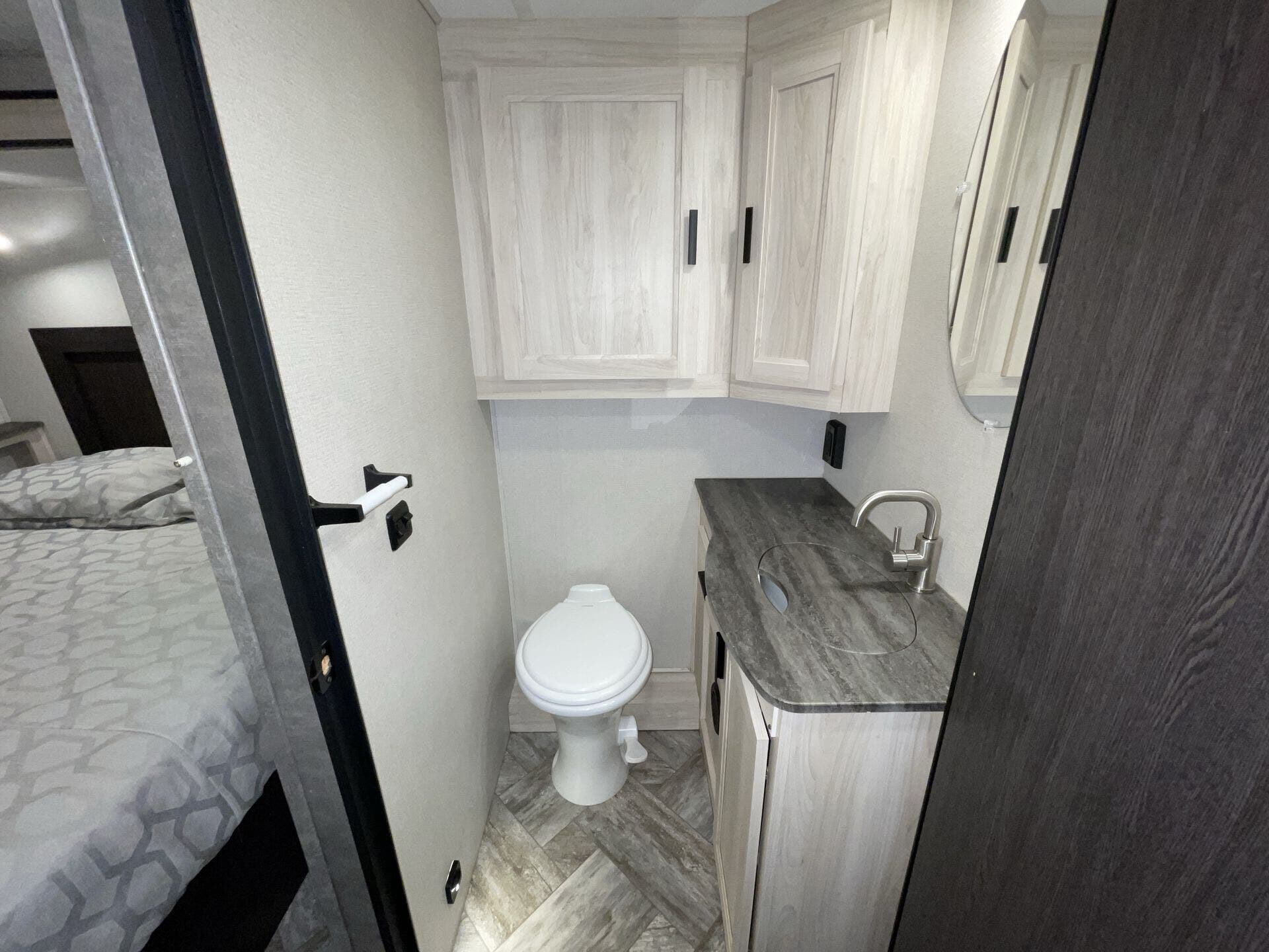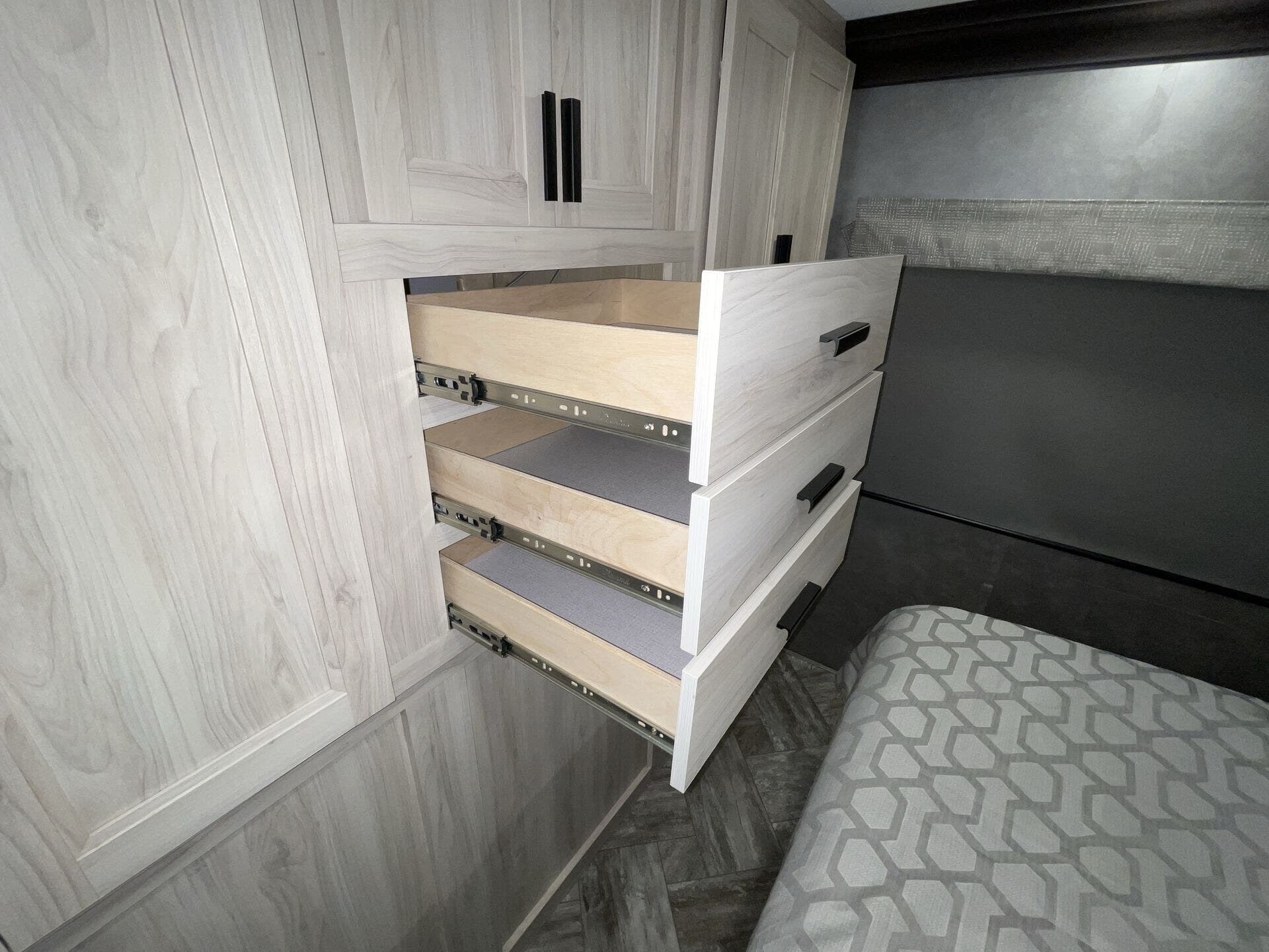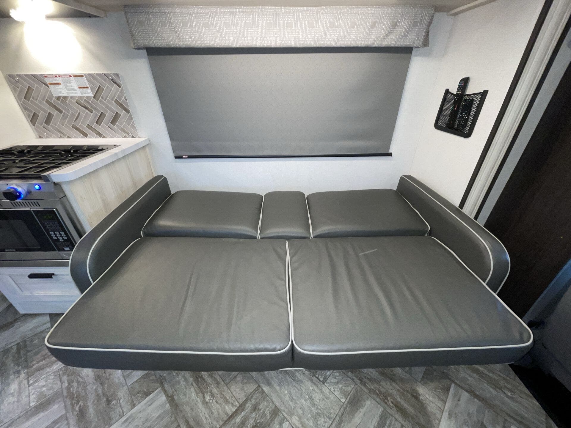 It sleeps up to 8, so you’ve got room for family, friends, or just extra space to spread out. The rear queen bed is comfortable, the cab-over bunk is great for guests, and the dinette and sofa convert easily if you need more sleeping spots.