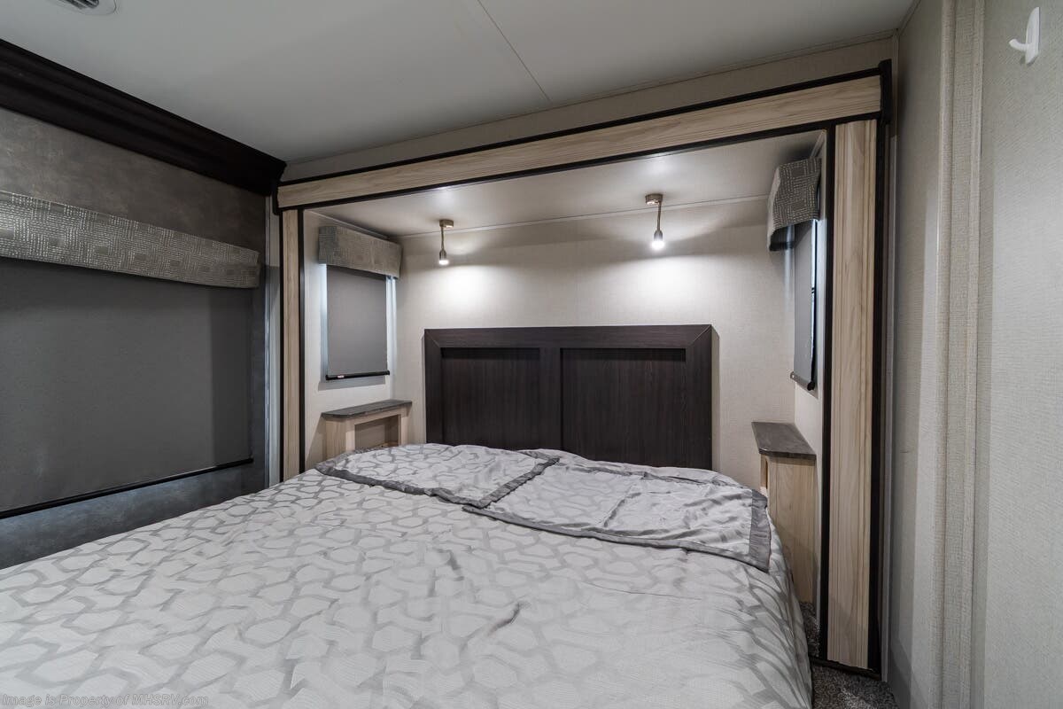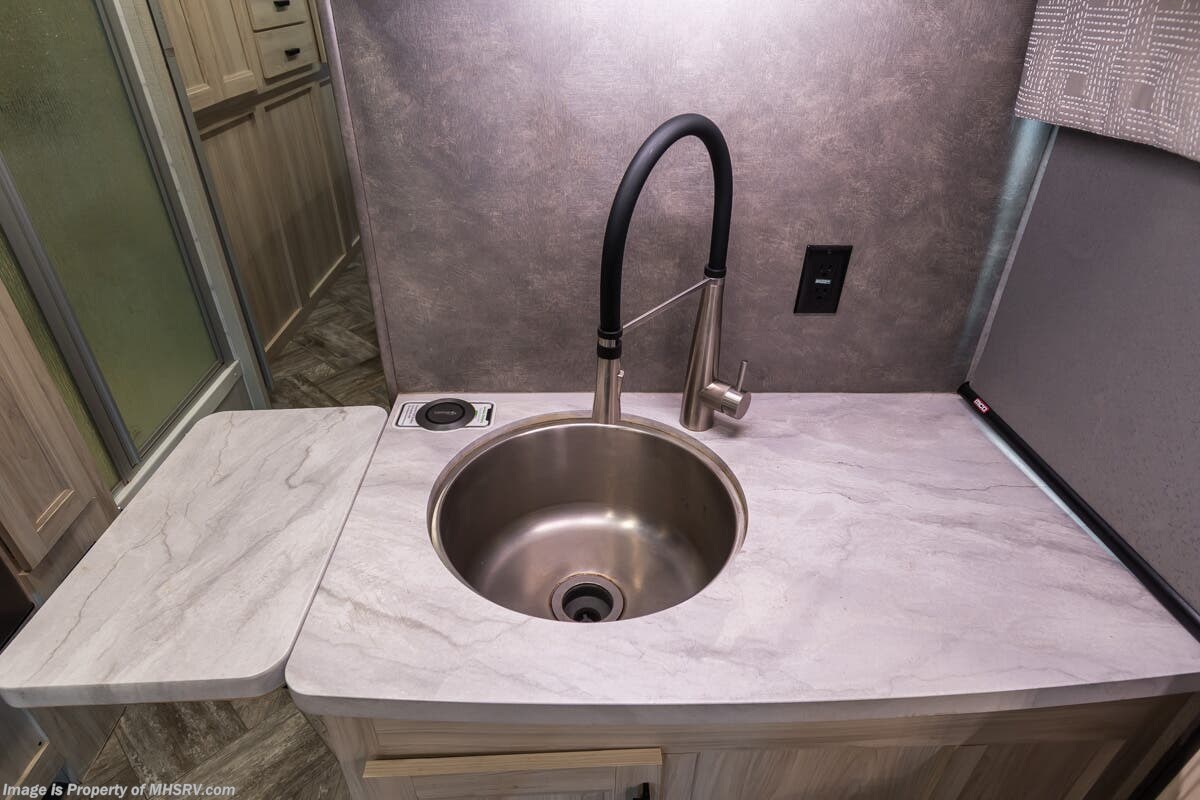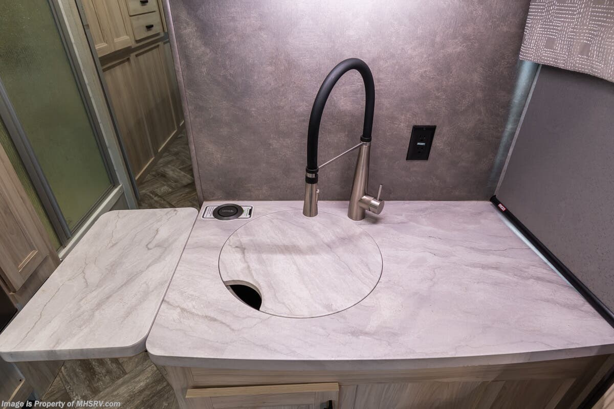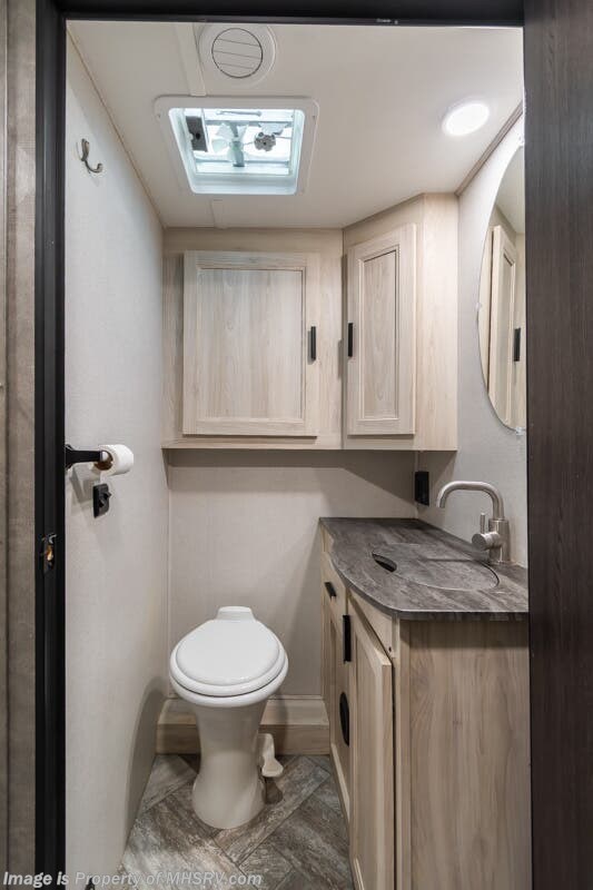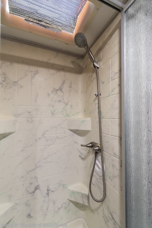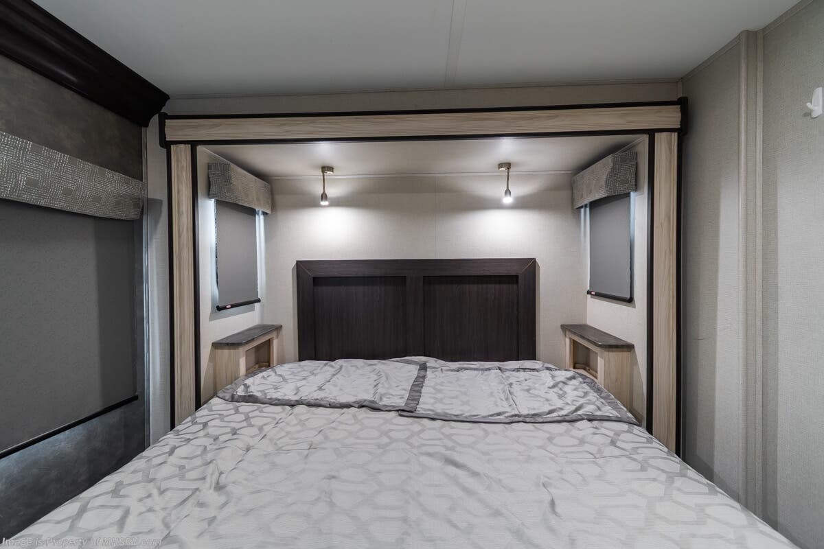 More About This RV This RV features gas generator, Ford 7.3L gas engine, ford chassis, tire monitoring system, keyless entry, power windows, power door locks, cruise control, paito awning, pass through storage, LED running lights, black tank flush, exterior kitchen, exterior TV, fiberglass roof, ladder, solar, leather seating, 7 foot ceiling, convection microwave, 3 burner gas range, overhead loft, solid surface counter and much more