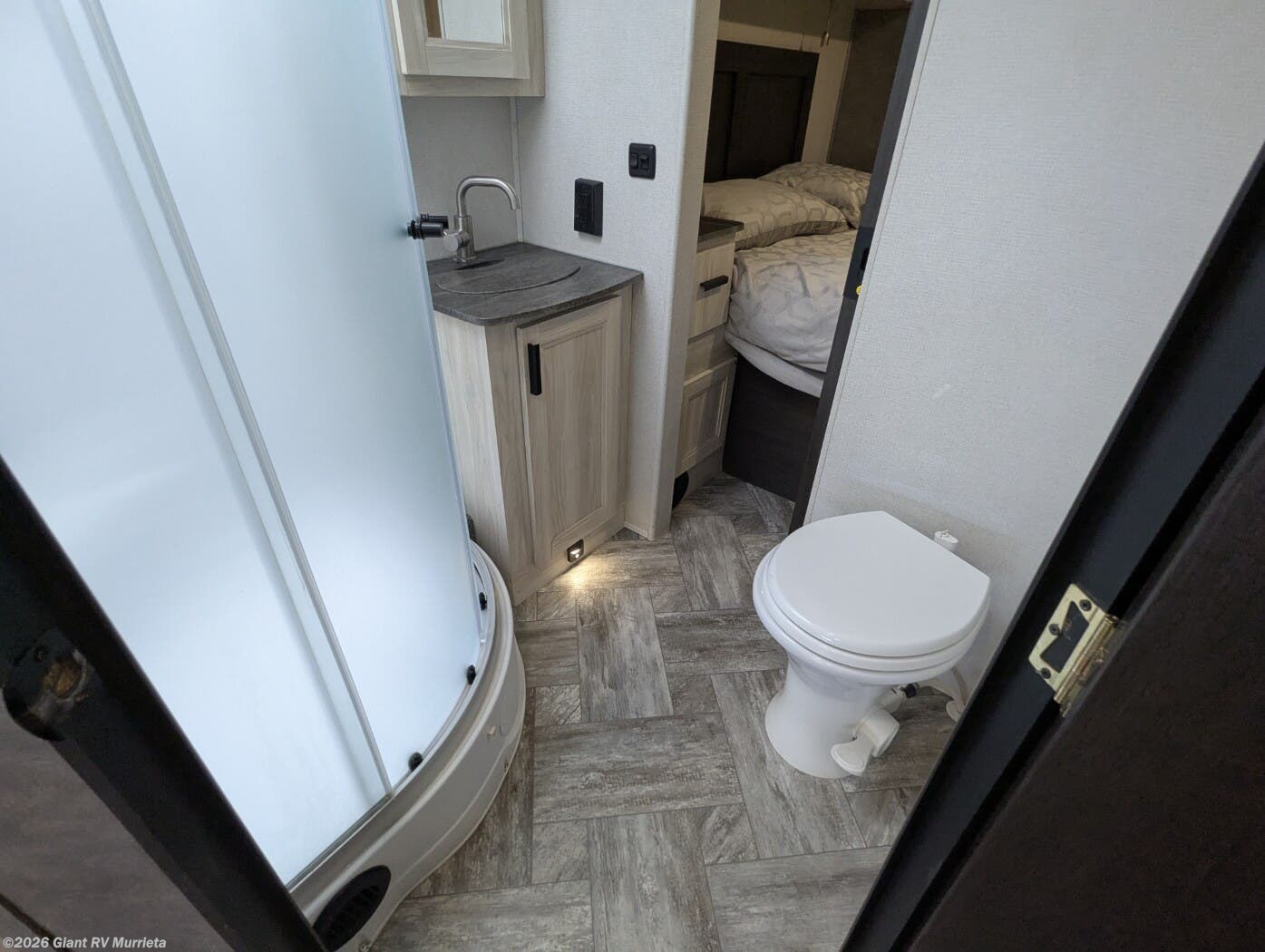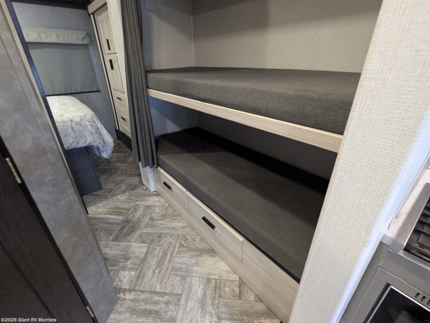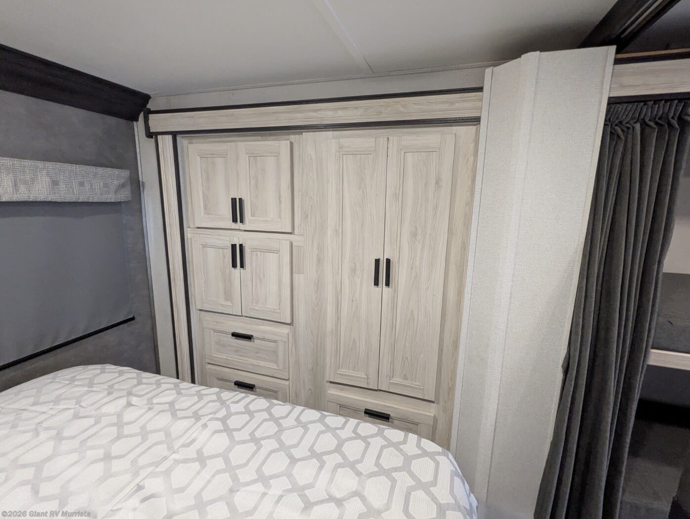 - Modern Kitchen: Equipped with a 10.7 cu. ft. 12V refrigerator, 1.3 cu. ft. convection microwave, and recessed 3-burner range for gourmet meals.