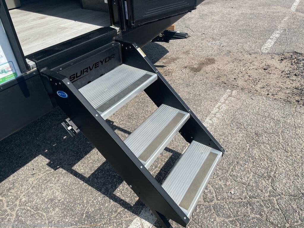 With any Surveyor Legend travel trailer by Forest River you will enjoy quality craftsmanship, convenient amenities, and at-home comforts. The Azdel composite panels provide a longer-lasting trailer, and the power tongue jack will get you back on the road in no-time. Each model includes the Surveyor Legend Package that comes standard with pleated night shades, an automotive style tinted front windshield, a multi-zone Bluetooth stereo, and more. You'll enjoy the one-touch electric awning with LED lights outdoors, plus rooftop solar prep and rear camera prep to make parking easier than ever. The inside will have you feeling right at home with Surf(x) seamless countertops, Congoleum designer carefree linoleum, residential faucets in the bath and kitchen, plus many more essentials you won't want to camp without.