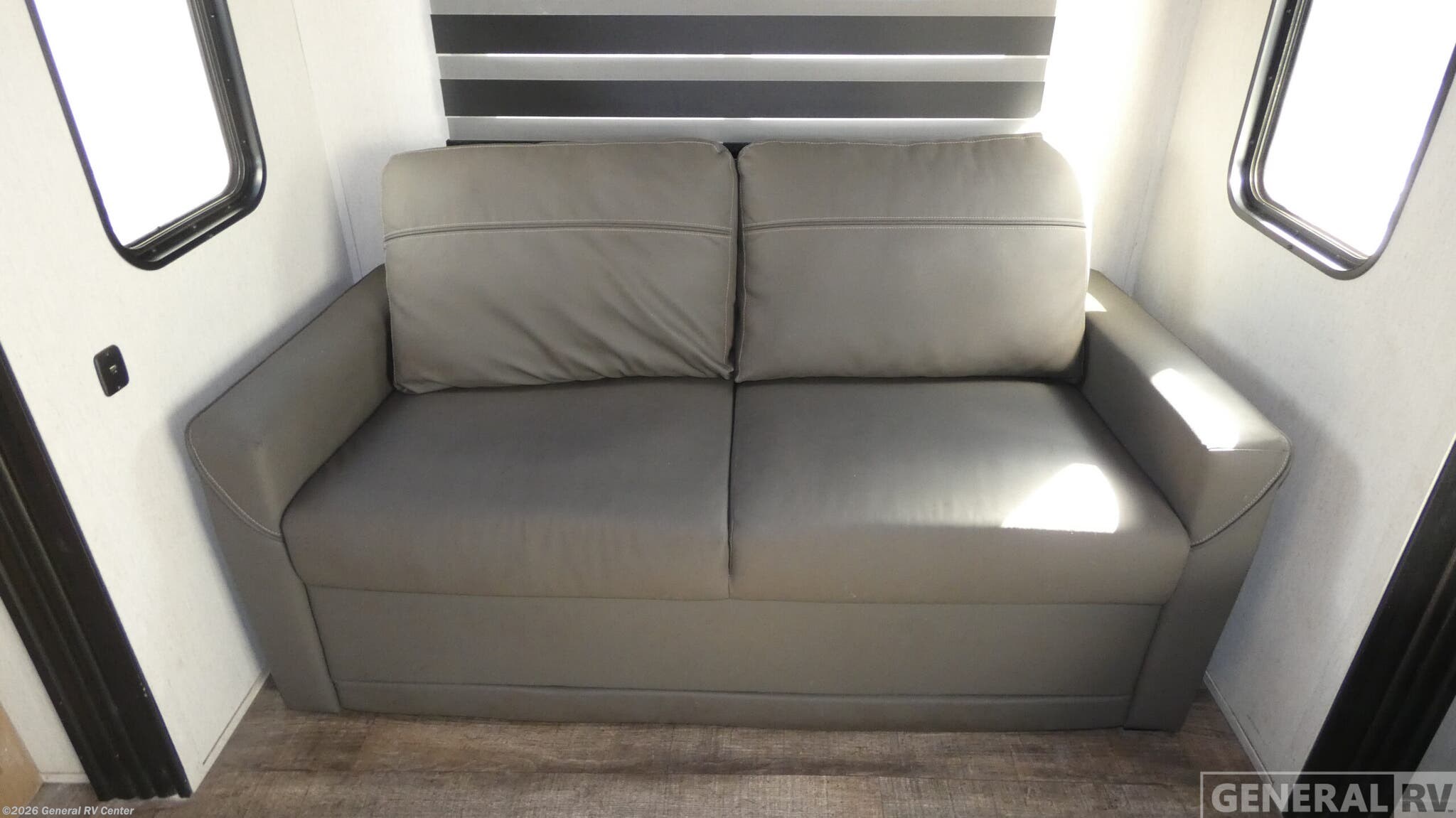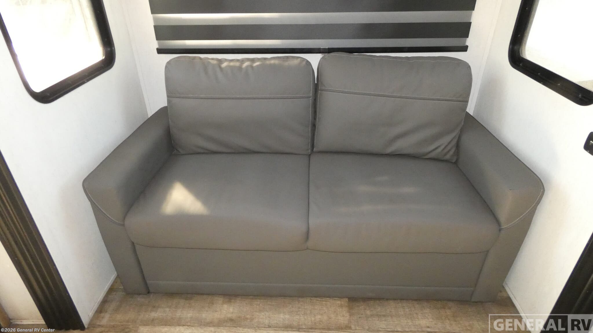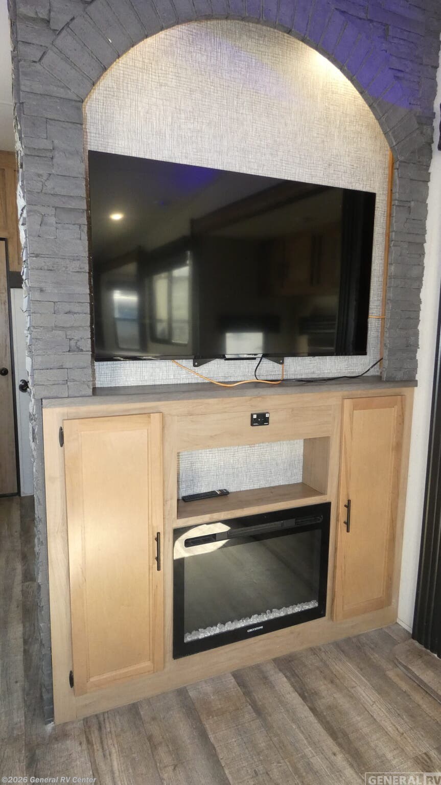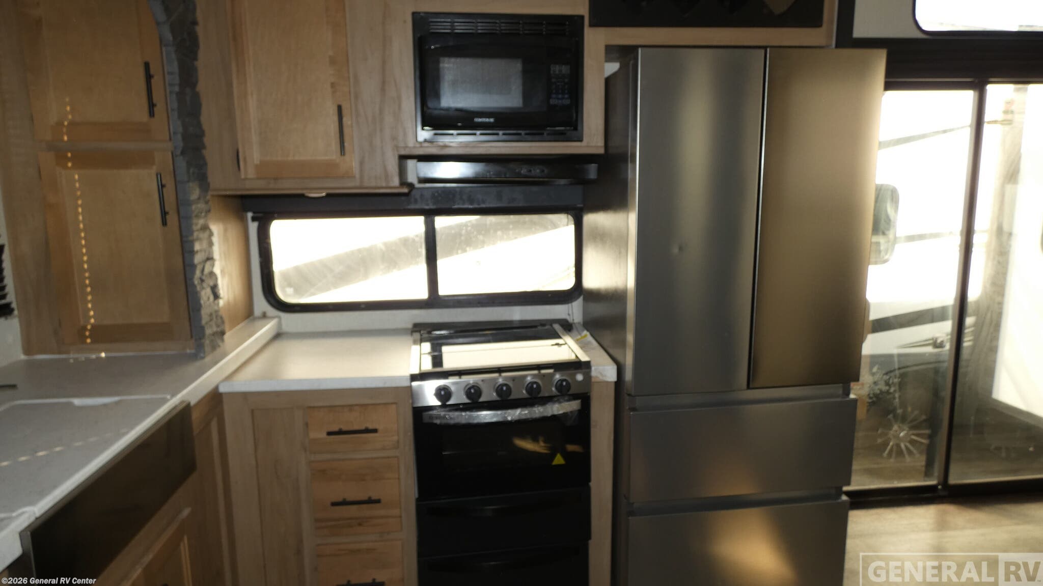 Forest River Timberwolf destination trailer 39SR highlights: Front Kitchen Opposing Sofa Slides Two Lounge Chairs Bar Top with Stools Loft with Stairs Rear Private Bedroom This Timberwolf destination trailer is very residential, and it includes almost everything your home offers you! You'll be able to get in and out easily with the two entry doors, and the front entry door leads into the large front kitchen. This kitchen is perfect for any chef because it has an 18-cubic foot refrigerator, two pantries, a microwave, range with oven, and residential farm-style sink. The free-standing dinette with chairs is also included in this space for socializing while cooking, but it won't be in your way while you cook because it sits within a slide out. There is more space to sit and enjoy a meal at the bar top with stools, and if you just want to eat while you watch the entertainment center, you can sit in one of the two lounge chairs or on one of the two sofas. If you want to warm it up and create a bit of ambiance, add the optional fireplace for a cozy evening. You're going to want to take a closer look at the Forest River Timberwolf destination trailer! These trailers have a backup camera system which will be extremely helpful as you maneuver these large units into the right spot. Some of the construction features include a seamless roofing membrane with heat reflectivity, a premium wheel package, power gear frame technology with space-saver rail design, and an armored underbelly tank enclosure. Use the USB charging stations to keep your phones ready to go, and stay in control of your trailer's electrical functions with the total control app and remote control system.