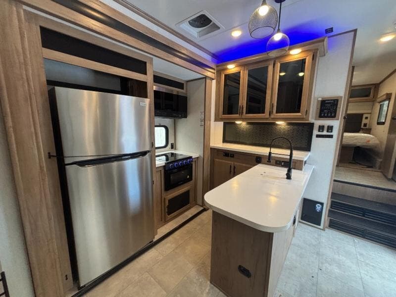 Check out this Used 2023 Forest River RV Vengeance Rogue Armored VGF383G2, a rugged and feature-packed toy hauler built for serious adventure. This model offers a spacious garage area for your toys, a comfortable living space, full bathroom, kitchen with modern appliances, and sleeping areas designed for both function and comfort. With durable construction and plenty of storage, the Vengeance Rogue Armored VGF383G2 is perfect for weekend warriors, off-road enthusiasts, and families who want versatile living space and cargo capability in one unit.