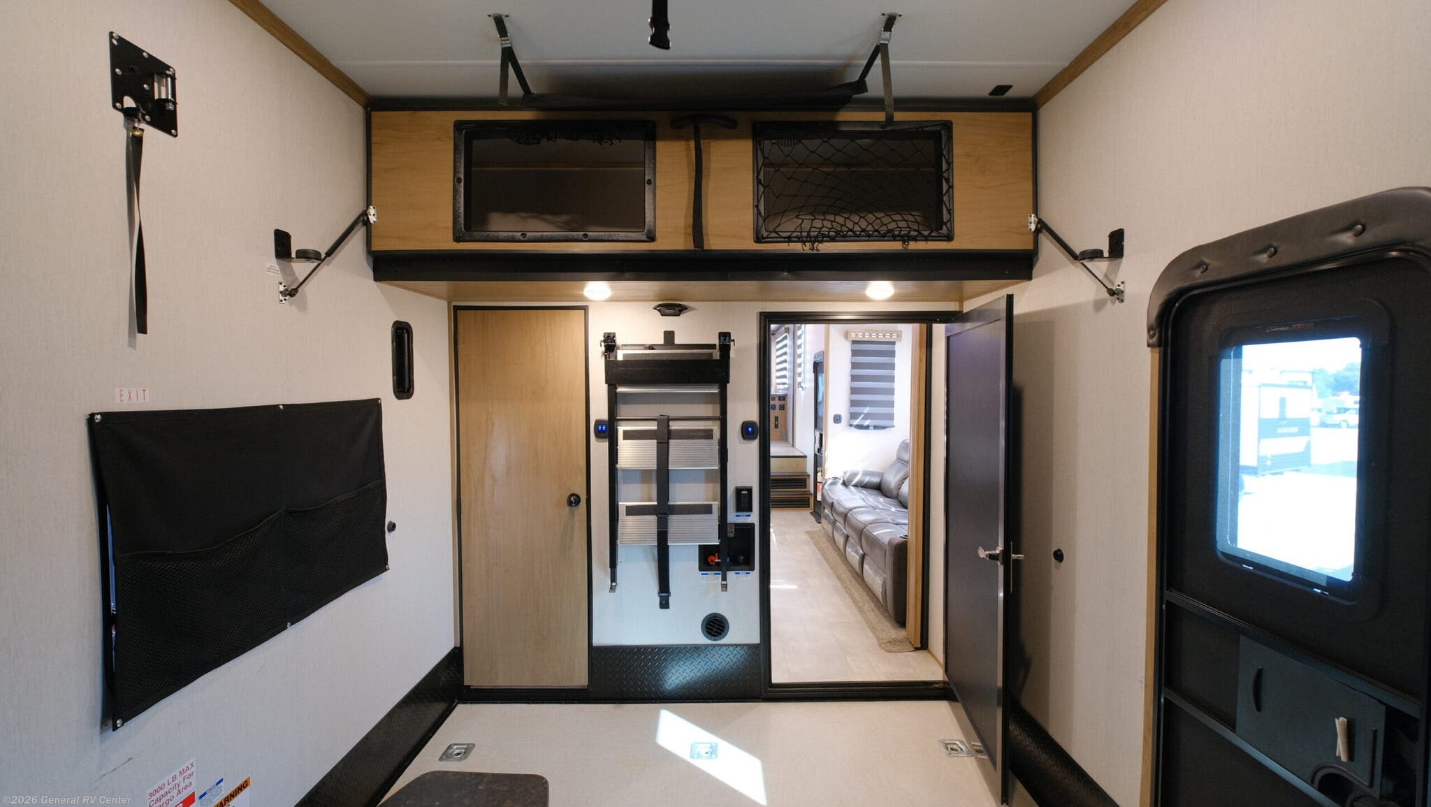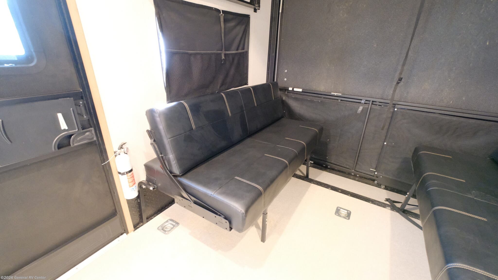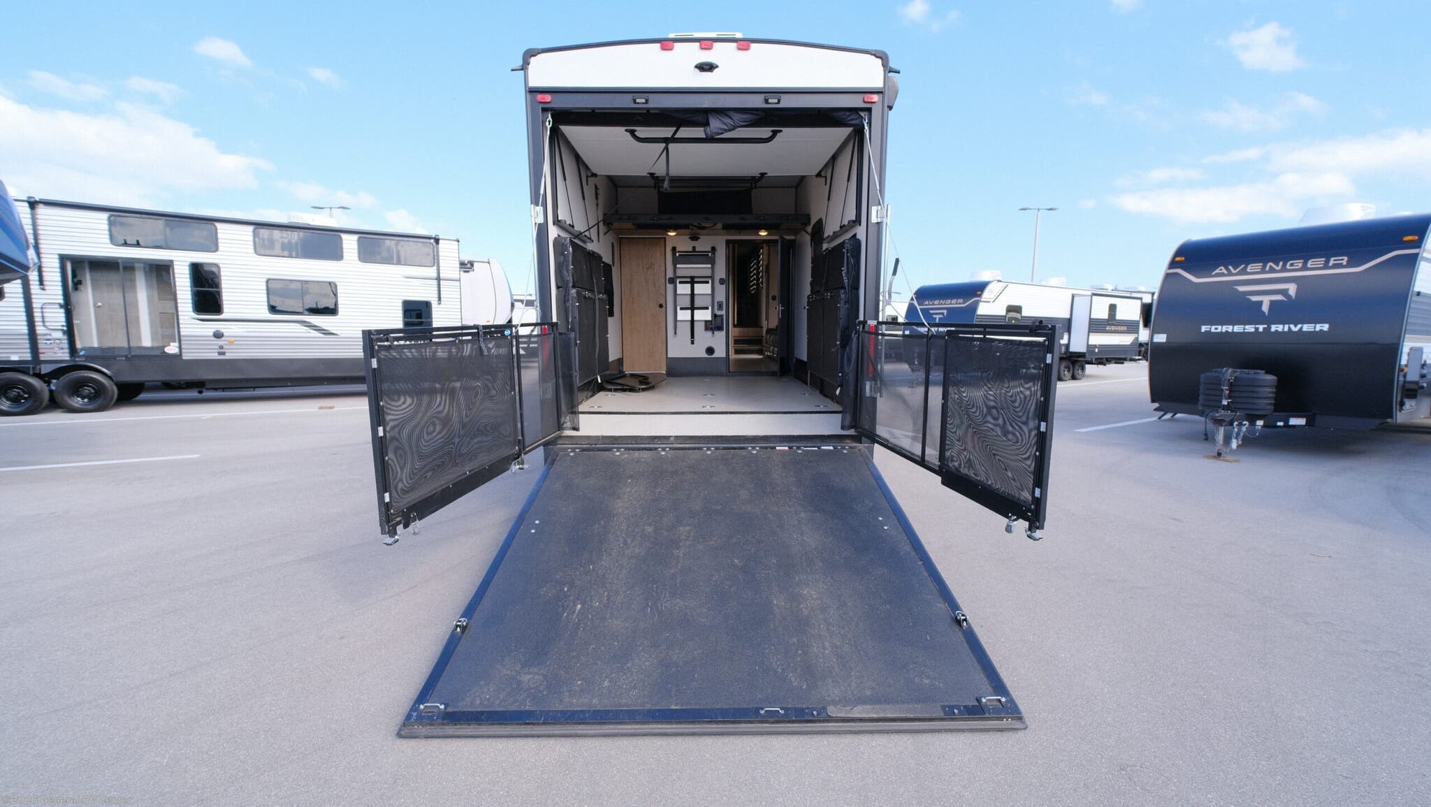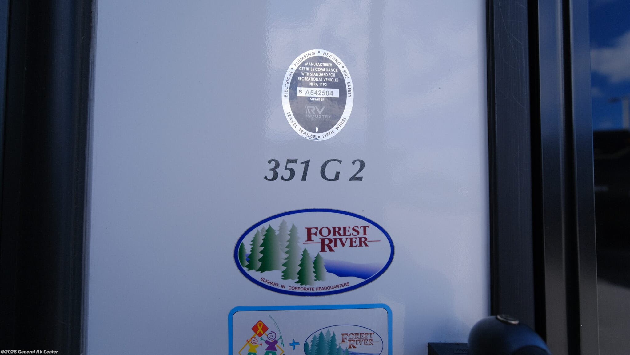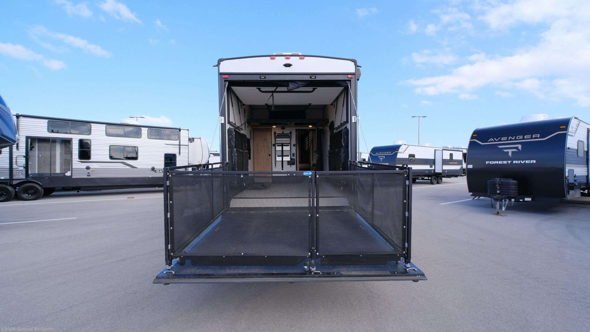 **Forest River Vengeance Rogue Armored toy hauler VGF351G2 highlights:** - Front Private Bedroom - Dual Entry Bathroom - Sofa with Recliners - Loft - Dual Entry Doors - Pass-Through Storage Everyone will stay clean with a bath and a half in this fifth wheel toy hauler! The front private bedroom has a 72" x 80" king bed slide to lay your head on at night, a front wall wardrobe, and a dresser to keep your clothes looking nice, plus an entrance into the bathroom. The kitchen has plenty of countertop space to prepare your meals, and a refrigerator to store any leftovers. The garage area has a loft, opposing flip-up sofas with a table in between and a raised queen bed above them, as well as a second entry door and an area prepped to add an optional washer and dryer! Every one of these Forest River Vengeance Rogue Armored fifth wheel toy haulers come with the features you want most at an affordable price tag! The DUR-A-POXY cargo floor has 5,000 lb. tie downs to ensure your toys will arrive safely without damaging the flooring, plus the 8' ramp door makes it easy to load them. A 15,000 BTU air conditioner will keep you cool even on the hottest summer days. An enclosed and heated underbelly keeps your unit's vitals protected and a central docking station makes life a little easier. The Rogue Armored package comes with a six point leveling system, a comfort plus adjustable powered king bed system, and a ramp door patio system. You can be sure to find one that fits your needs!