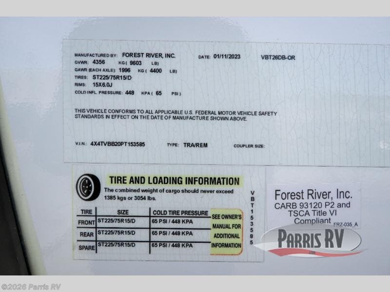 Request More Info on this 2023 Forest River Vibe 26DB Offered for sale by Parris RV