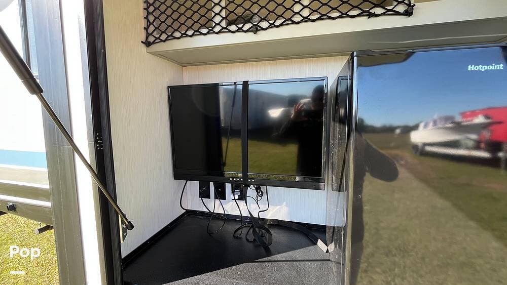 On the exterior, this Vibe 31ML offers an outdoor kitchen with a TV! Storage for camping gear, a power awning with LED lighting for relaxing outdoors, and an easy-to-tow design with an aerodynamic profile. An outdoor shower adds extra convenience after beach days or outdoor activities.