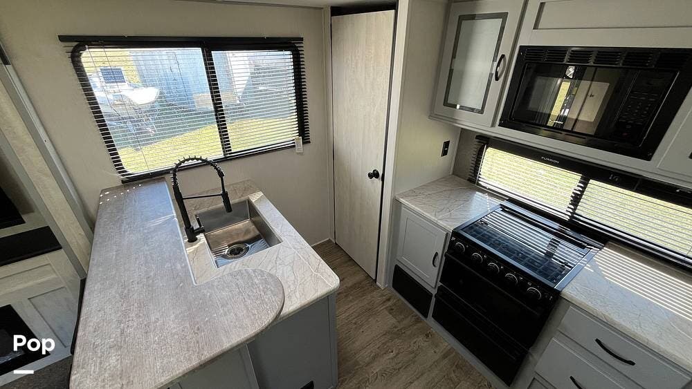 The 2023 Forest River Vibe 31ML, a well-designed and comfortable travel trailer that's perfect for families, couples, or anyone looking to enjoy the RV lifestyle. This model offers a completely different layout with the kitchen on the back wall, modern appliances, and quality construction, making it ideal for weekend trips or longer adventures.