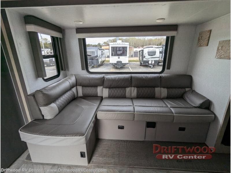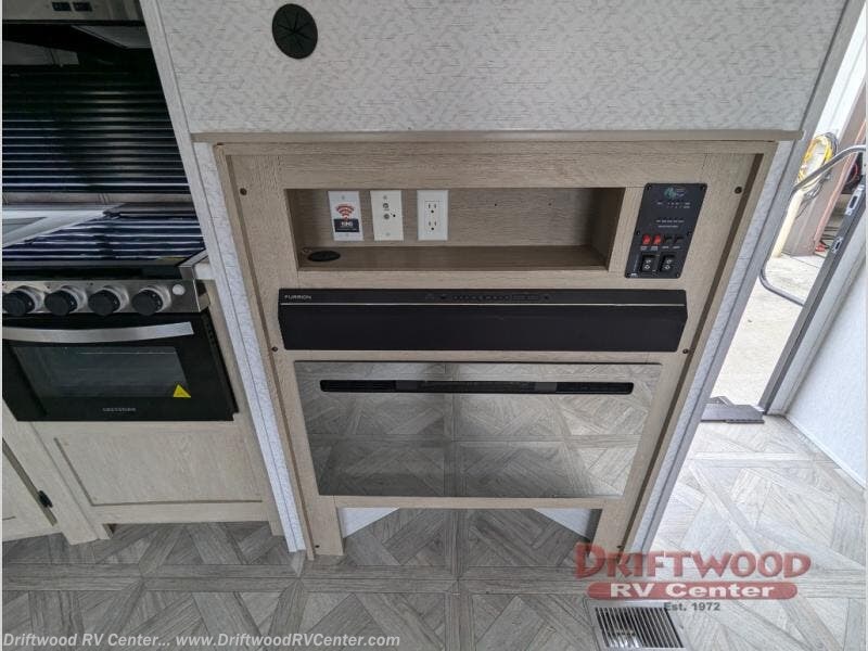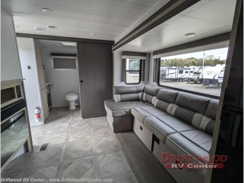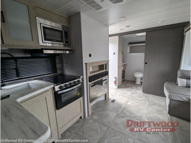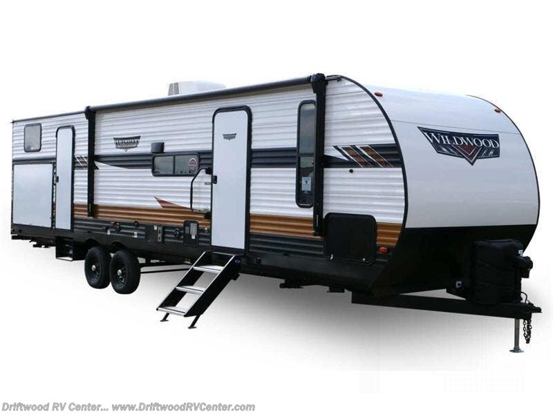 Forest River offers you the highest quality and the best components in its Wildwood travel trailer! The fully walkable one-piece roof is ultra reliable, and the rest of the construction is just as dependable with the powder-coated I-beam frame, cambered chassis, R-7 fiberglass insulation, nitrogen-filled tires, and triple-seal slide-out system. The Wildwood is not only full of quality, but it is also full of style with its new Tuscan Villa upgraded flooring pattern, upgraded designer furniture, mirrored front fireplace, and seamless countertops. The Wildwood also comes with some extra features that will make your life more comfortable, like the exterior speakers, the tablet-compatible USB ports, a residential inspired bathroom vanity, extra large panoramic windows, and so much more.