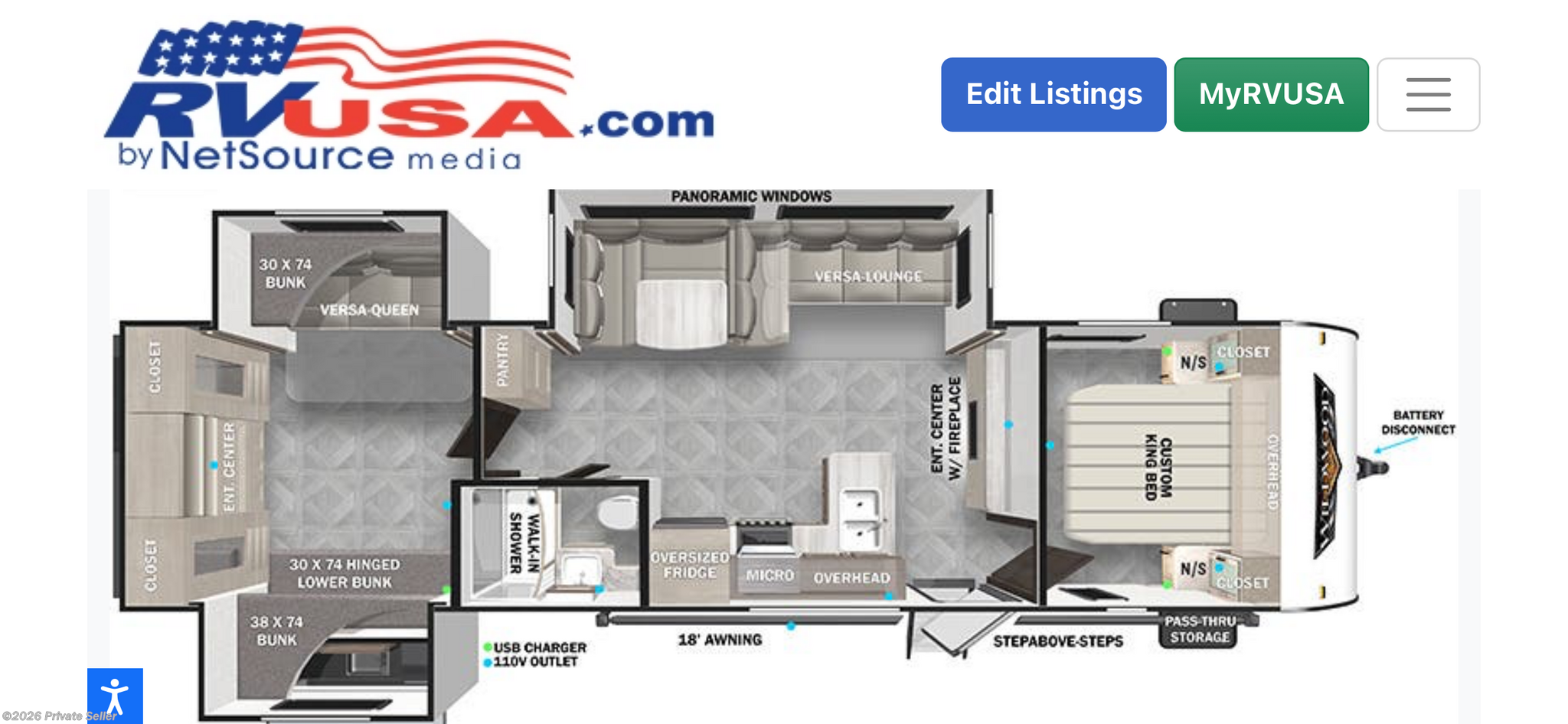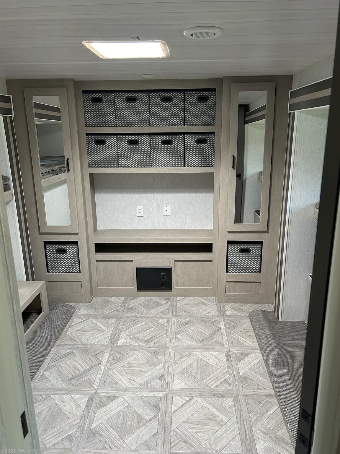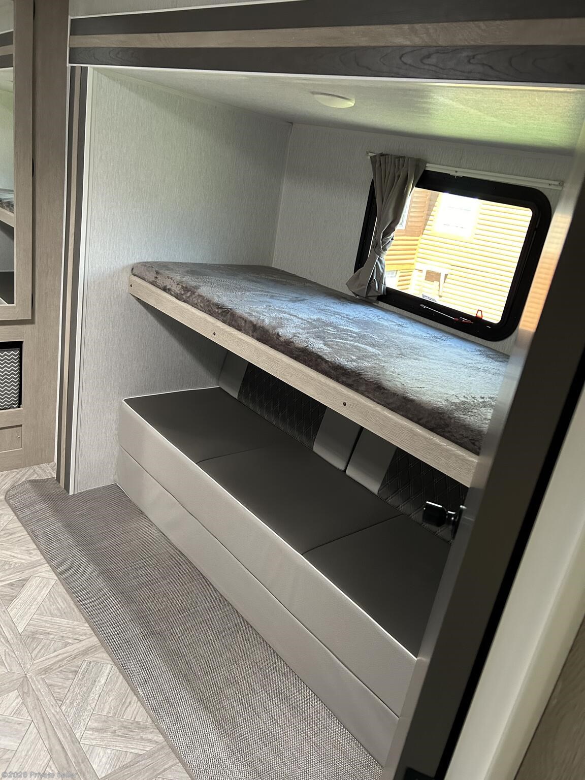 Very Nice. Outdoor kitchen/grill, outdoor shower. Lots of storage spots. Fireplace, outdoor speakers, LED strip under the awning. Solar panel. Come with 3 tvs. Huge bunk room. 3 slides. Dinette table is nice size and makes a queen size bed. Couch goes into a bed as well. 2023 Forest River Wildwood 31KQBTS