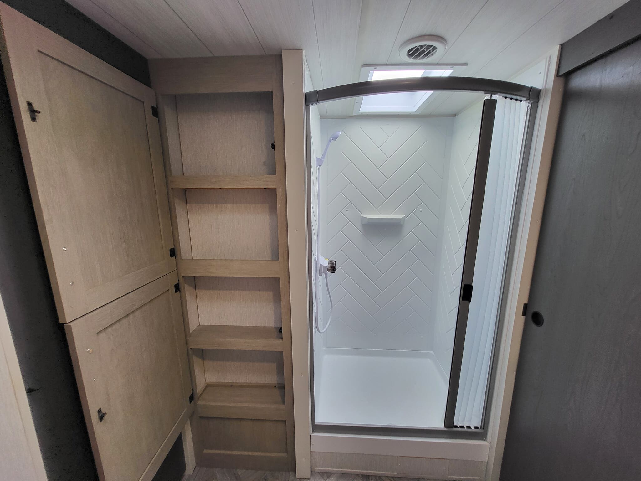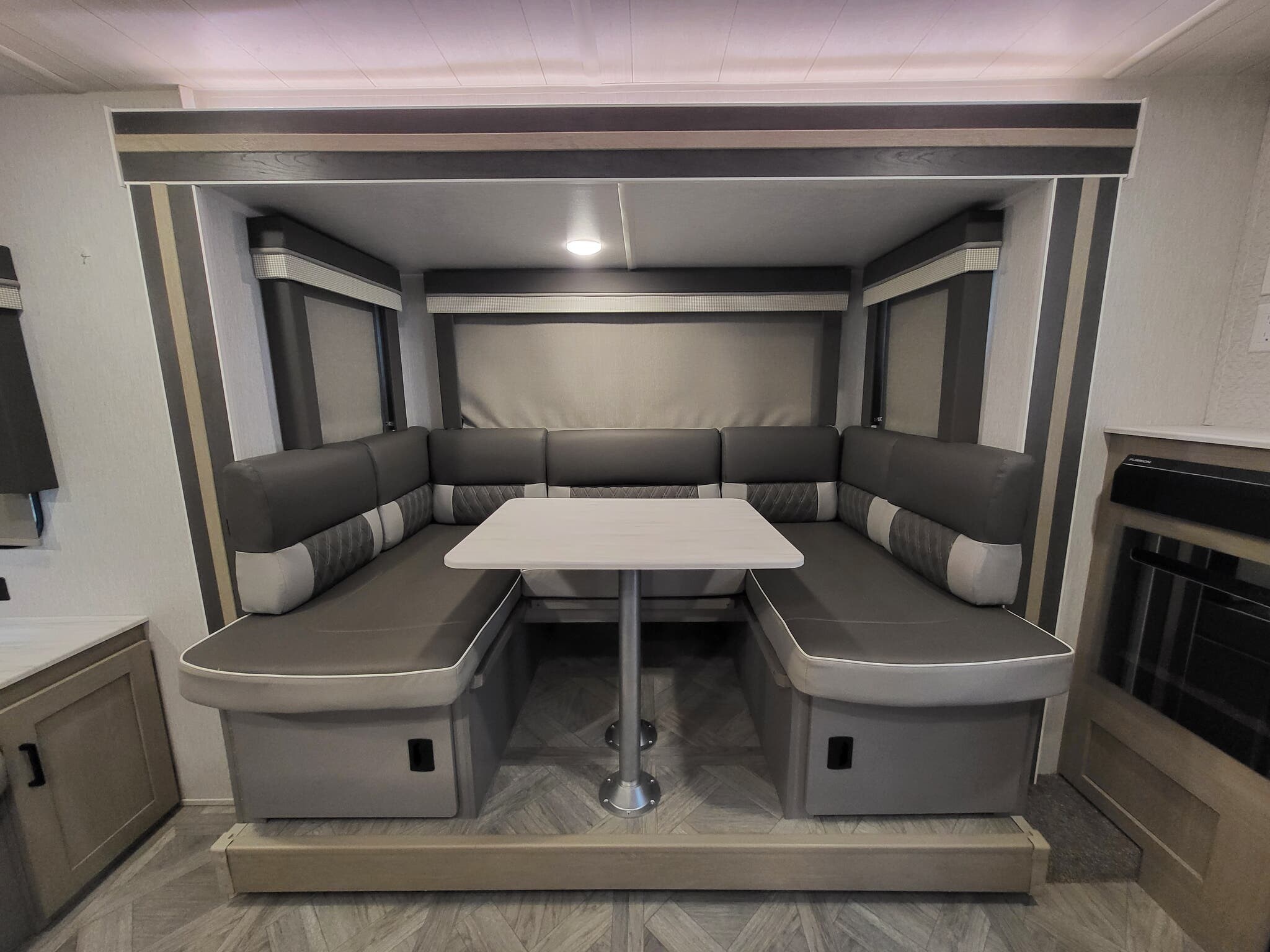 Fireplace, King Size Bed, Medicine Cabinet, Roof Vents, Shower, Toilet, U-Shaped Dinette