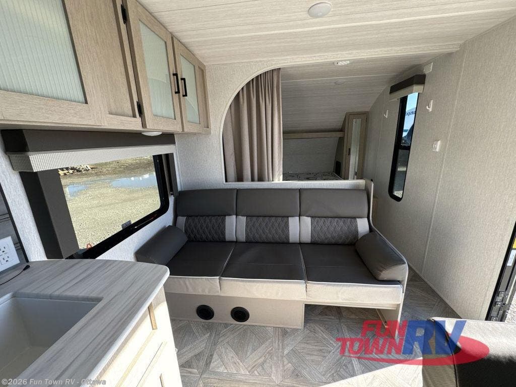 This Wildwood X-Lite travel trailer is packed with features! There is a walk-around custom king bed up at the front that can be sectioned off from the rest of the trailer with a privacy curtain, and the double-size bunks in the back of this trailer will provide you with a compact sleeping space for your little ones. The booth dinette is going to be a great place to sit down together and have a meal when the bugs are too bad outside to sit at the picnic table, and there is also a sofa for relaxation while inside. You will also appreciate the look and function of the seamless countertops in the kitchen, and the 11-cubic foot refrigerator will easily keep your perishable items fresh. There is also an outside camp kitchen option for more choices when cooking for the family.