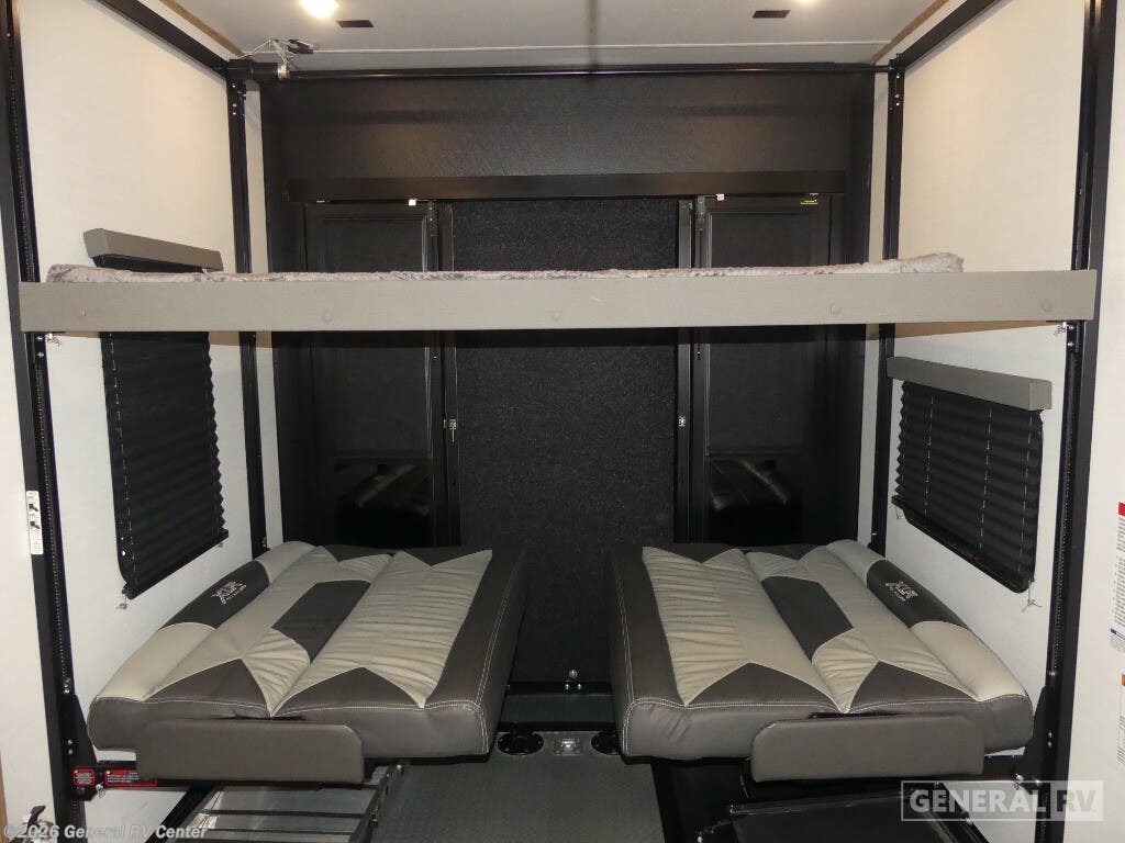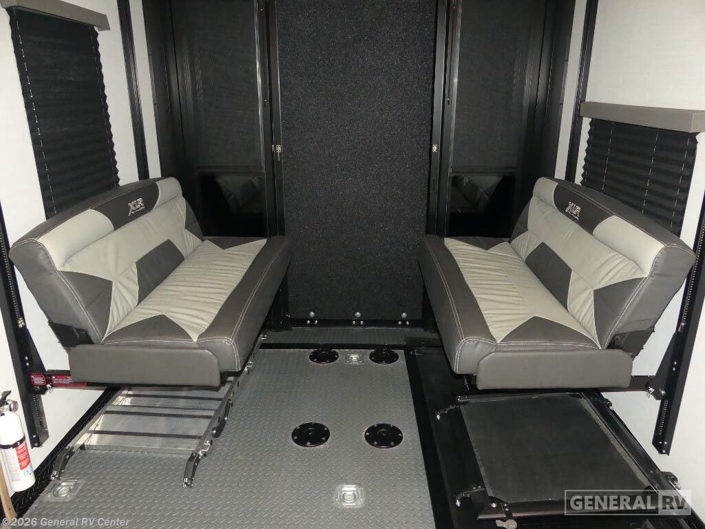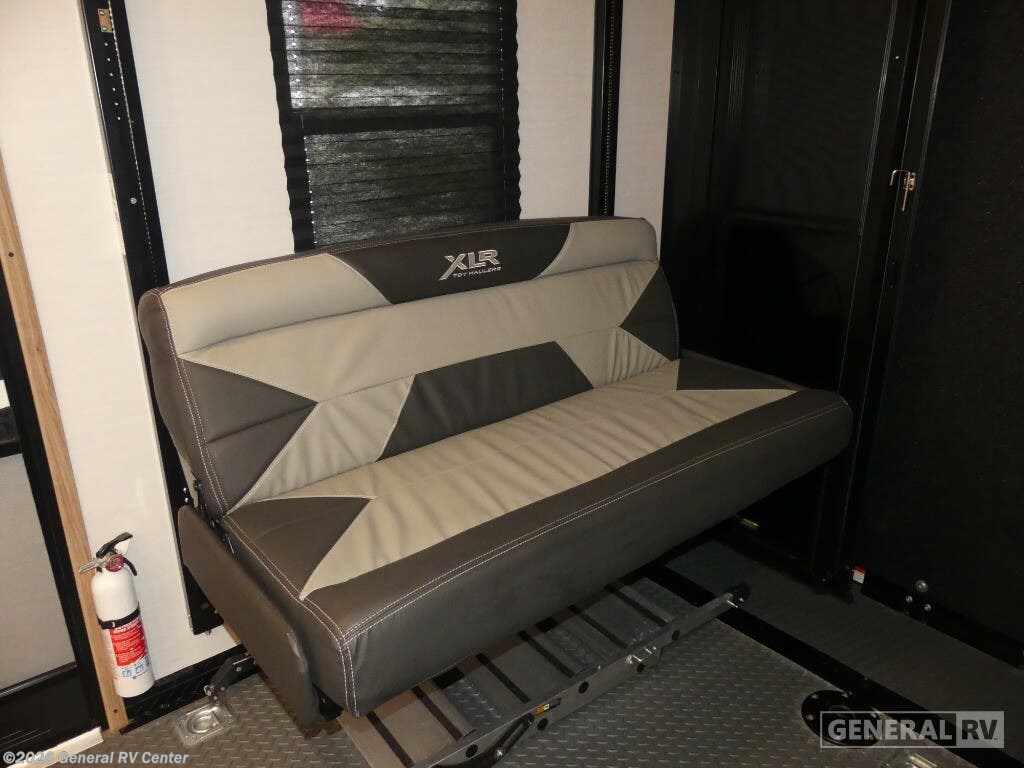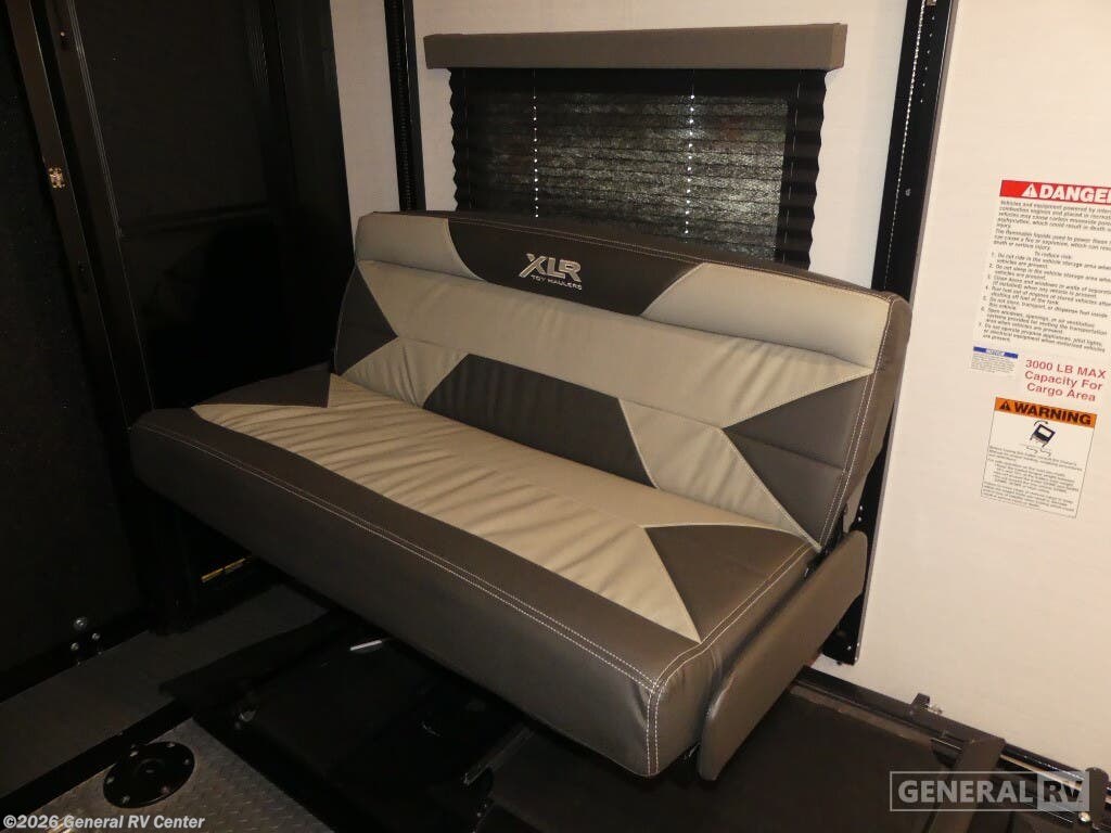 Experience the ultimate in luxury and adventure with the 2023 Forest River XLR Nitro 351. This impressive 40.83-foot toy hauler is designed to elevate your travel experiences with its spacious and versatile layout. Imagine entertaining friends and family in the center living area, where a cozy sofa invites relaxation. The sleek center kitchen is equipped with a full-size electric refrigerator and a three-burner cooktop, perfect for preparing gourmet meals on the go. With an 18-foot powered retractable awning, your outdoor living space is just as inviting, providing shade and comfort for those sunny days. Retreat to the front bedroom, where a plush king bed promises restful nights. Accommodating up to eight guests, this RV features a variety of sleeping options, including a queen bed, a double bed, and a convertible bed. The 14-foot garage space with removable tables transforms into a versatile area, ideal for storing your outdoor toys or setting up an additional lounge. Plus, with washer and dryer prep, extended adventures are a breeze. The XLR Nitro 351 is not just an RV; it's your ticket to limitless exploration and comfort. Visit your nearest General RV Dealership to make it yours today!