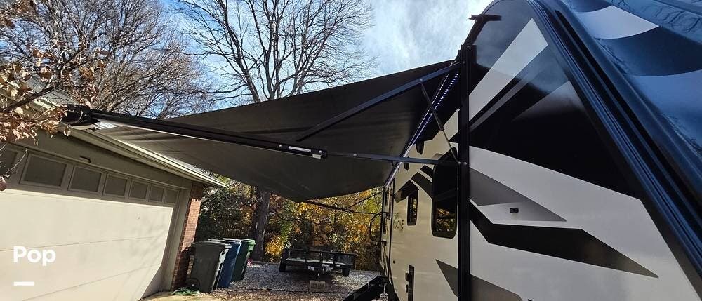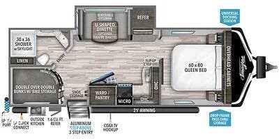 It features one deep slide-out and a 21-foot power awning with pitch adjust for excellent outdoor coverage.