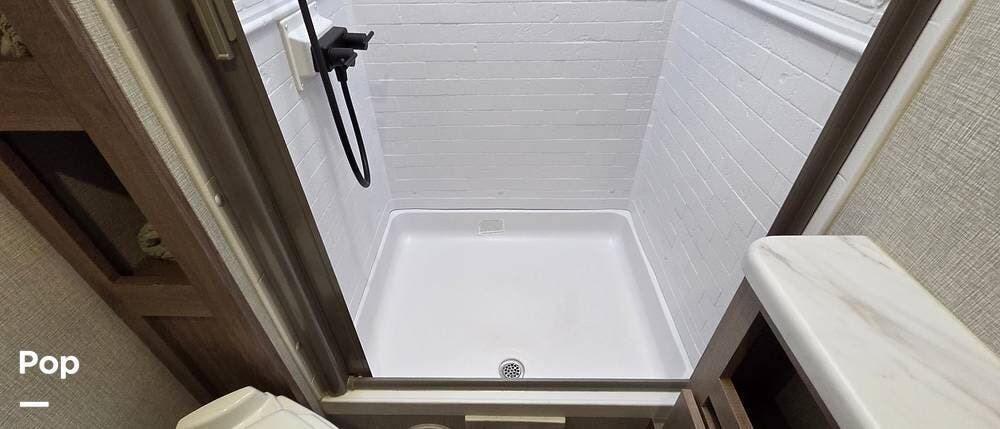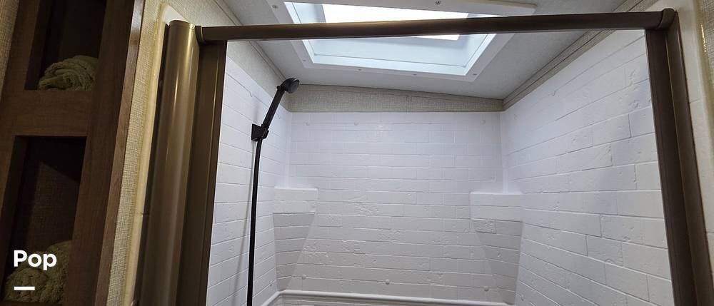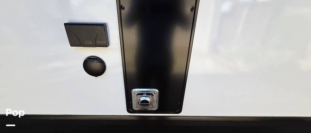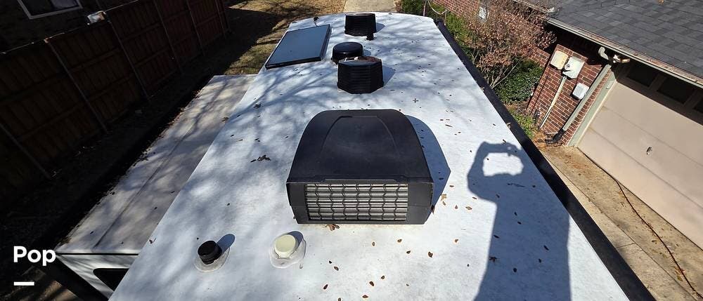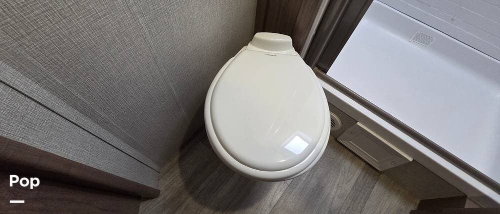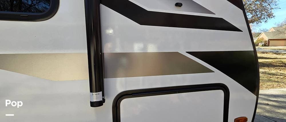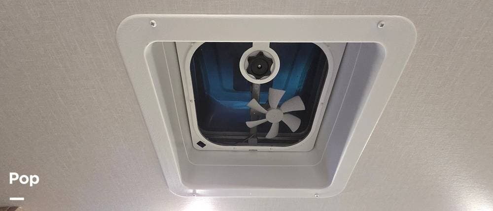 This Imagine has several practical upgrades, including a professionally installed exterior hot and cold water port. Three MaxxAir vent covers have been added for improved airflow and weather protection, along with an upgraded variable-speed bathroom vent fan for better ventilation. Shade blockers have also been added to the vents to help reduce heat and increase privacy.