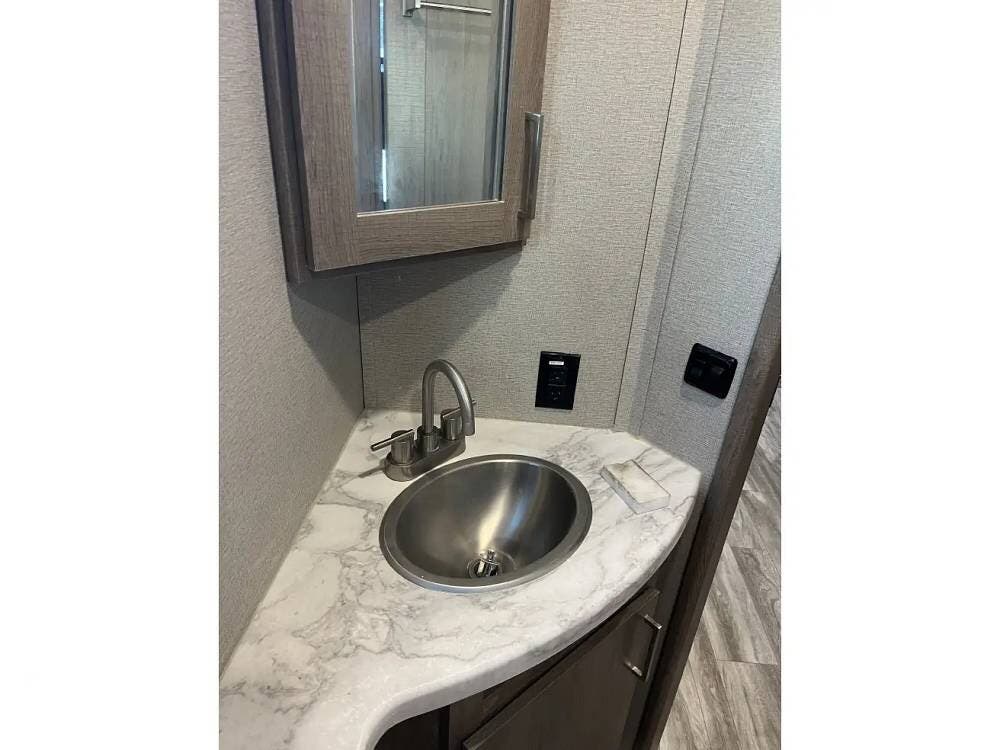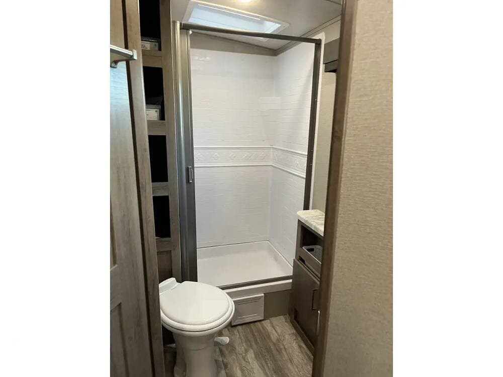 The walk-in shower provides plenty of room, and the outdoor kitchen is a fantastic bonus for summer camping and entertaining.