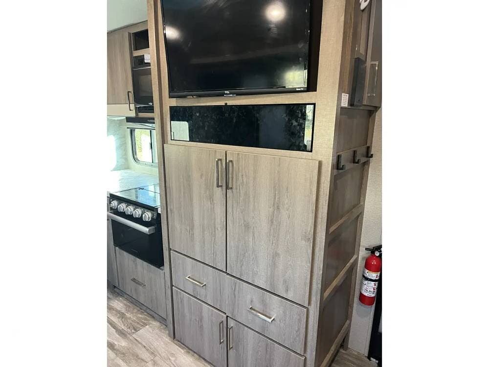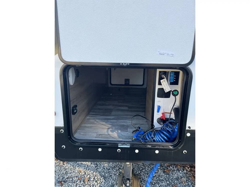 This trailer is also outfitted with solar panels and includes all essential hookups. It's fully equipped, so you can hitch up and head out right away.