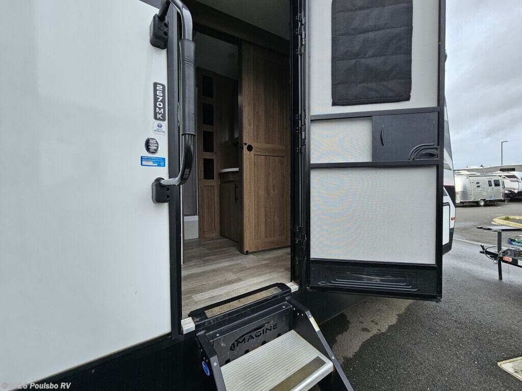 The 2023 Grand Design Imagine 2670MK caters to travelers who value space, comfort, and versatility in a well-crafted RV. This used model stretches 32.3 feet in length and is thoughtfully designed to sleep up to five people comfortably, making it a superb option for families or groups seeking memorable road trips. Thanks to its single slide out, the living area expands significantly, offering extra room to relax, socialize, or enjoy meals together without feeling cramped. Inside, the layout maximizes functionality with clever storage solutions and multiple seating areas to ensure that every journey feels like a retreat. The presence of one awning creates an inviting outdoor space to soak in scenic views or unwind in the shade, combining outdoor fun with creature comforts seamlessly. Leveling jacks have been included for stability on uneven terrain, enhancing safety and convenience when parked at your favorite destinations. Weighing in with a dry weight of 6845 pounds and a hitch weight of 690 pounds, this Grand Design Imagine 2670MK is designed to be towed without excess strain, prepared to accompany you on countless adventures. The versatility of this coach accommodates changing travel needs, allowing you to customize living and sleeping arrangements easily. This model encapsulates the joy of RV living by balancing space, mobility, and style, ensuring that every trip is enjoyable and stress free. As a family owned, award winning local RV dealer with multiple locations in Sumner, Everett, Kent, and Mt. Vernon Washington, Poulsbo RV is here to help you find the perfect RV. Stock#: CC5346, VIN: 573TE3227P6645842.