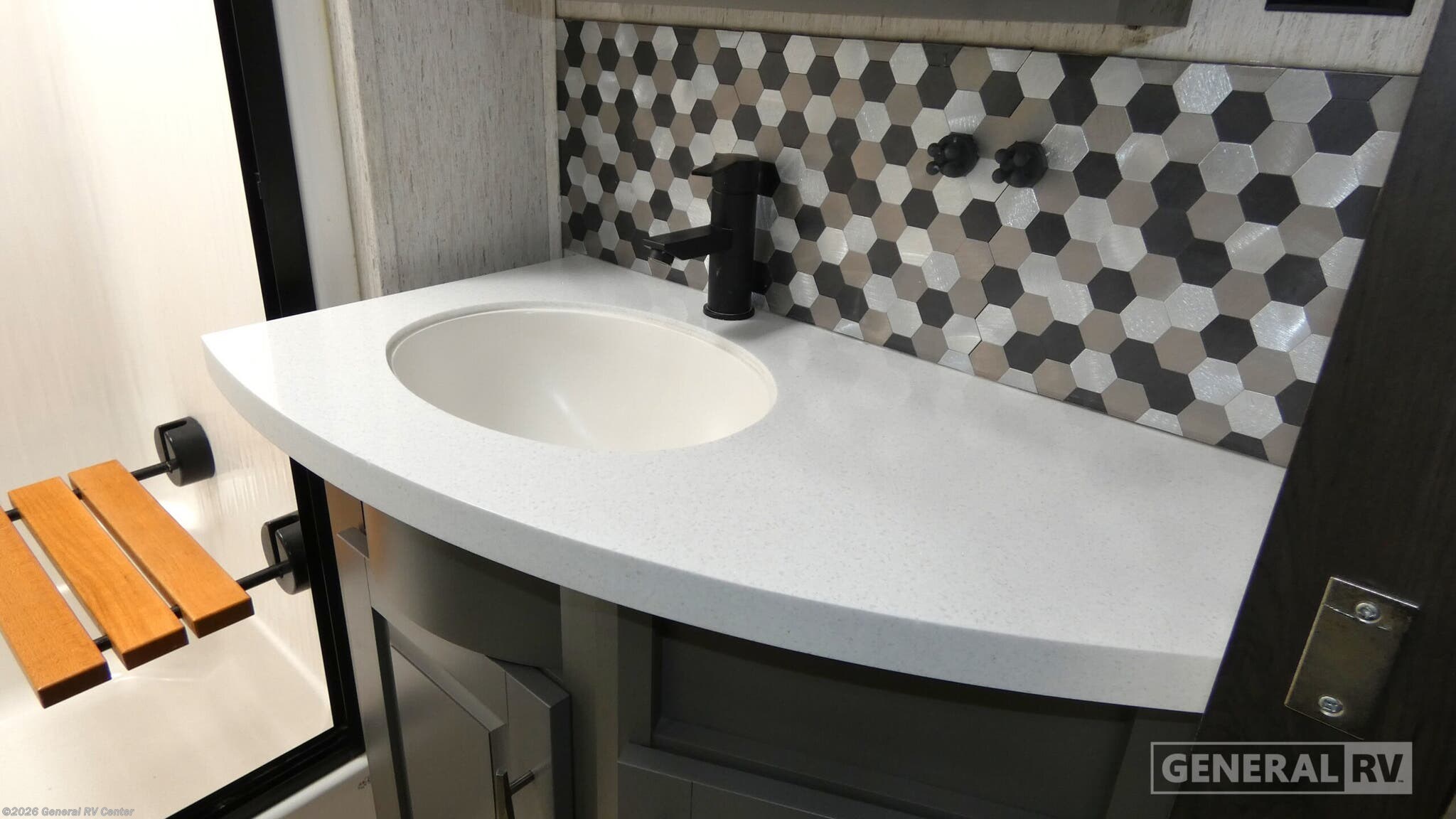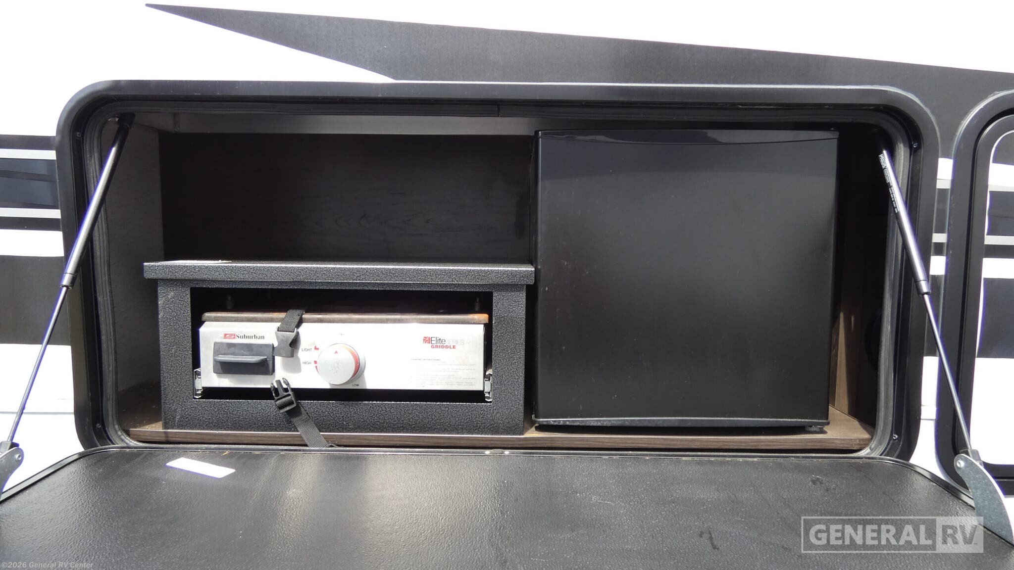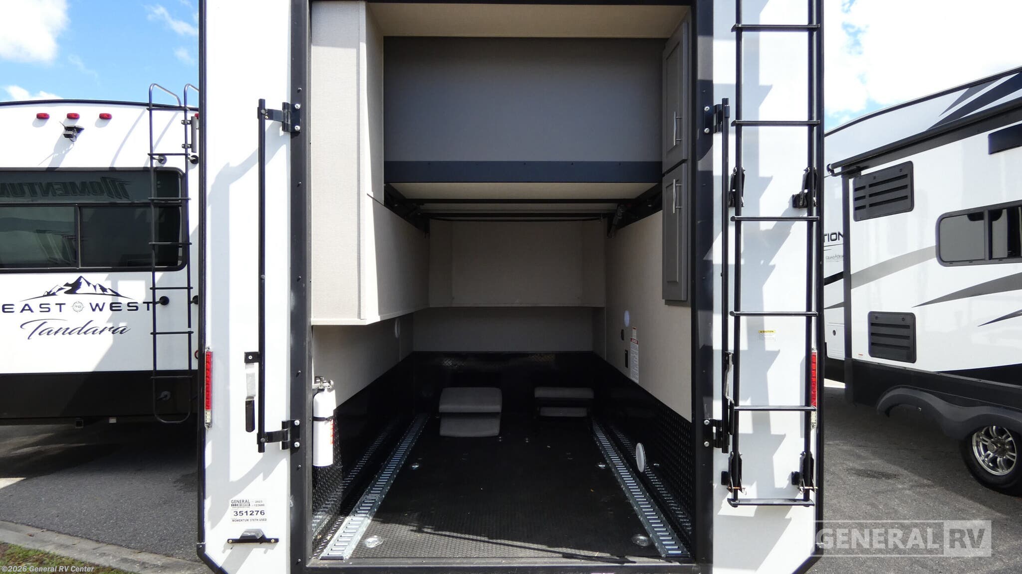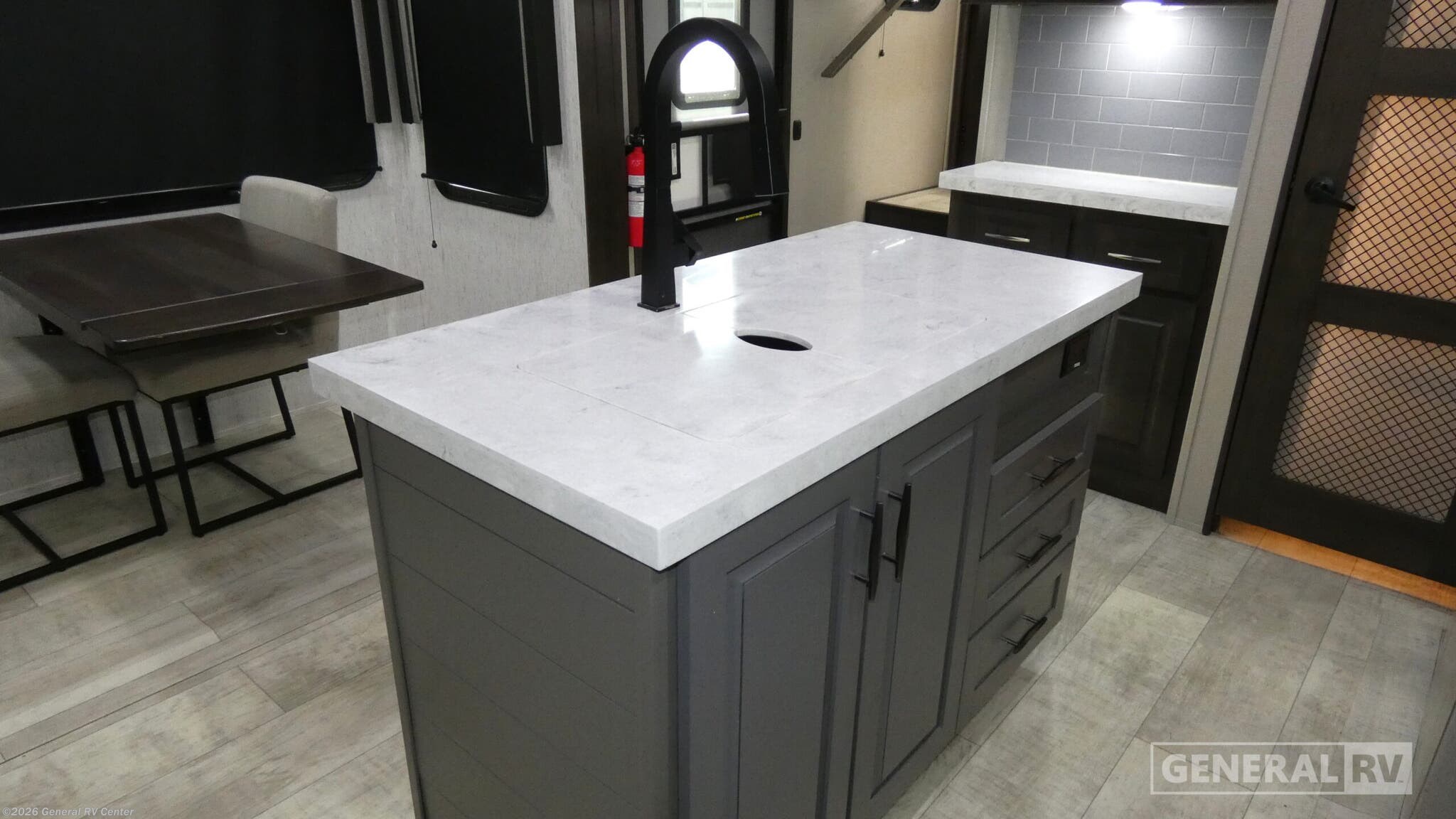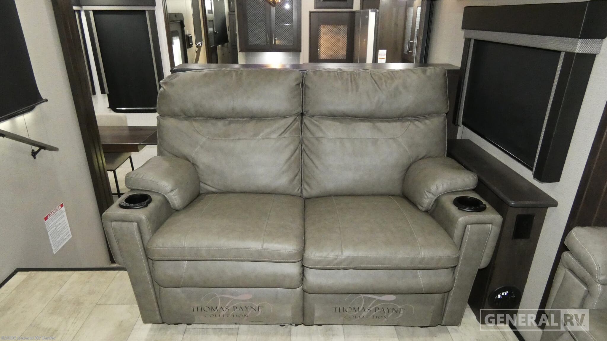 Grand Design Momentum fifth wheel toy hauler 376THS highlights: Below-Floor Garage Separate Living Room Rear Bedroom Theater Seating Kitchen Island Outside Kitchen & TV This unique fifth wheel offers a below-floor garage for your toy(s), an outside kitchen and LED TV, two pass-through compartments and two awnings! The front, separate living area gives you a place to relax with opposing tri-fold sofa slides and theatre seating across from the telescoping LED TV with a fireplace below. The separate kitchen is spacious as well and includes a kitchen island with stools, a hutch and a desk, plus a free standing dinette within a slide out. The pantry even has a prepped space for a washer/dryer option to keep the linens clean. You will enjoy dual access to the full bath, and the rear bedroom provides a walk-around queen bed or choose the king option, plenty of storage and USB charging outlets. The Momentum fifth wheel toy haulers by Grand Design are built for four seasons of travel with your off-road toys and include luxurious accommodations throughout for extreme living! Each is constructed to a superior standard with the thermal roof design, the full-laminated walls, and the triple insulated garage floor. The MORryde CRE3000 suspension system and rubber pin box, plus the upgraded axle hangers provide the performance and smooth towing you desire, while the interior offers luxury such as color changing LED accent lighting, raised panel hardwood cabinet doors with hidden hinges, and a central vacuum system. Each toy hauler also includes four packages, including the Garage Package with Tuff-Ply gas and oil resistant flooring, the Weather-Tek Package with a Stealth AC System, and the Interior Luxury Package with solid surface countertops!