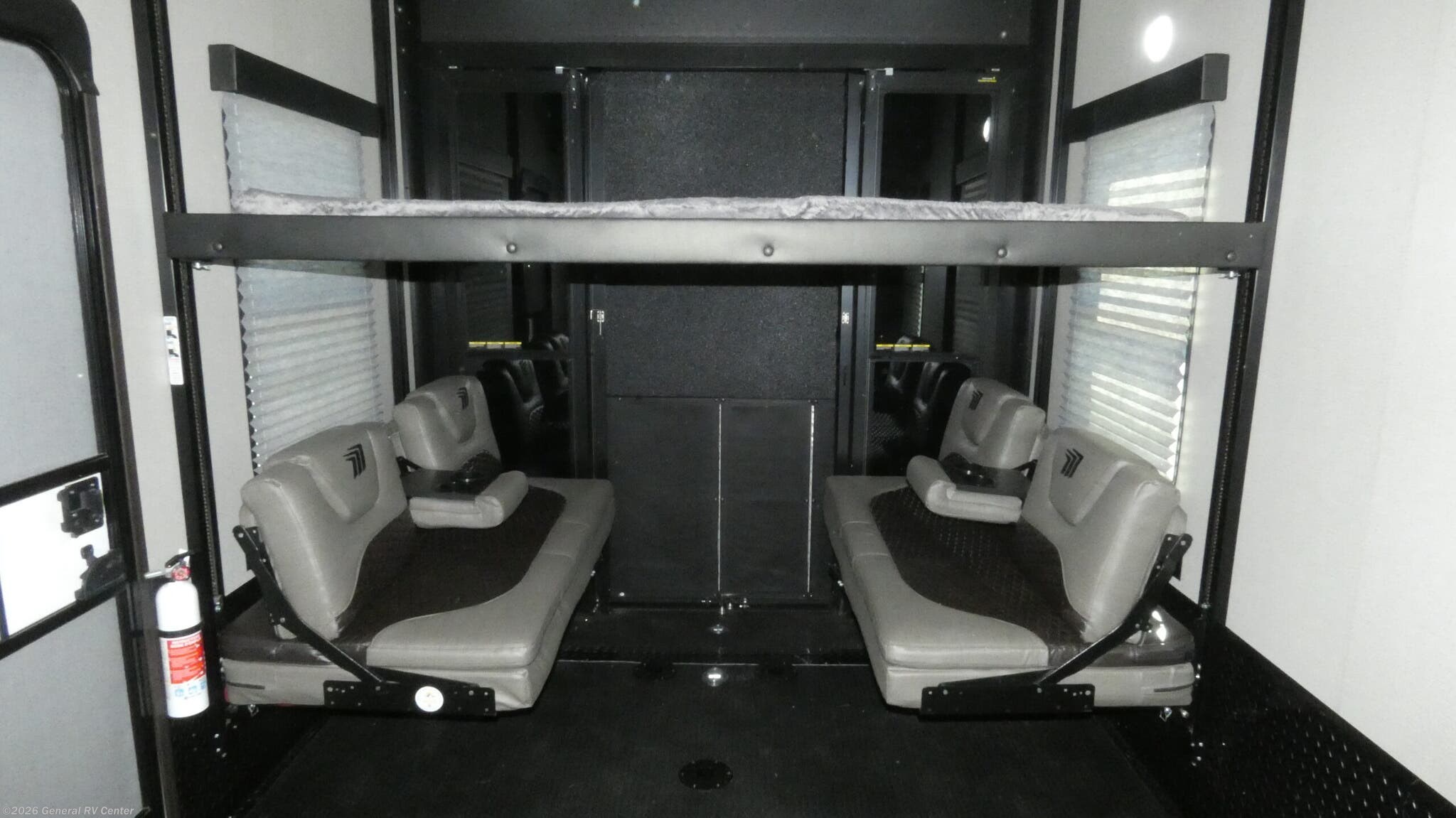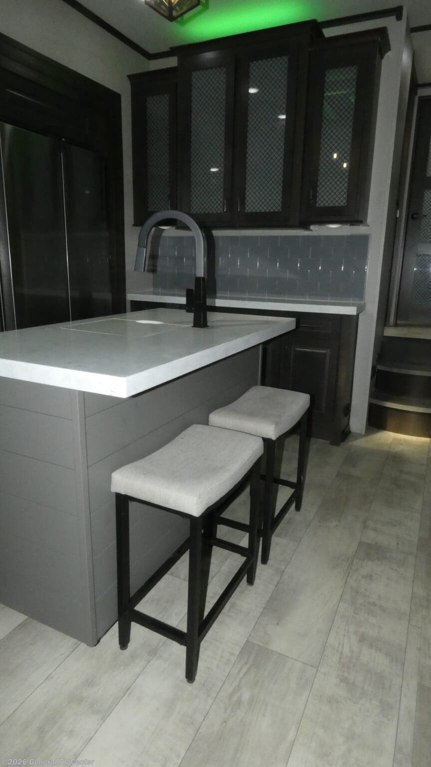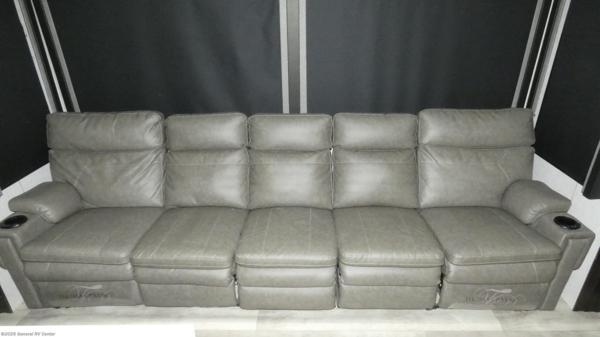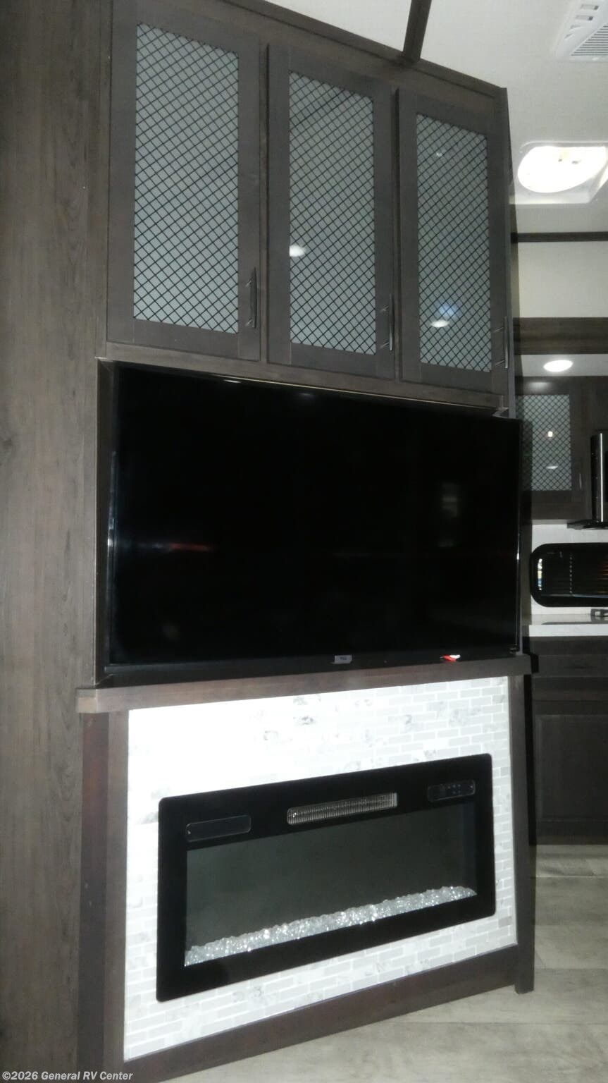 Step into the world of luxury and adventure with the 2023 Grand Design Momentum 397TH. This remarkable fifth wheel toy hauler is designed to elevate your travel experience with its spacious layout and top-tier amenities. With a length of over 44 feet, it offers ample room for both relaxation and excitement. The 12'6" garage is perfect for bringing along your favorite outdoor toys, while the ramp door doubles as a patio, allowing you to enjoy the great outdoors with ease. Inside, the Momentum 397TH boasts a sophisticated interior with a center kitchen featuring modern appliances, including a full-size refrigerator and a four-burner cooktop. The living area is a haven of comfort, with theater seating and a cozy fireplace, making it perfect for unwinding after a day of adventure. The sleeping arrangements are equally impressive, accommodating up to nine people with a king bed option in the front bedroom, a queen bed, and convertible sleeping spaces. With three powered retractable awnings and a washer/dryer, this RV ensures convenience and luxury wherever the road takes you. For more details, visit your nearest General RV dealership.