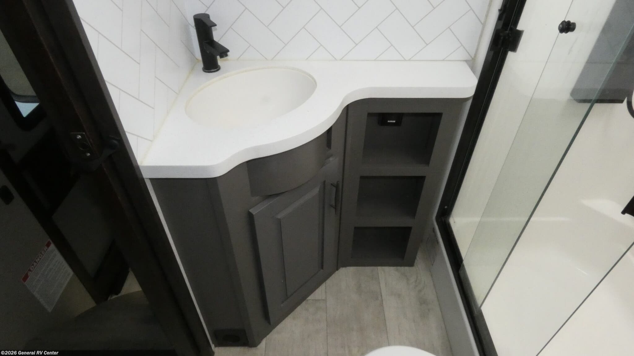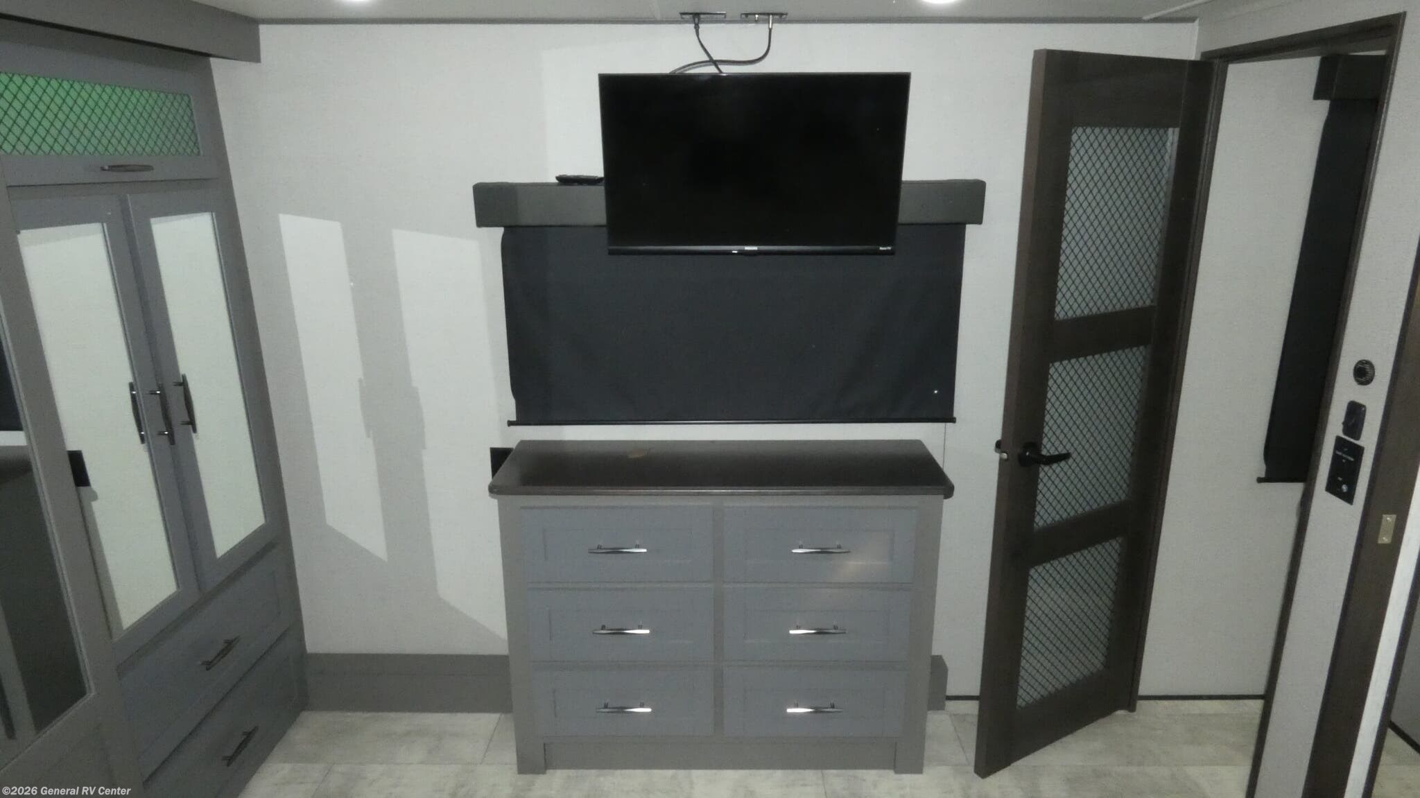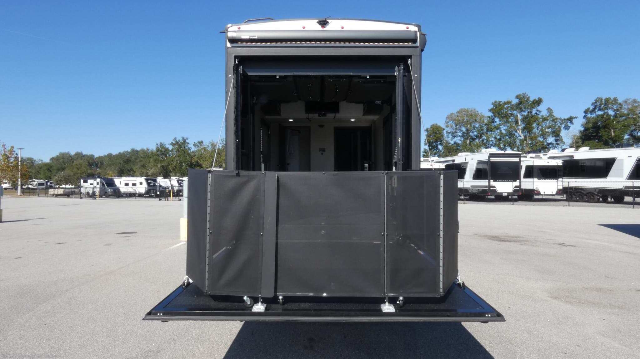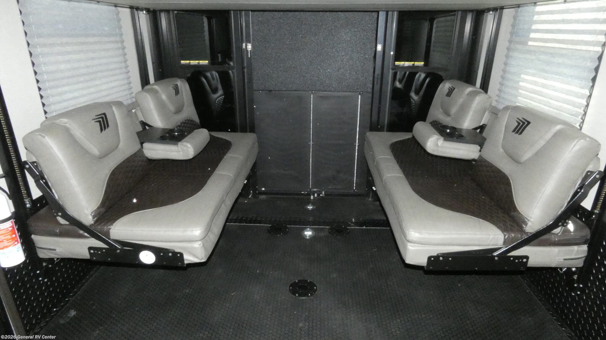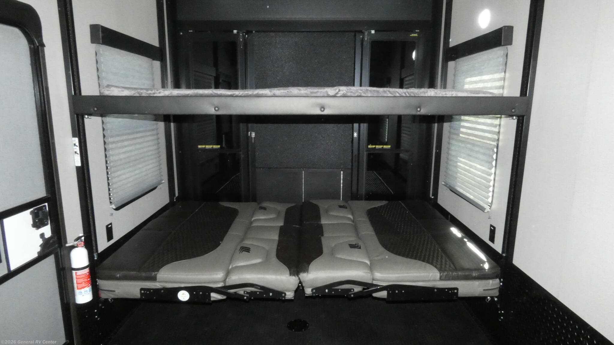 Step into the world of luxury and adventure with the 2023 Grand Design Momentum 397TH. This remarkable fifth wheel toy hauler is designed to elevate your travel experience with its spacious layout and top-tier amenities. With a length of over 44 feet, it offers ample room for both relaxation and excitement. The 12'6" garage is perfect for bringing along your favorite outdoor toys, while the ramp door doubles as a patio, allowing you to enjoy the great outdoors with ease. Inside, the Momentum 397TH boasts a sophisticated interior with a center kitchen featuring modern appliances, including a full-size refrigerator and a four-burner cooktop. The living area is a haven of comfort, with theater seating and a cozy fireplace, making it perfect for unwinding after a day of adventure. The sleeping arrangements are equally impressive, accommodating up to nine people with a king bed option in the front bedroom, a queen bed, and convertible sleeping spaces. With three powered retractable awnings and a washer/dryer, this RV ensures convenience and luxury wherever the road takes you. For more details, visit your nearest General RV dealership.