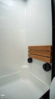 The kitchen island offers barstools. Front full bathroom with dual entry, a sunken tub/shower with flip-up teak seat, and a King Bed in the front bedroom. Washer and Dryer hookups and a central vacuum system.