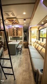 Check out this exceptional and in nearly perfect condition Toy Hauler Fifth Wheel 2023 Momentum 397TH for sale. ONE OWNER!