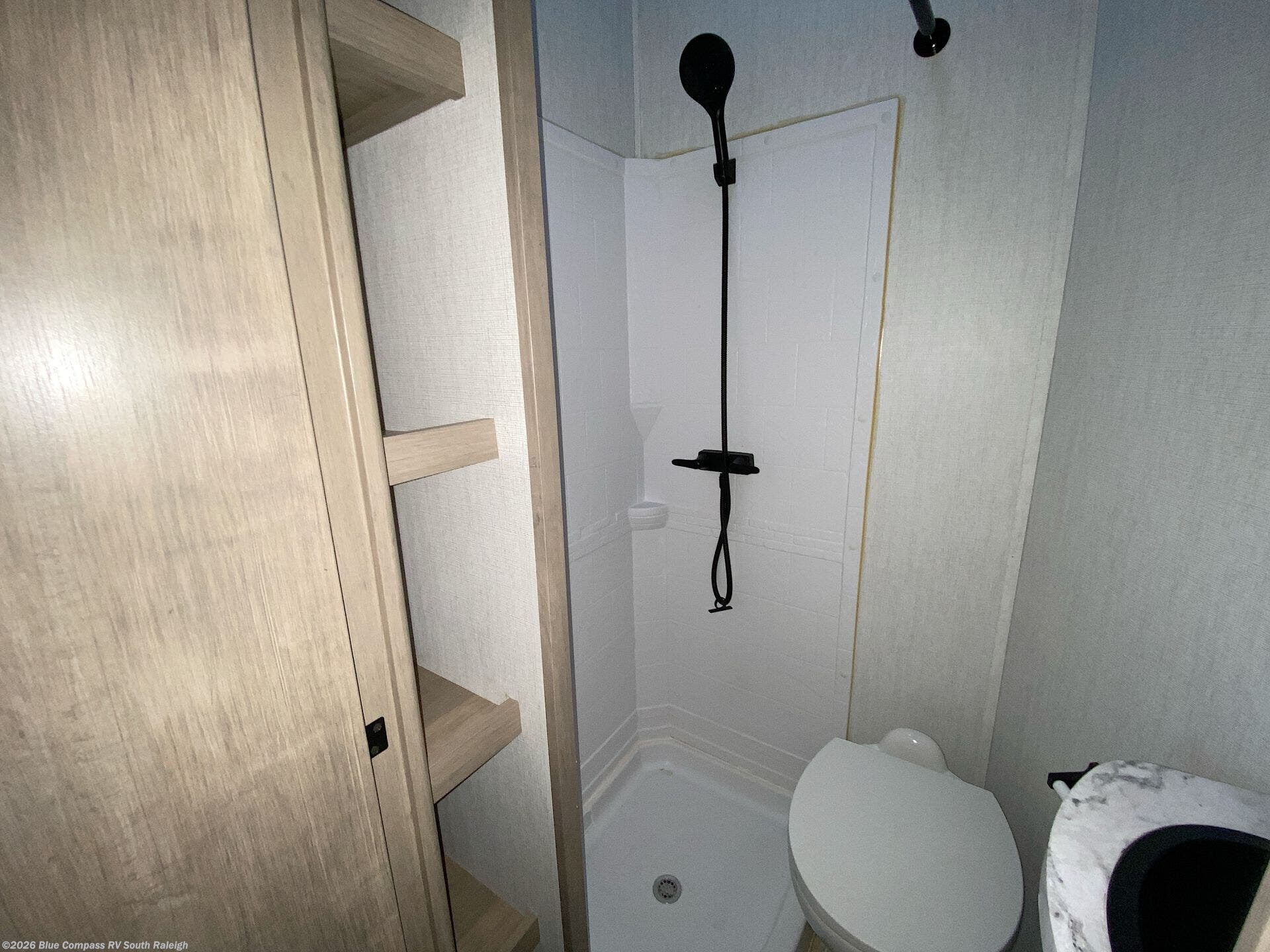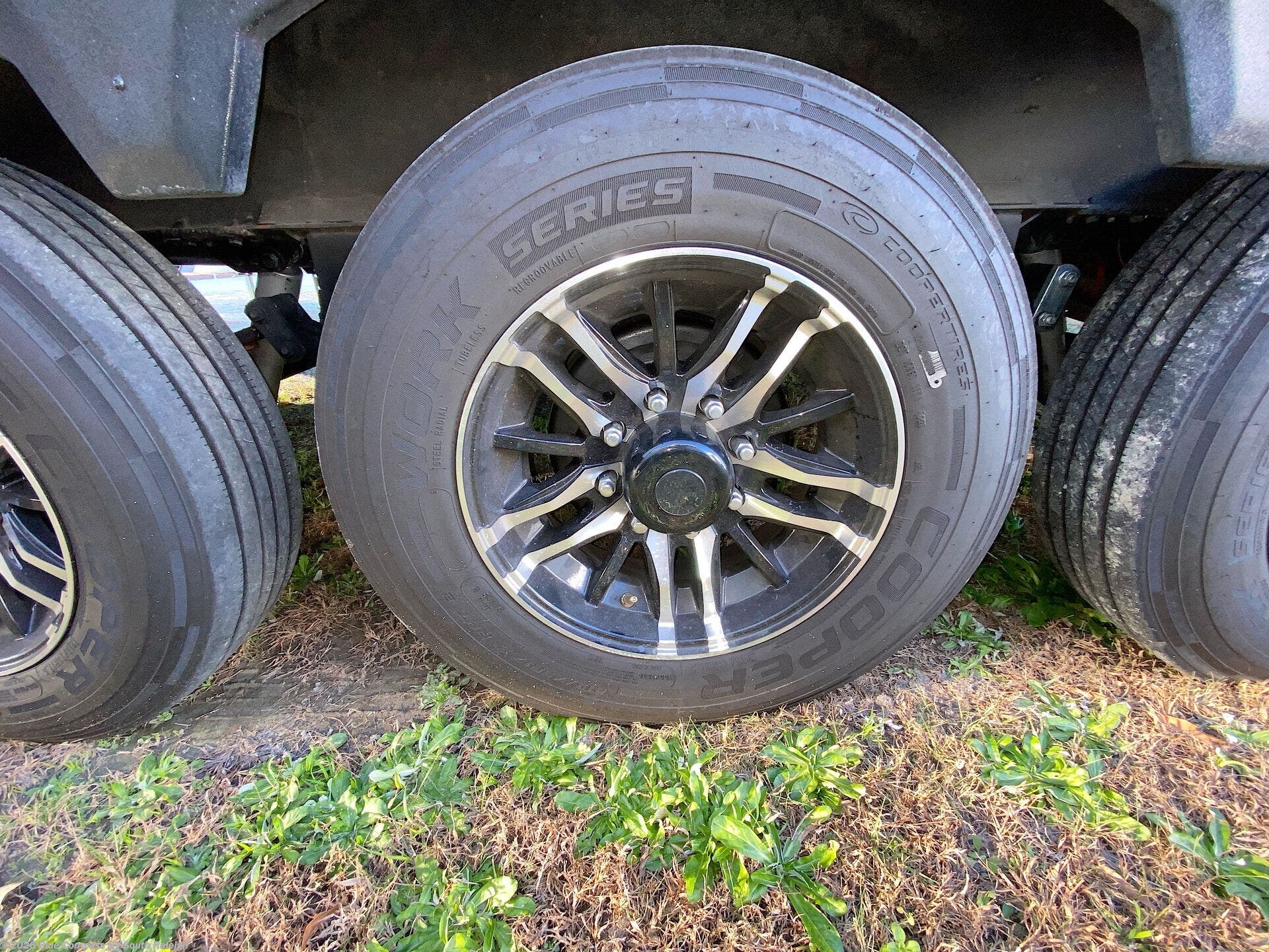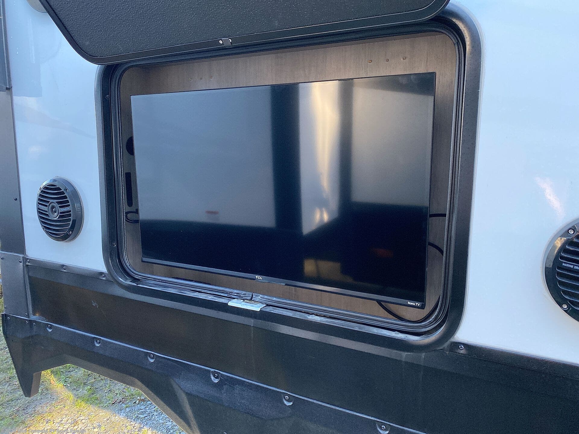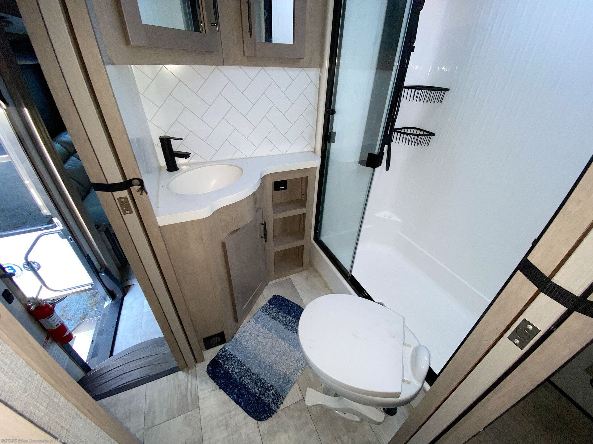 Load up your toys, your clothes and food and start your adventure as you smoothing tow this fifth wheel to your campsite. You will enjoy the Fast Ramp rear ramp door, the Ram-Air garage vents on both sides, and the 2,500 lb. rated flush-mount tie-downs to keep your toys secure. You will surely appreciate the full bathroom and LED TV, plus the option to add Happi-Jac rollover sofas/table with a top bed. The main area provides a living and kitchen area with a 49" LED TV and a fireplace, theatre seating and a free standing table, plus full kitchen amenities. The kitchen island even offers bar stools. Head up front to use the full bathroom with dual entry, the sunken tub/shower with flip-up teak seat, and fall quickly to sleep on your own queen bed or choose a king option in the front bedroom.