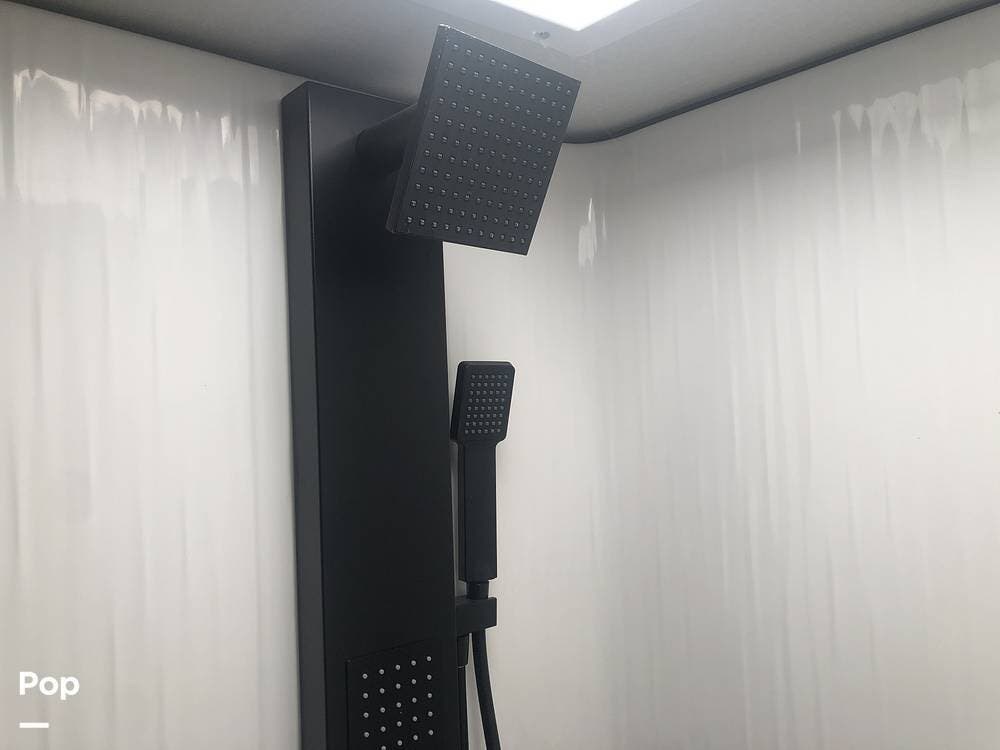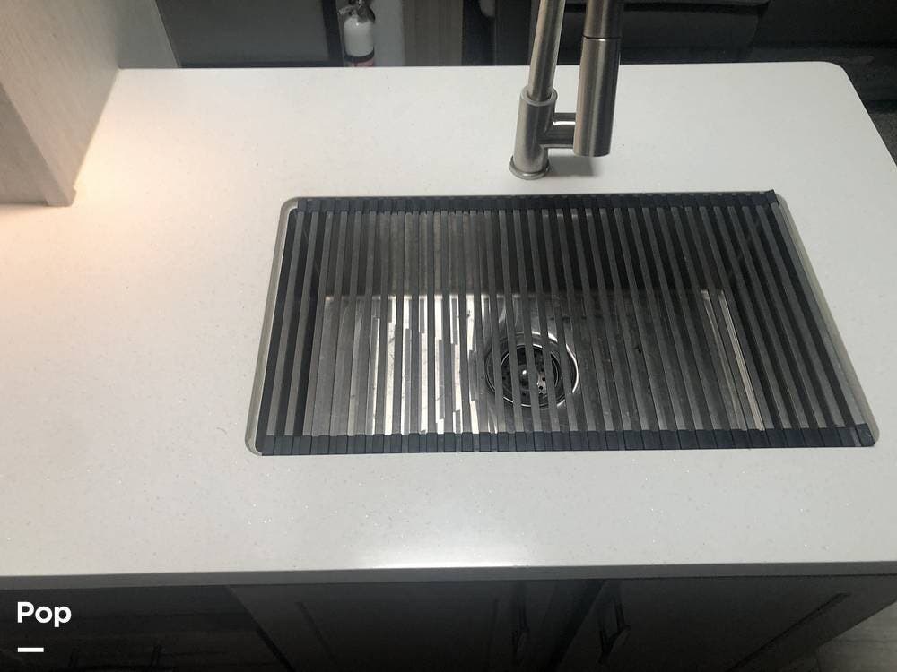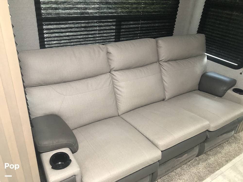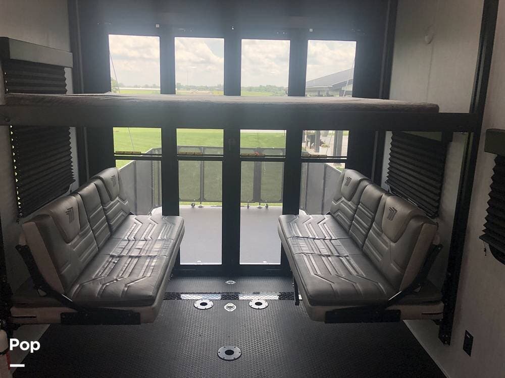 Step inside and you'll find a sleek, modern interior featuring high-end finishes, a fully equipped kitchen, a spacious living area with reclining theater seating, and a private master suite.