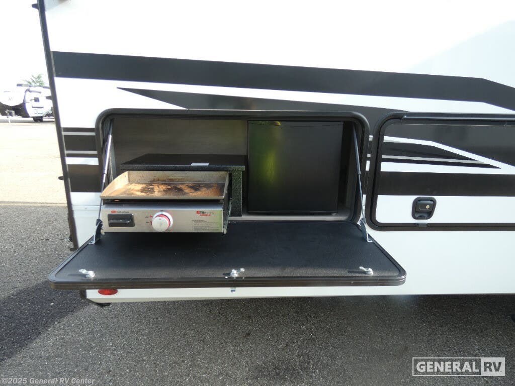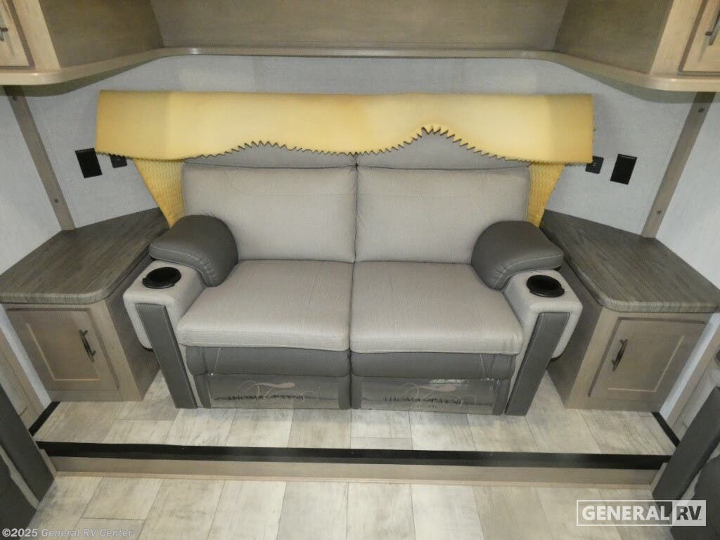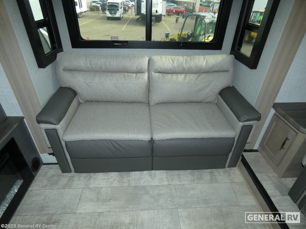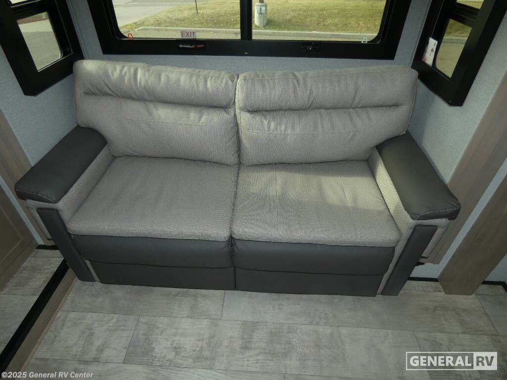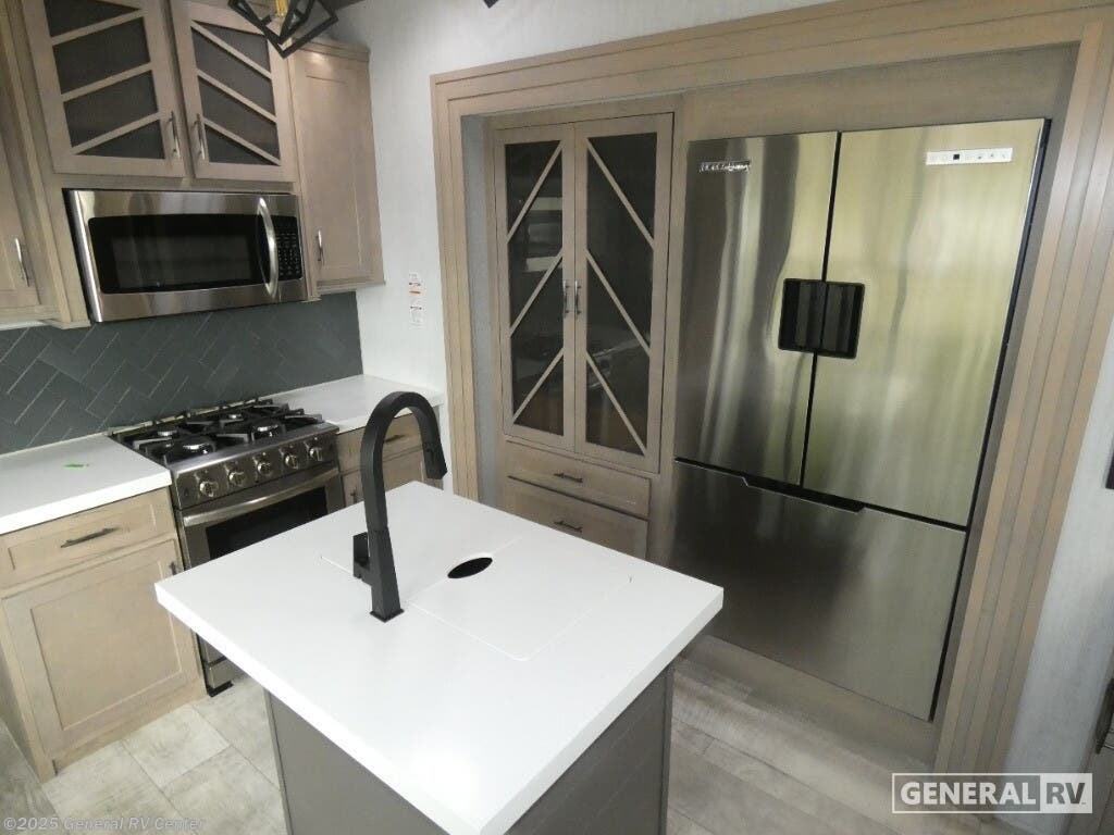 The 2023 Grand Design Momentum M-Class 336M is the epitome of luxury and functionality, designed for those who crave adventure without sacrificing comfort. Stretching nearly 40 feet in length, this RV is a marvel of modern engineering, featuring five spacious slides that create an expansive living space. The front living area is a cozy retreat, boasting two tri-fold sofas and a telescoping TV with a fireplace, perfect for relaxing after a day of exploration. The center kitchen is equipped with an 18-cubic-foot refrigerator and a three-burner cooktop, making meal prep a breeze. The inclusion of a butler pantry adds a touch of elegance and practicality, ensuring you have ample storage for all your culinary needs. As you move towards the rear, you'll find a versatile bedroom space with a bed, offering a restful sanctuary. The innovative below-floor garage provides additional storage, ideal for your outdoor gear. A robust water system, including a 110-gallon fresh water tank, ensures you can stay off-grid longer. With its impressive cargo capacity and luxurious amenities, the Momentum 336M is your ticket to endless adventures. For more details, visit your nearest General RV dealership.