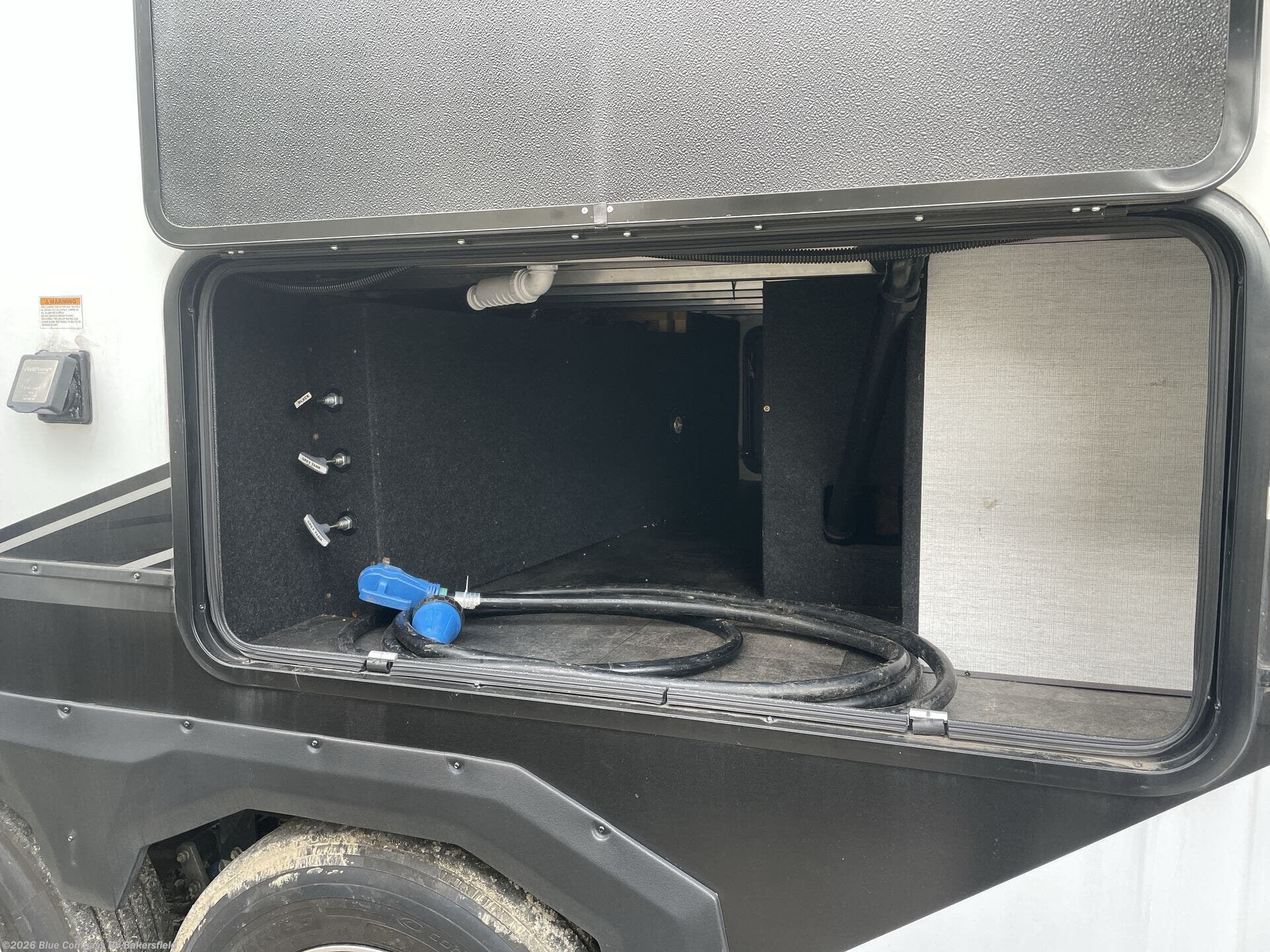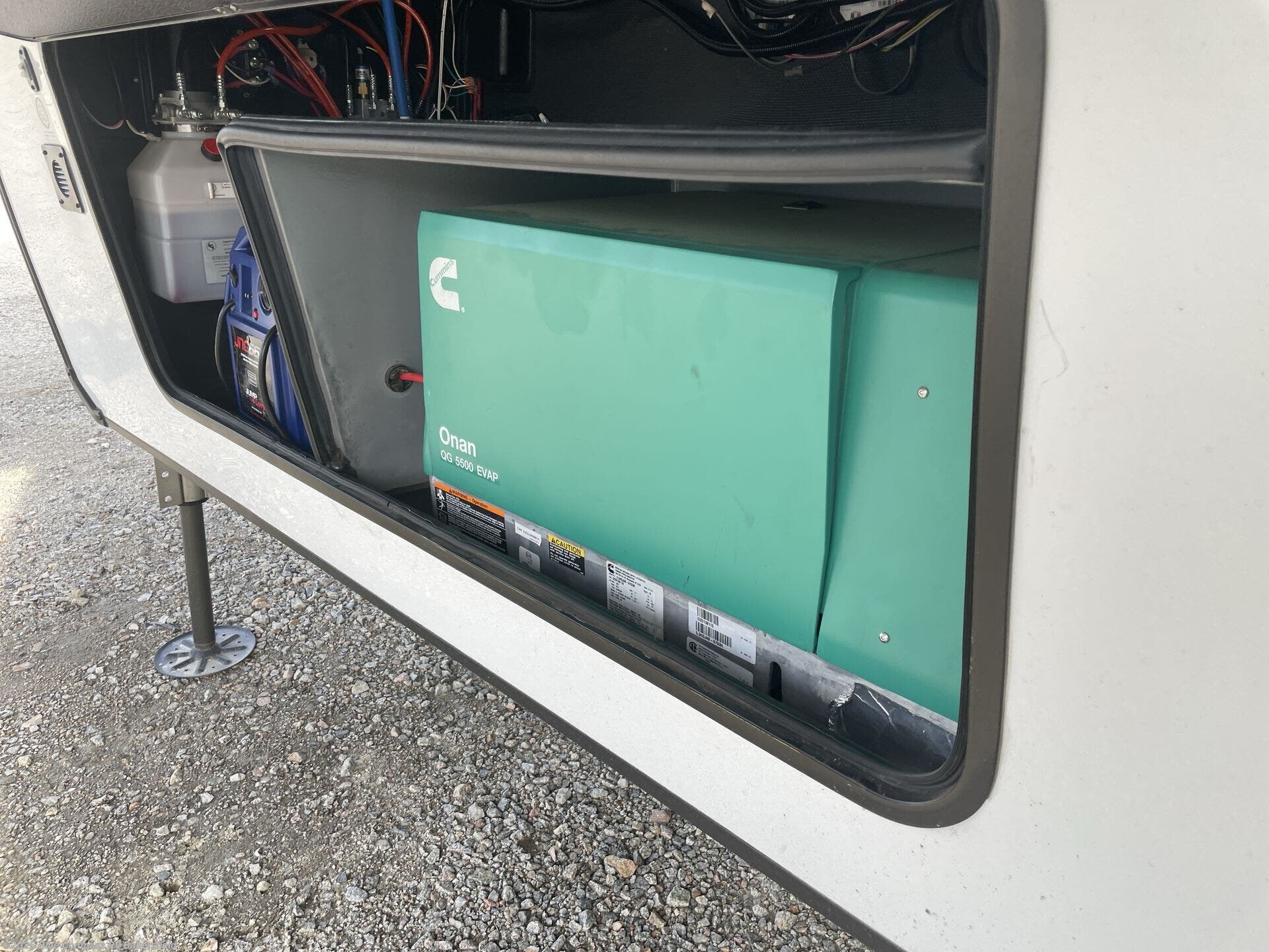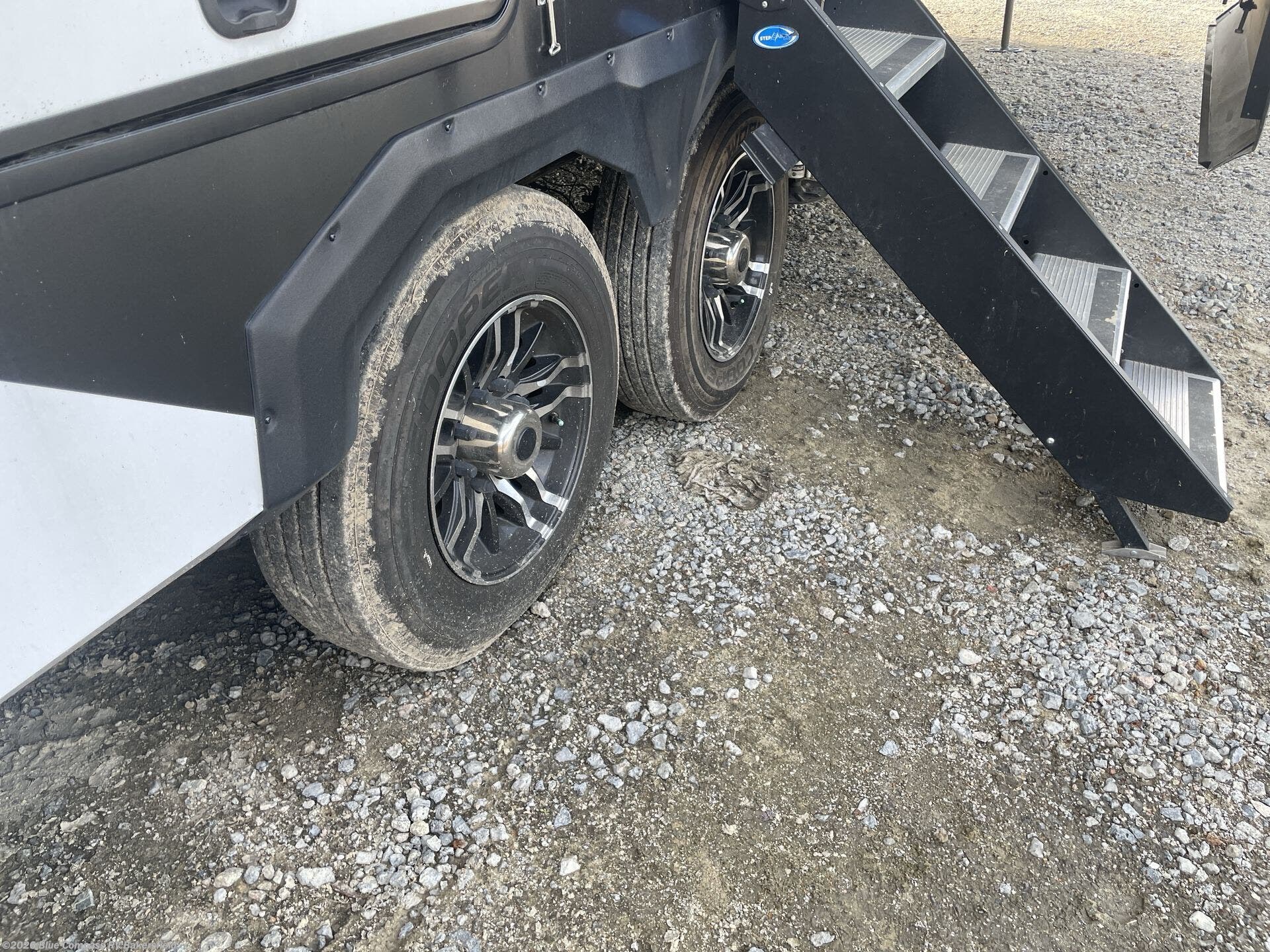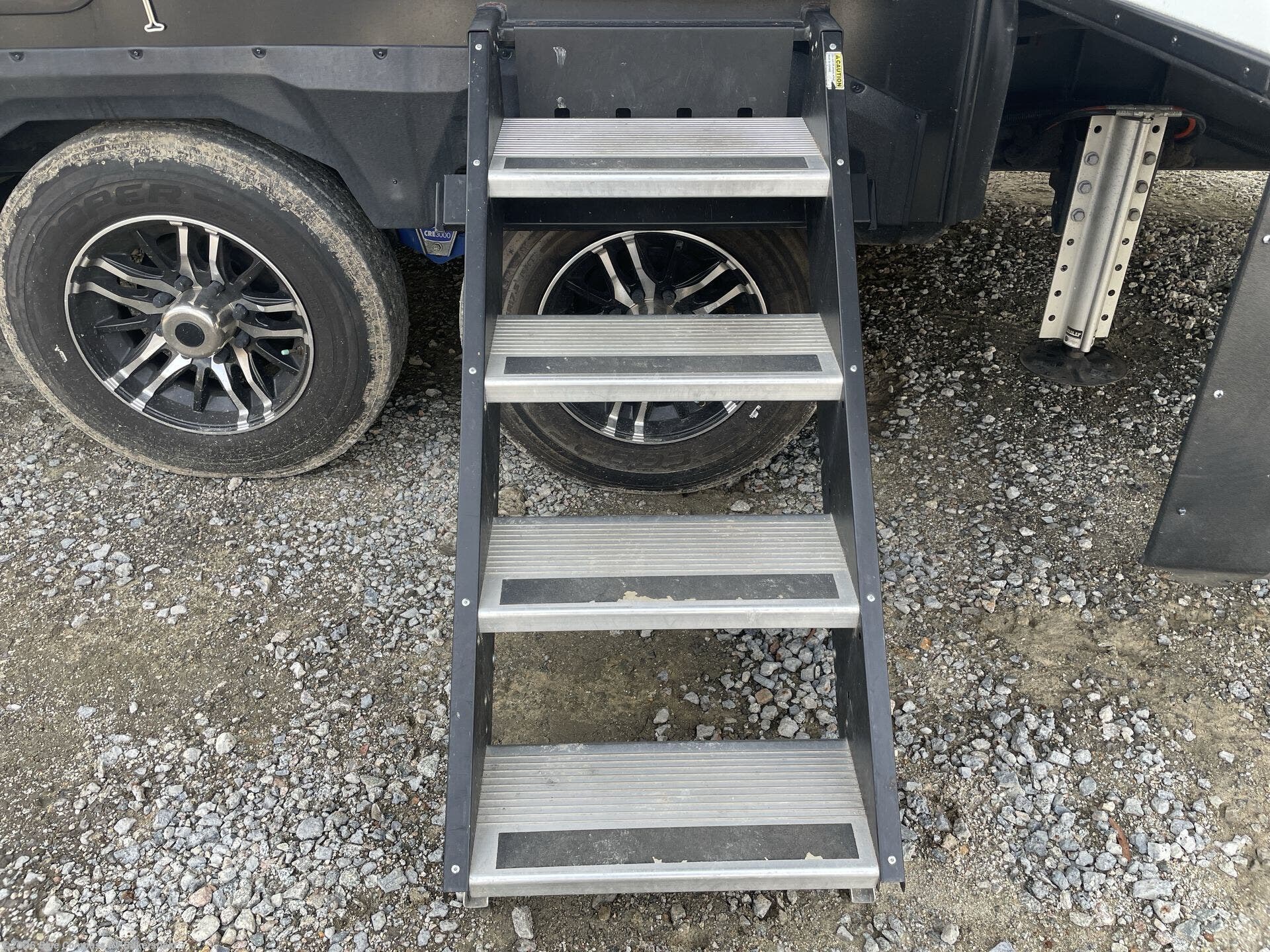 This toy hauler has all the space you need to enjoy a weekend with friends, or a week long family vacation. The fuel station will certainly keep the toys going, and the inside amenities including a full featured kitchen with butler pantry, 18 cu. ft. refrigerator, cooktop and oven, plus microwave and island with bar stools will make mealtime easy. You can easily whip up family favorites to enjoy outside or inside gathered at the free standing dining table with four chairs, and have snacks in the front living area with two 70" tri-fold sofas, plus theater seating or optional lounge chairs instead. The rear master suite is a couple of steps up and features a queen bed or optional king, a slide out wardrobe with drawers beneath, plus easy entry into the full bath with skylight over the shower, and a seat for relaxing after a long day of trail riding. There is a bed lift system that raises the bed to provide up to 77" of headroom space in the garage area below where you can easily load up your favorite ride on toys using the rear ramp door.