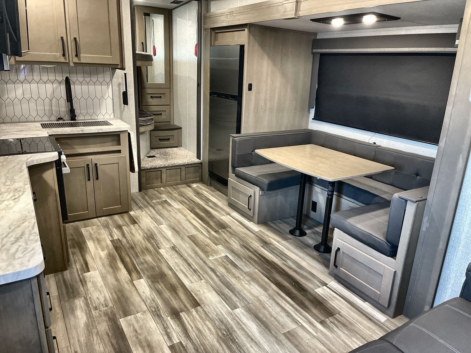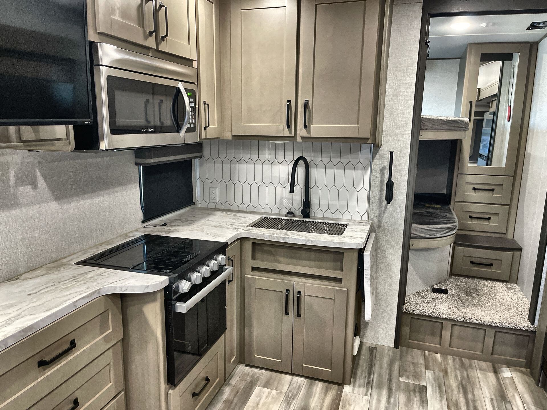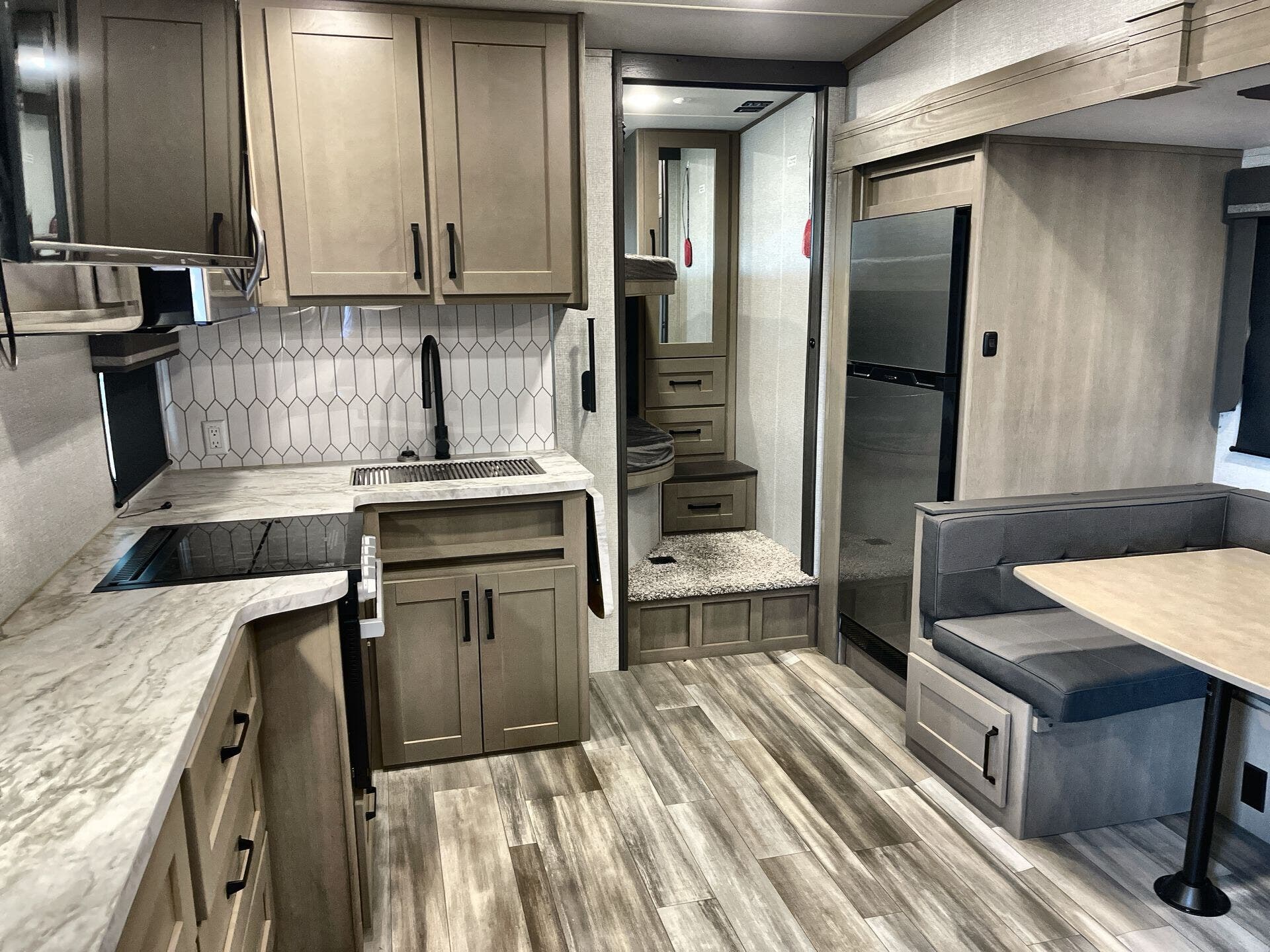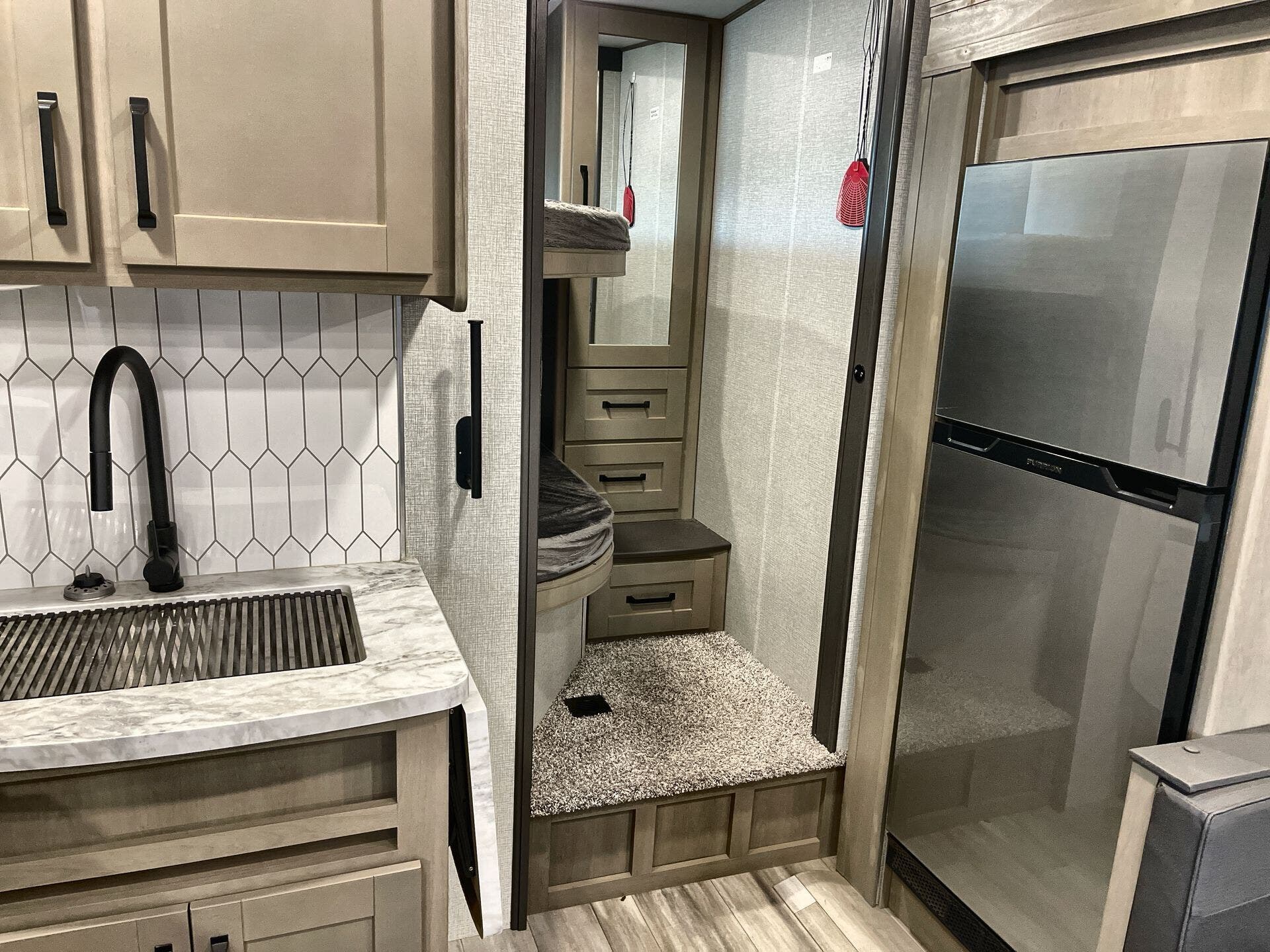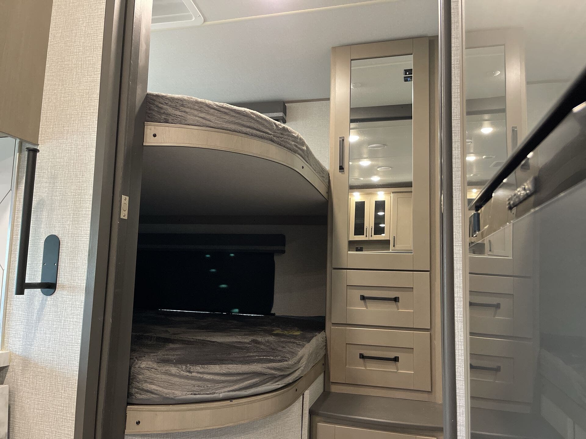 The Grand Design Reflection 2023 fifth wheel combines dependable construction, thoughtful bunkhouse practicality, and a user-friendly mid-kitchen layout that keeps everything you need within reach. It is designed to maximize interior living space with a single slide and ample cargo storage, making it ideal for families who crave comfort without sacrificing towability. Whether you’re planning cross-country trips, weekend getaways, or extended stays, this bunkhouse RV offers a balanced blend of luxury and versatility—a true home-away-from-home on wheels for the discerning recreational vehicle enthusiast. Stock number P15255.